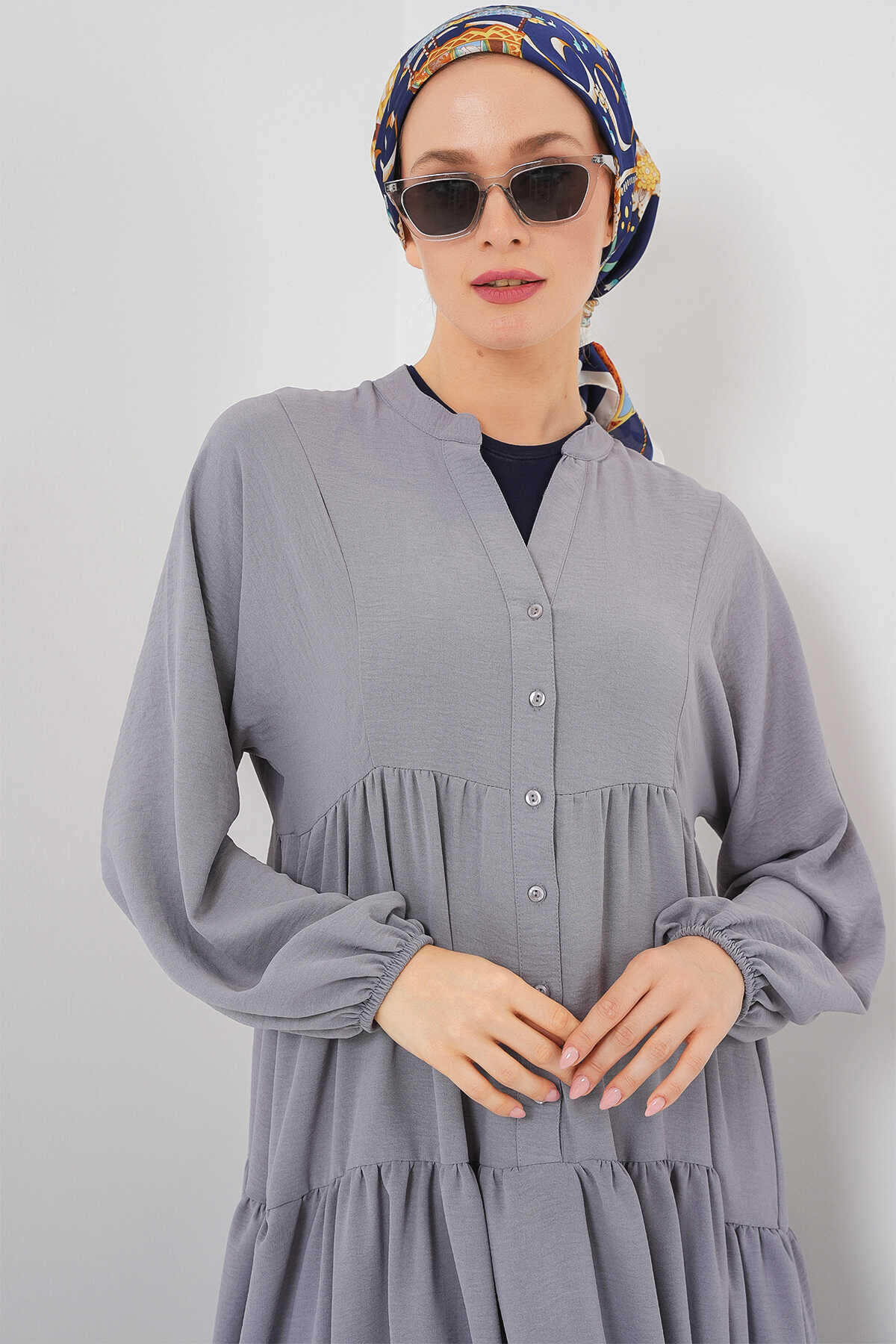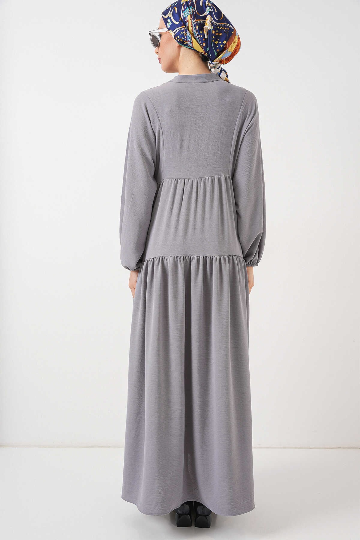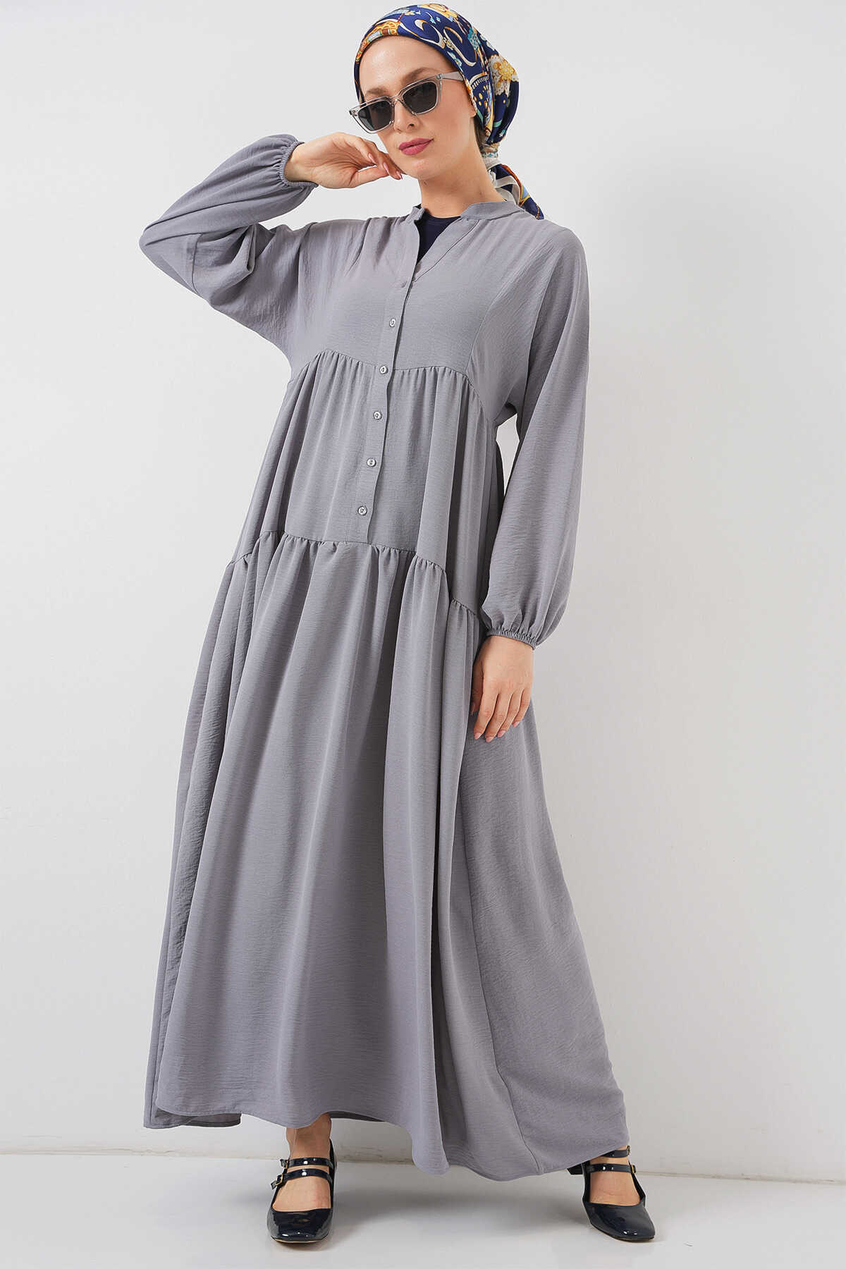 2527 Kadın Uzun Tesettür Elbise - Gri
