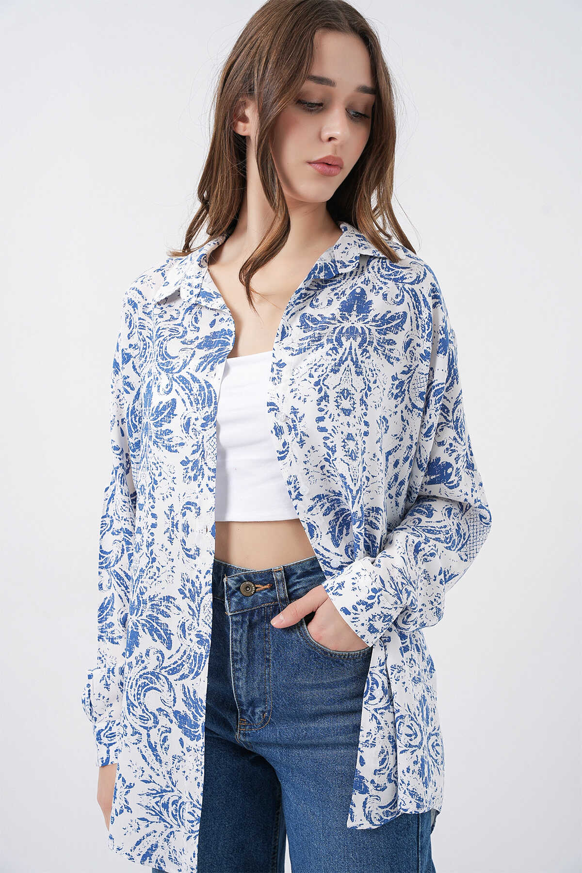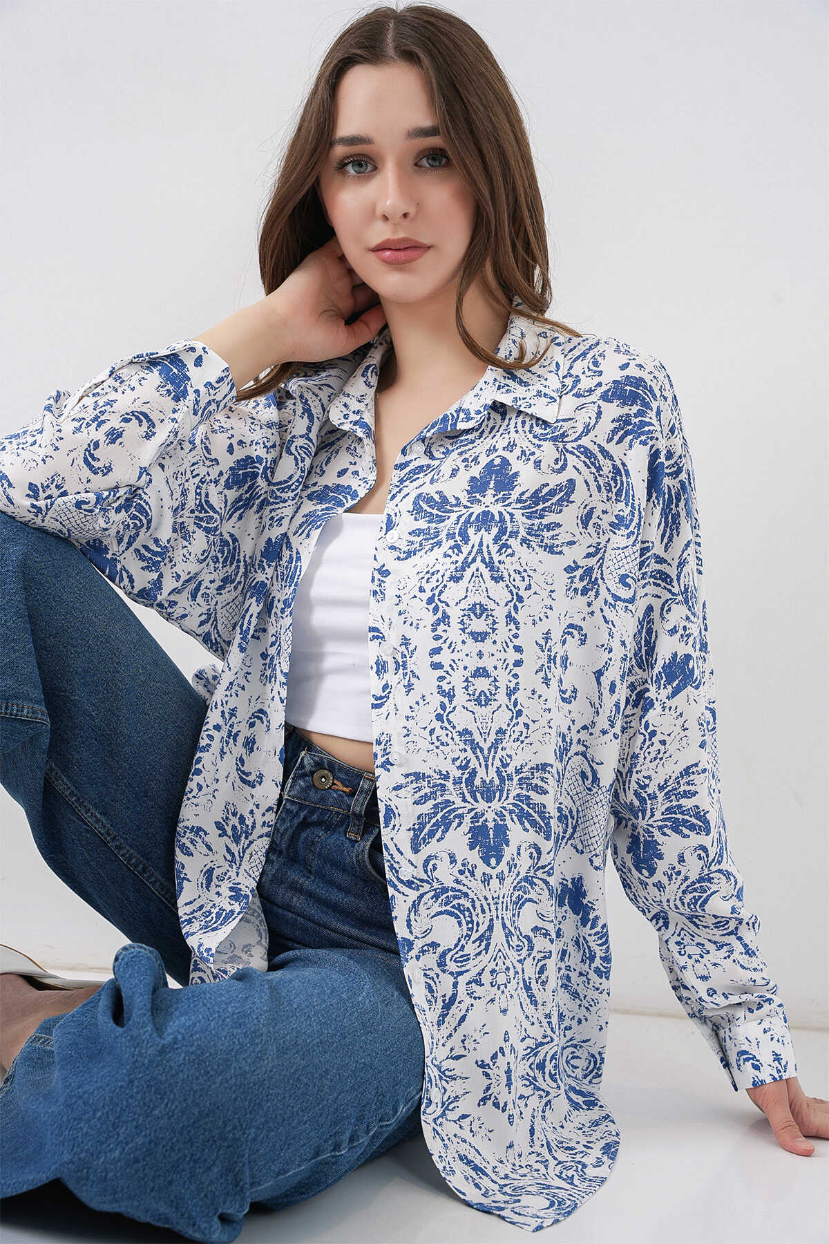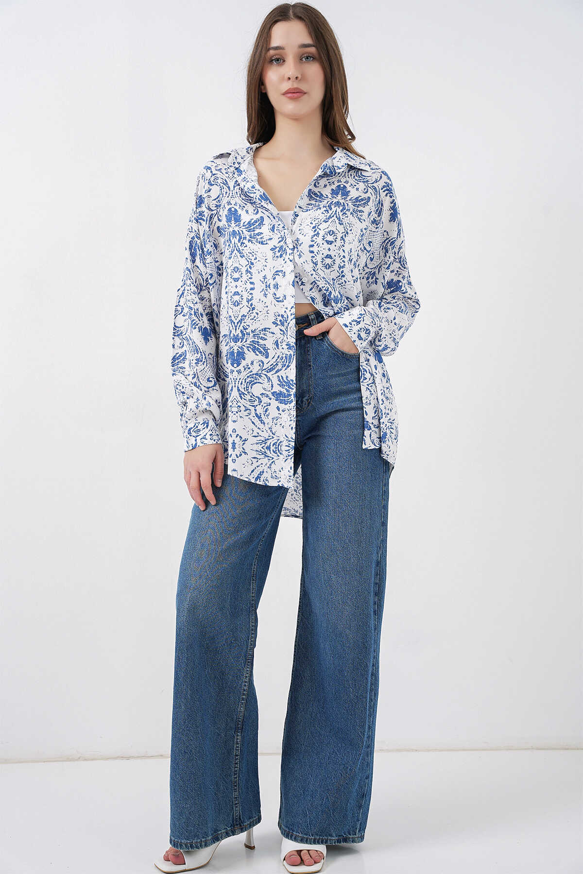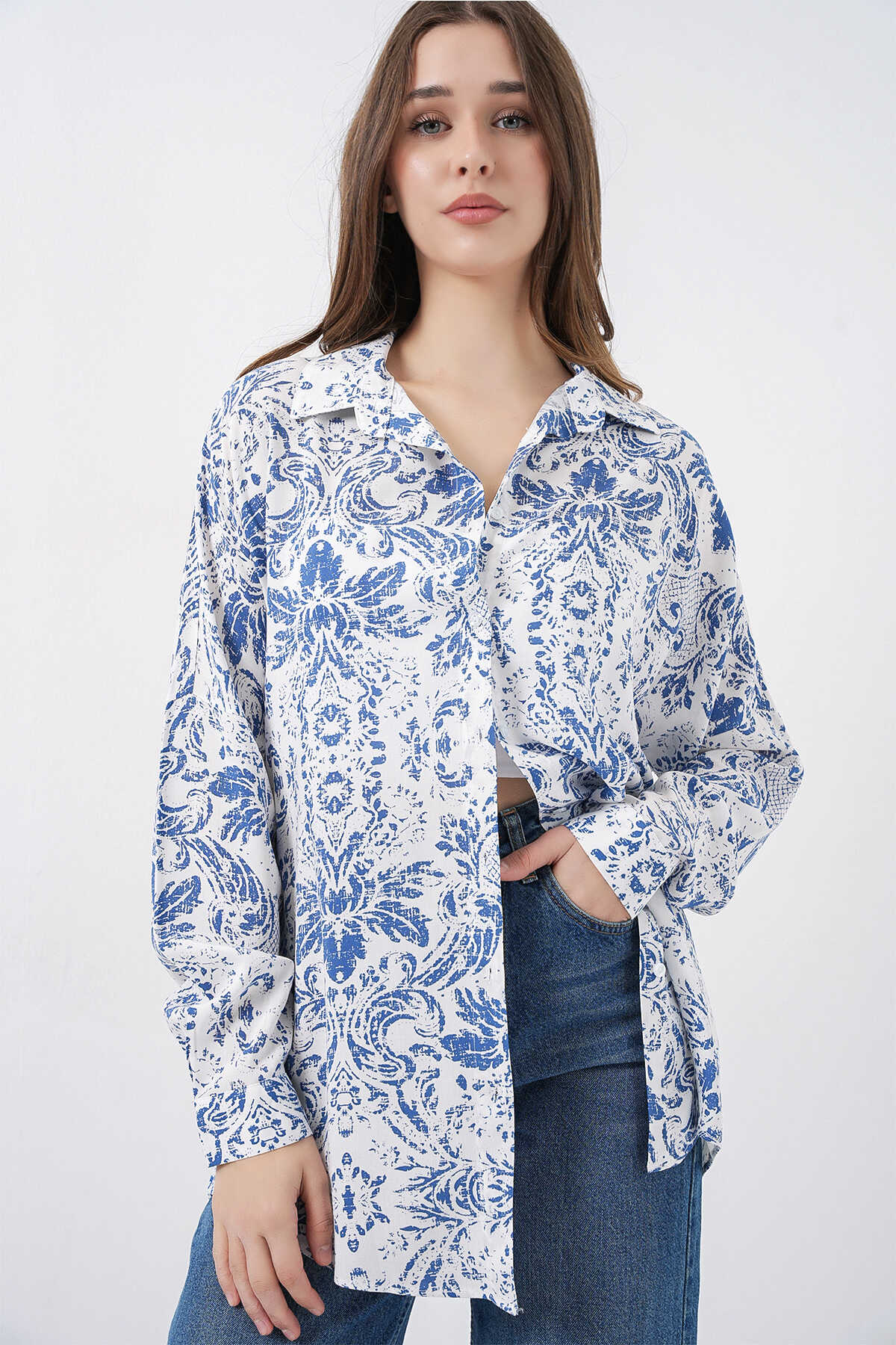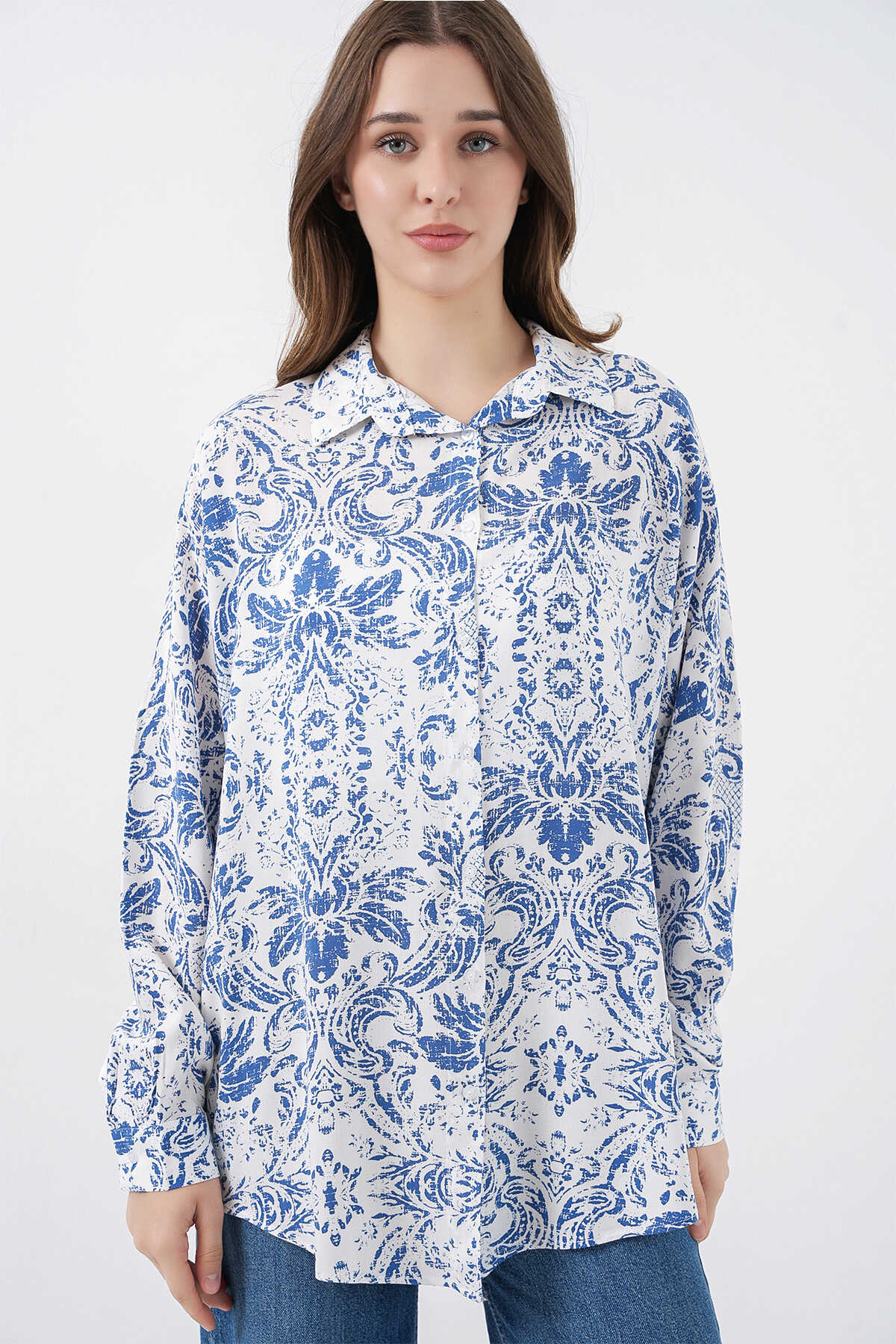 Kadin Grafik Desenli Gömlek 3721