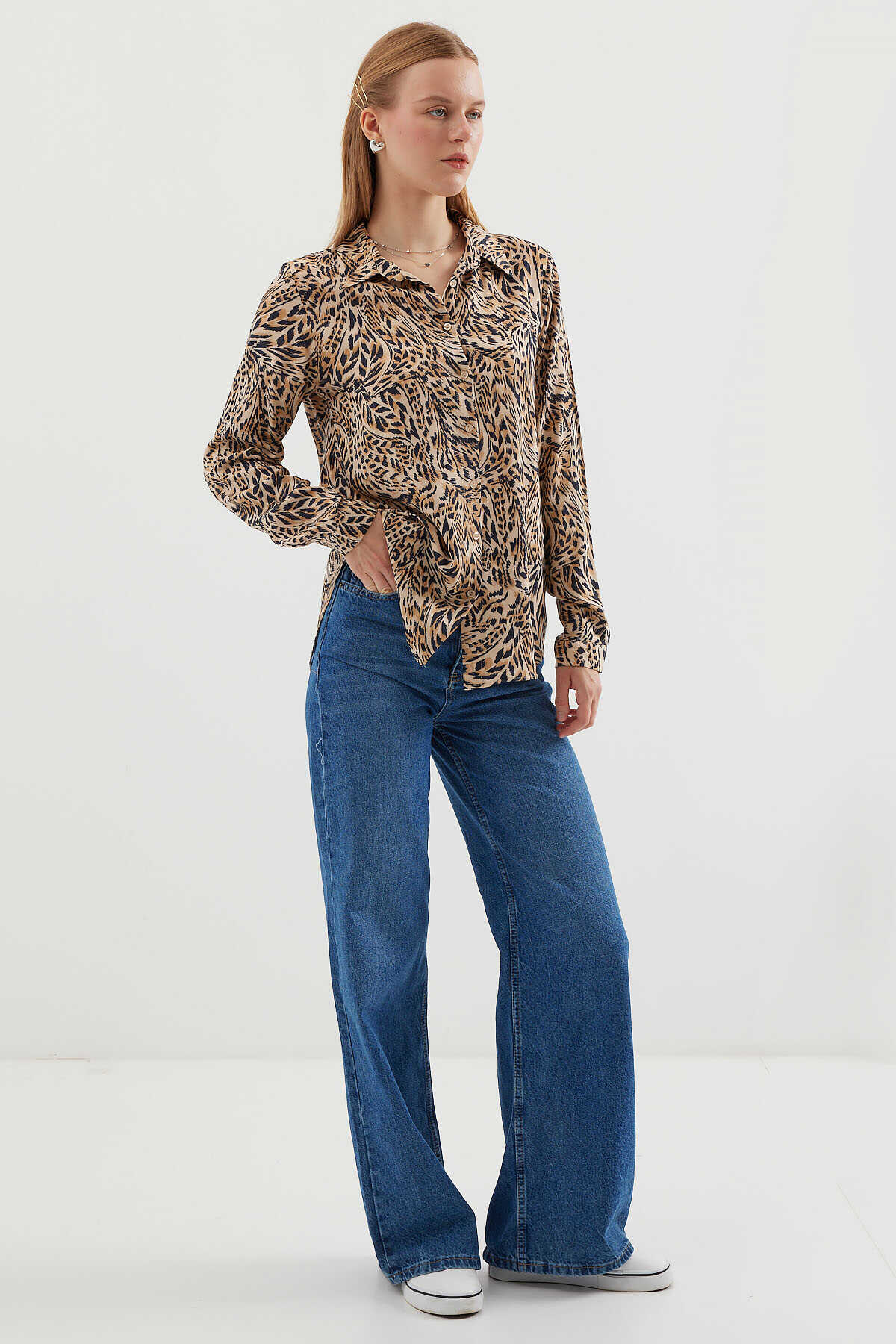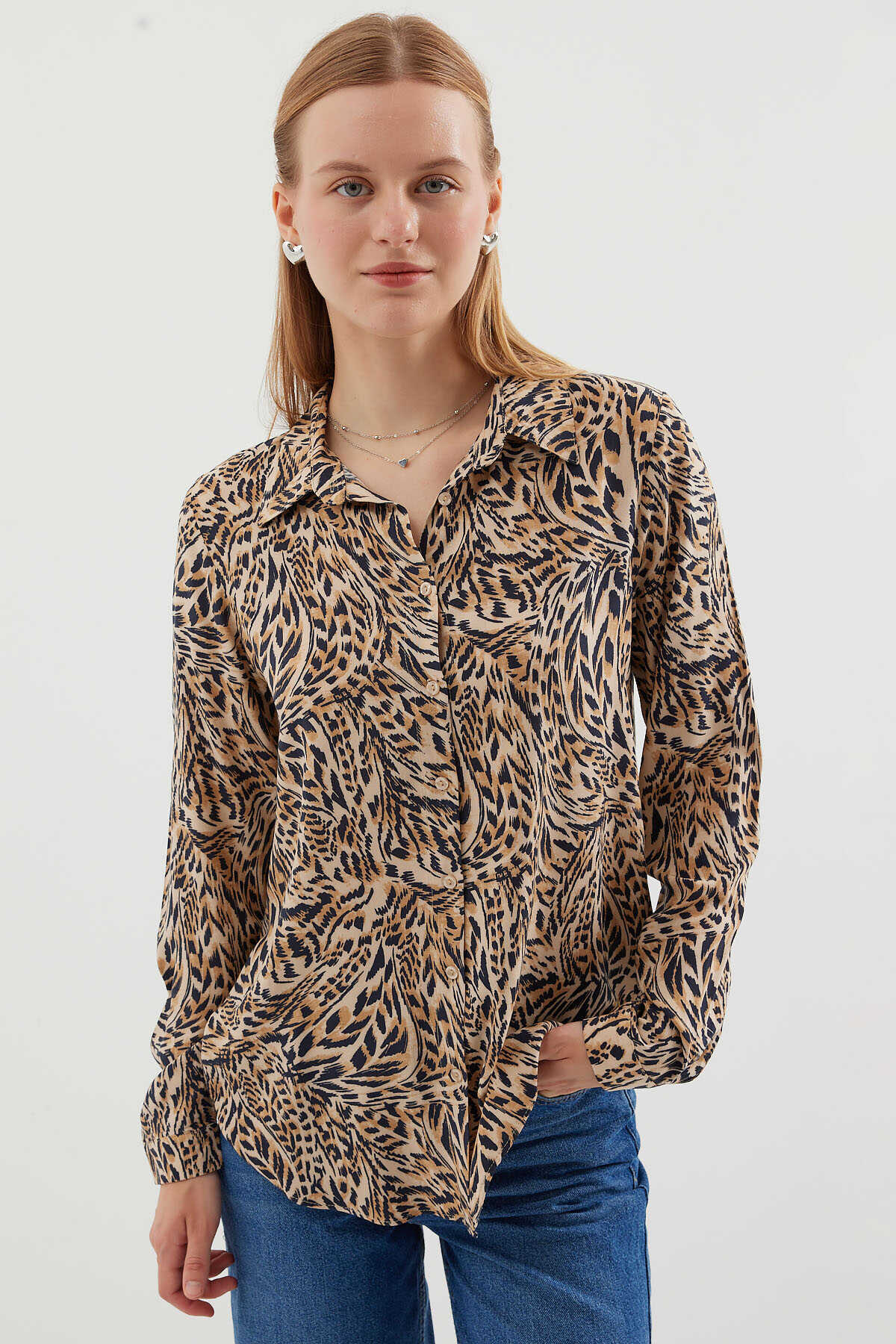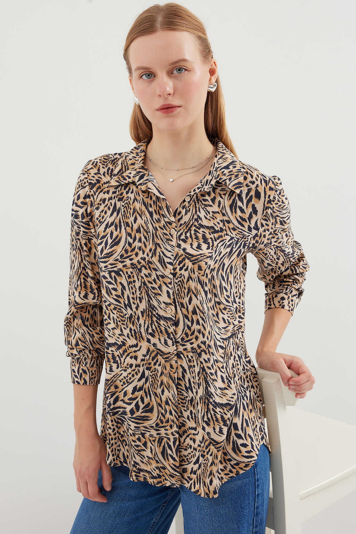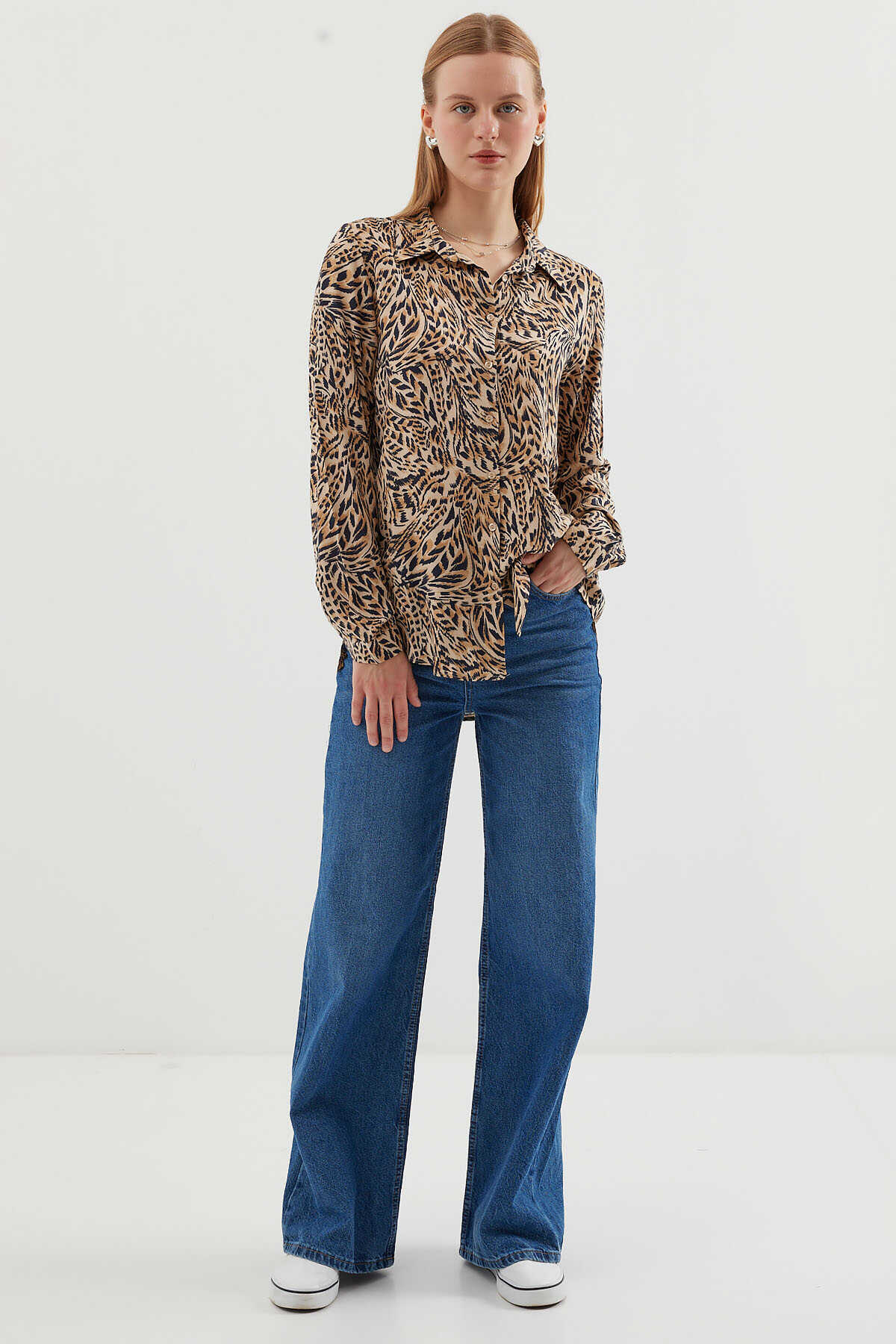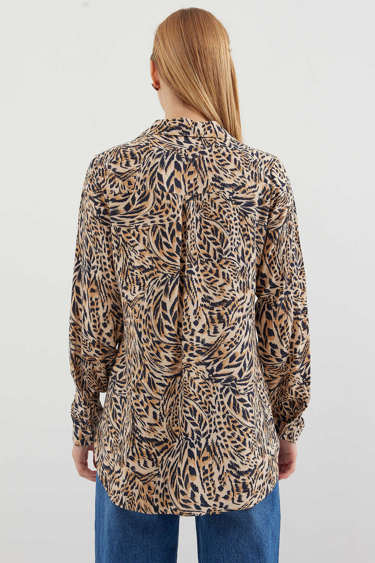 3721 Grafik Desenli Gömlek - C. Bej - Kombin