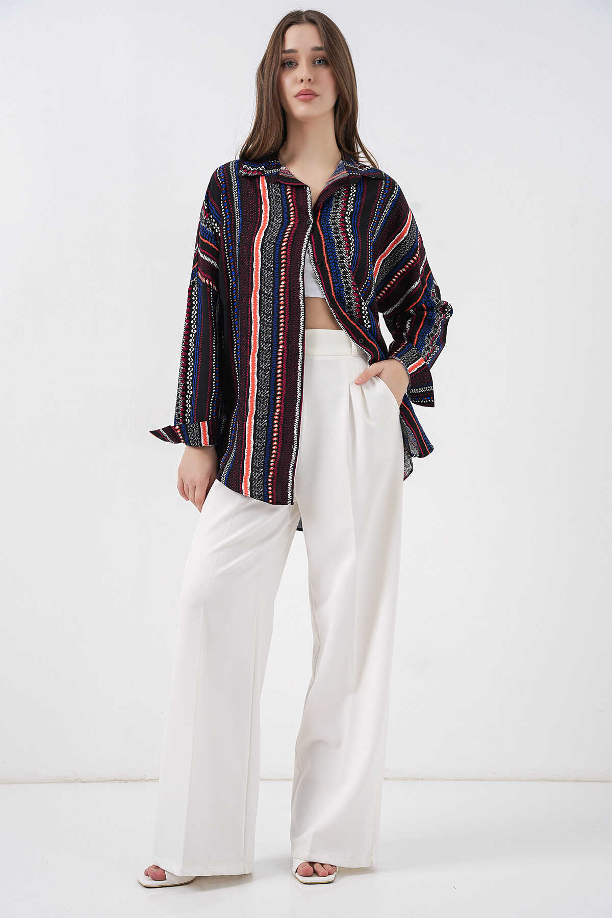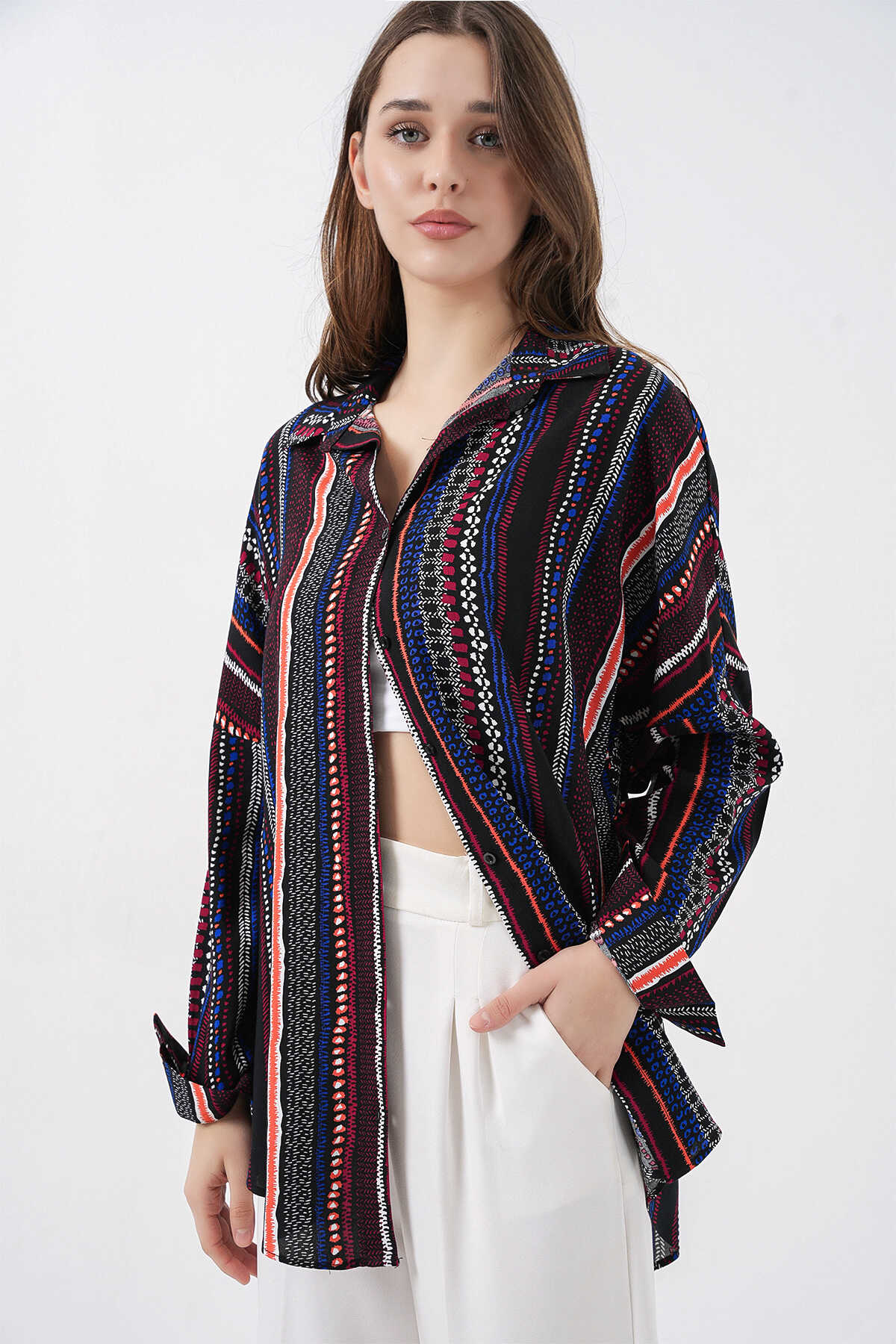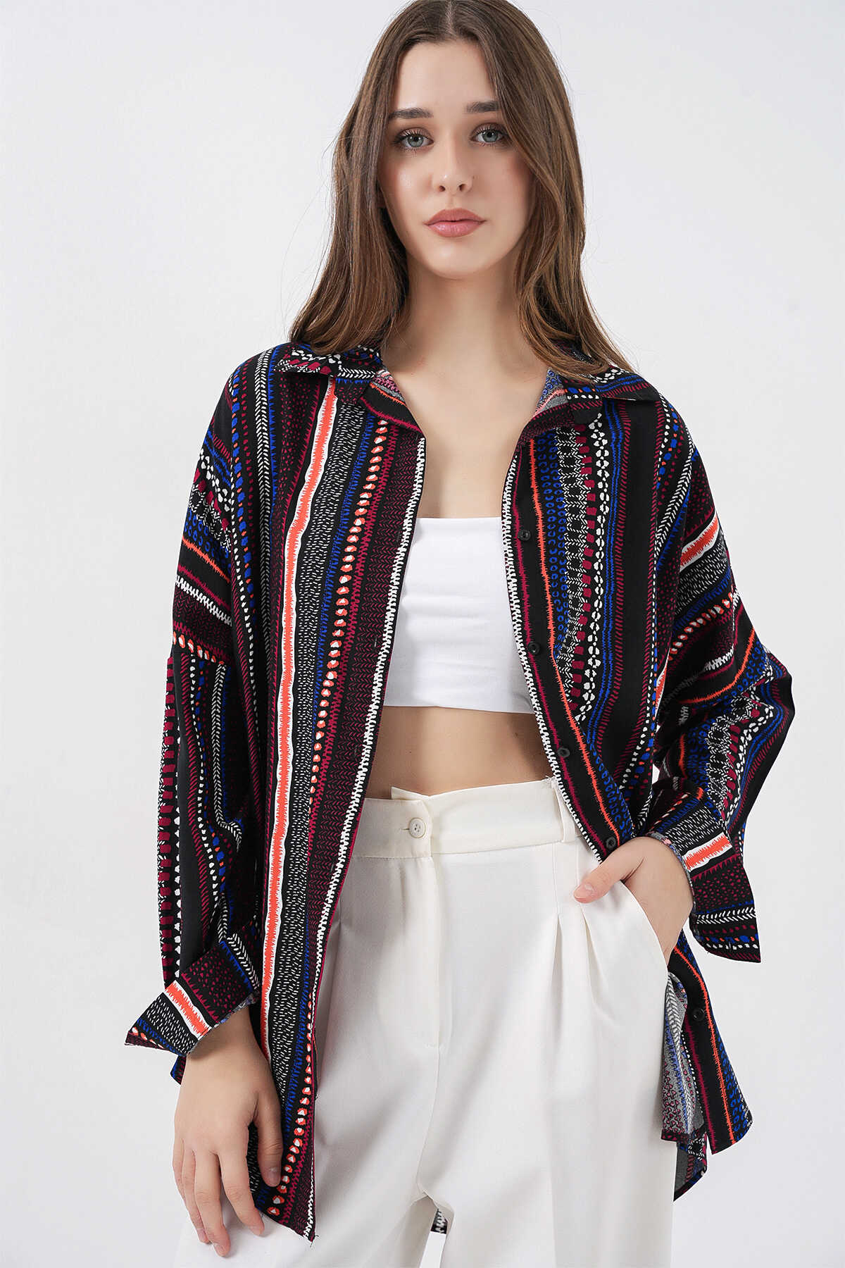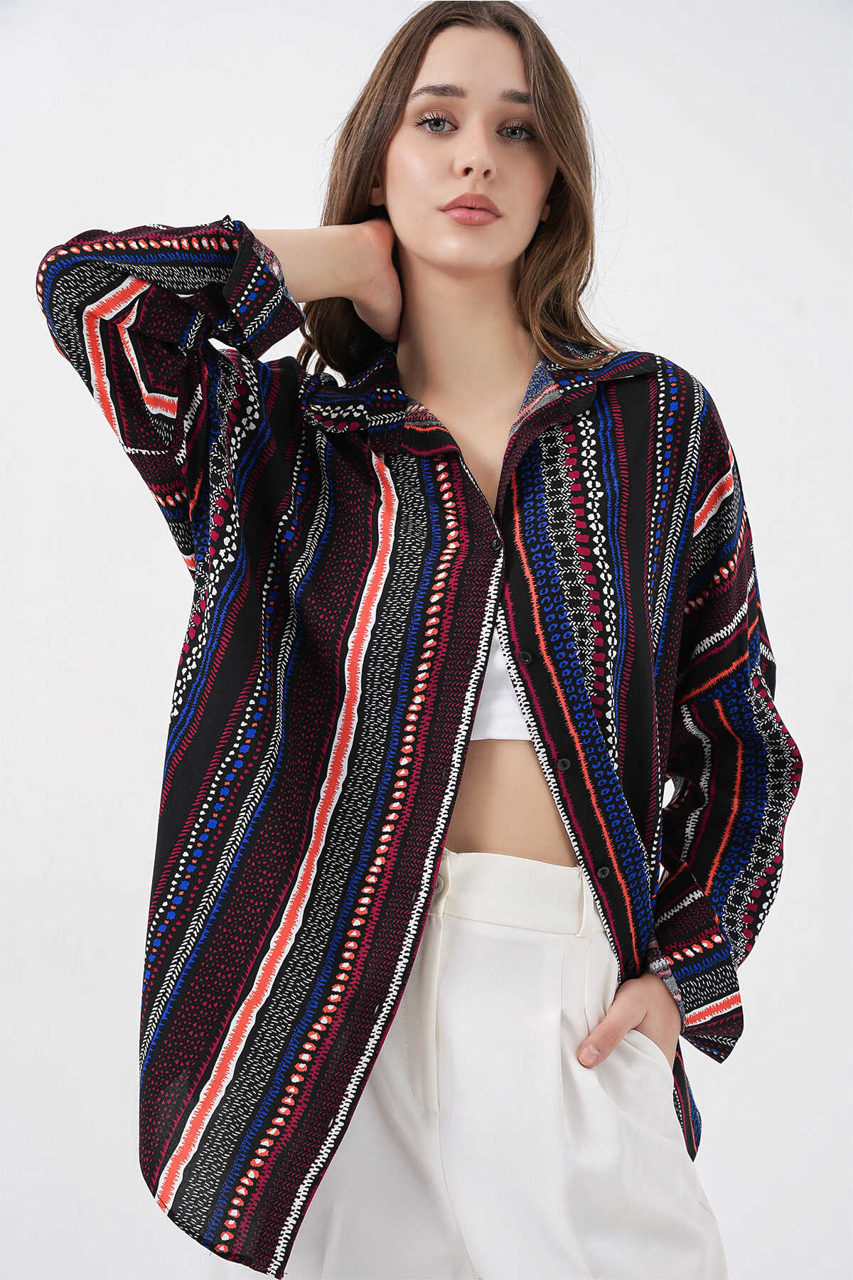 Kadin Grafik Desenli Gömlek 3721