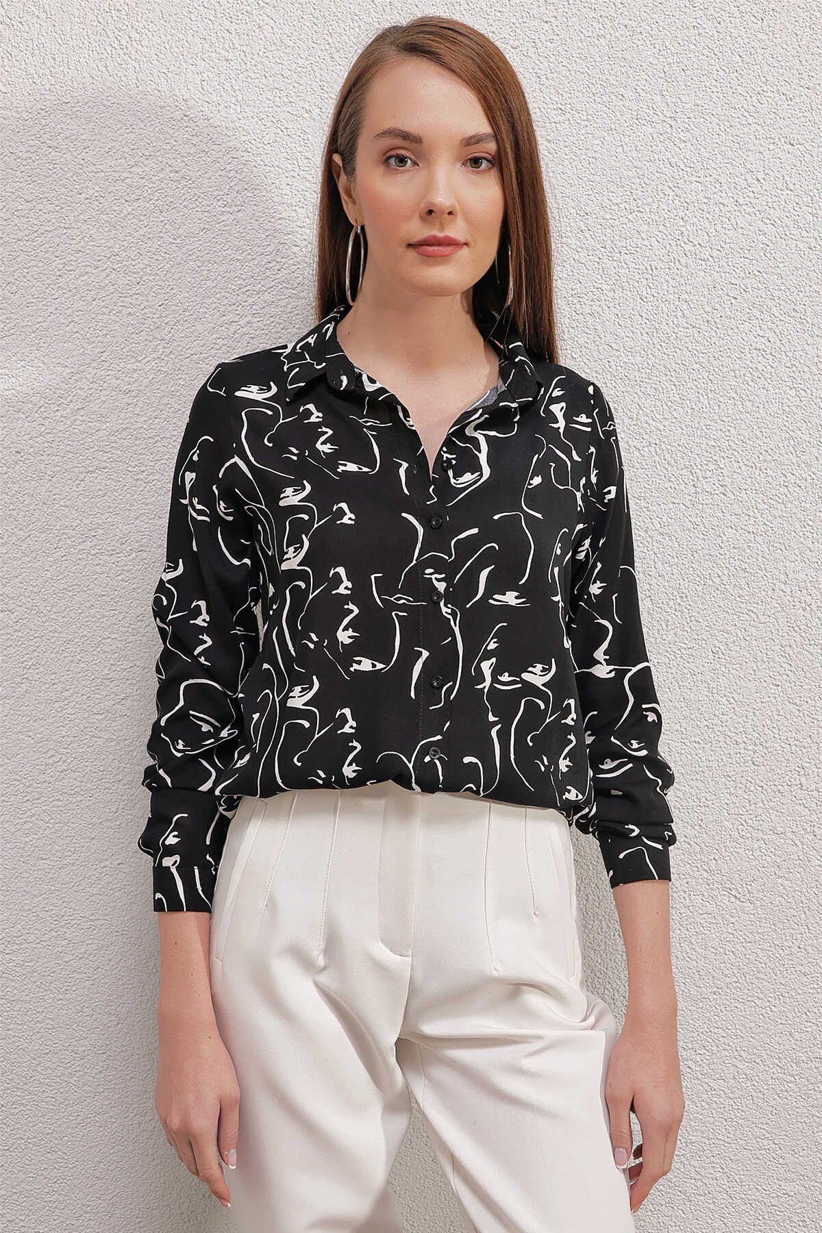 3721 Grafik Desenli Gömlek - E.Siyah - Kombin