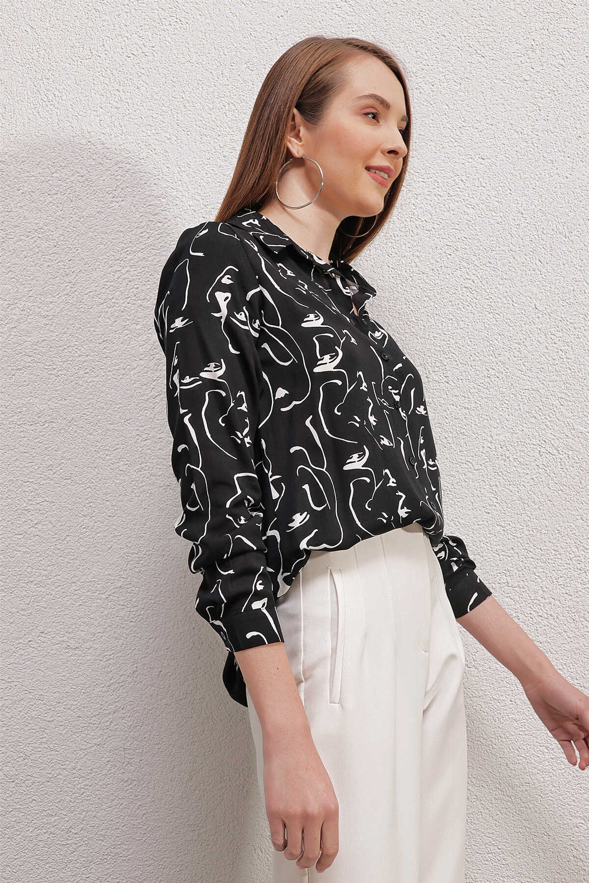 Kadin Grafik Desenli Gömlek 3721