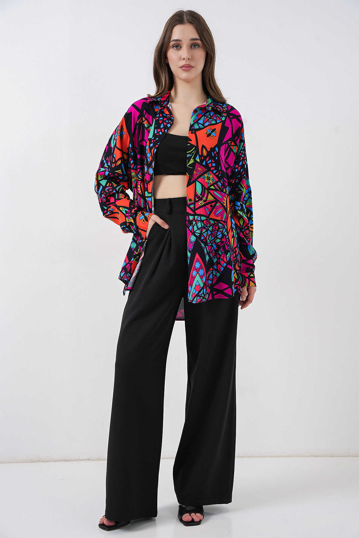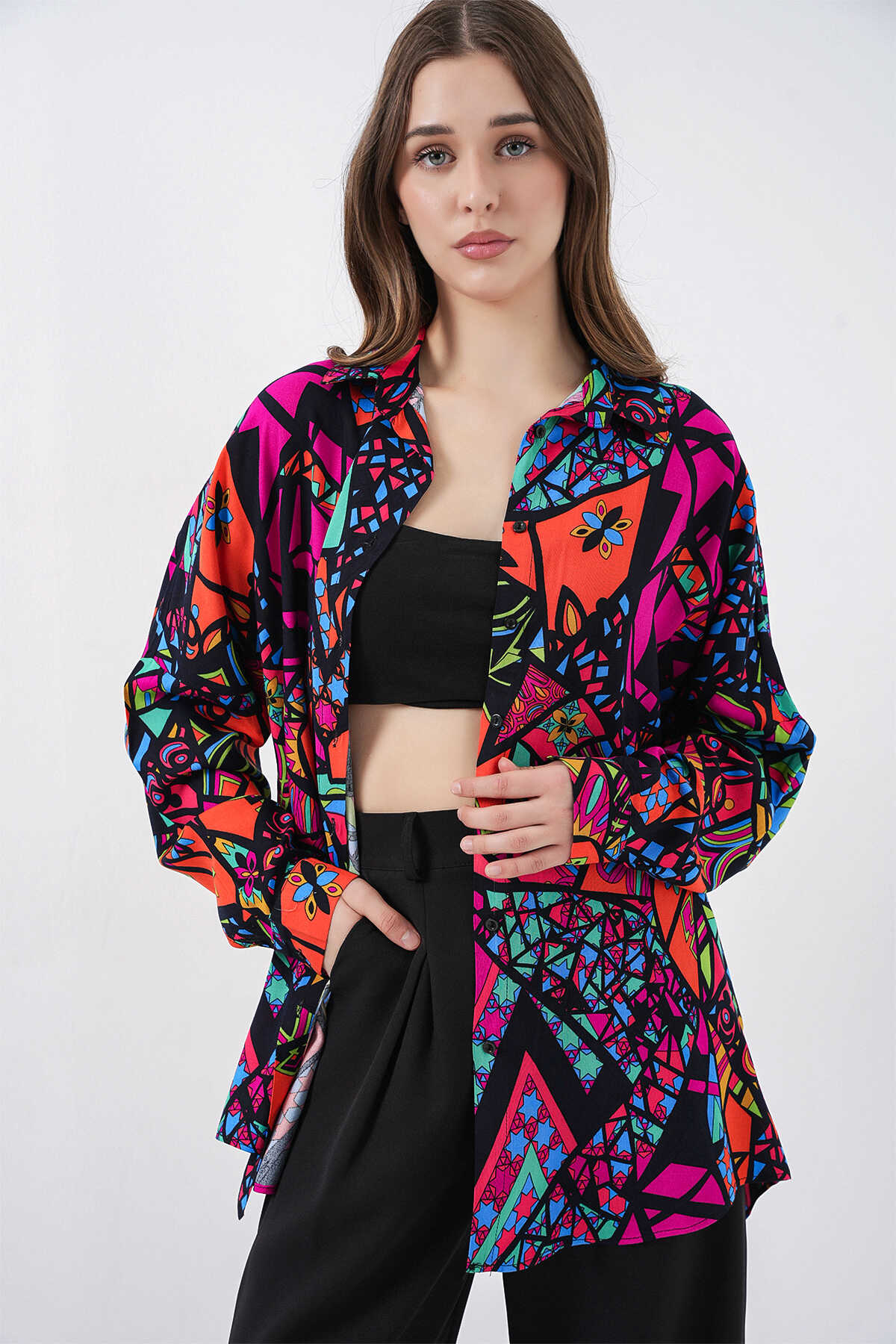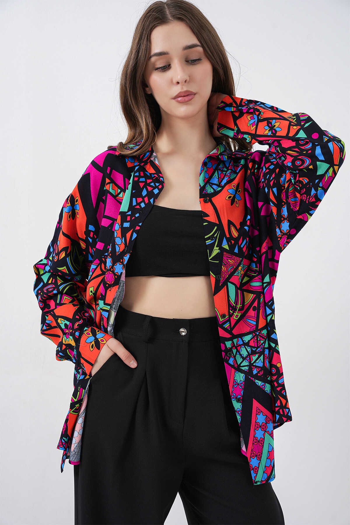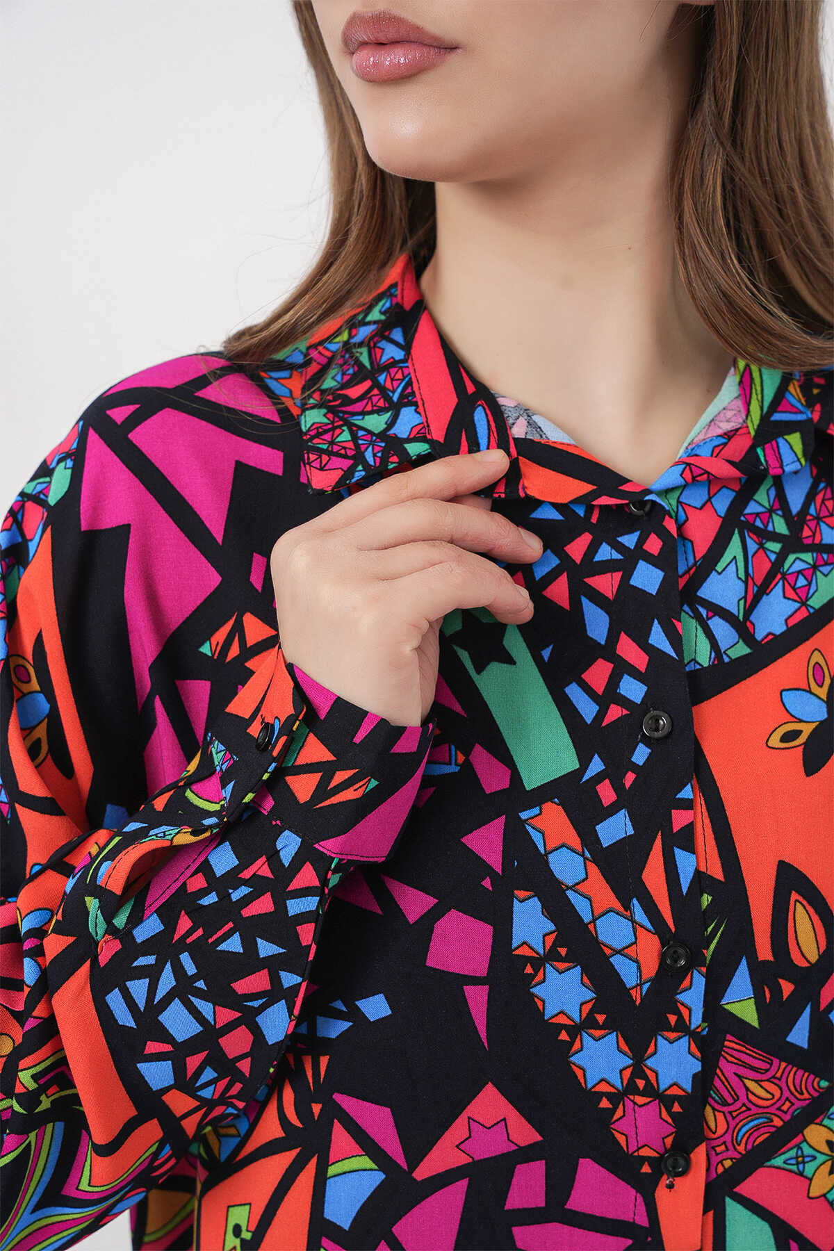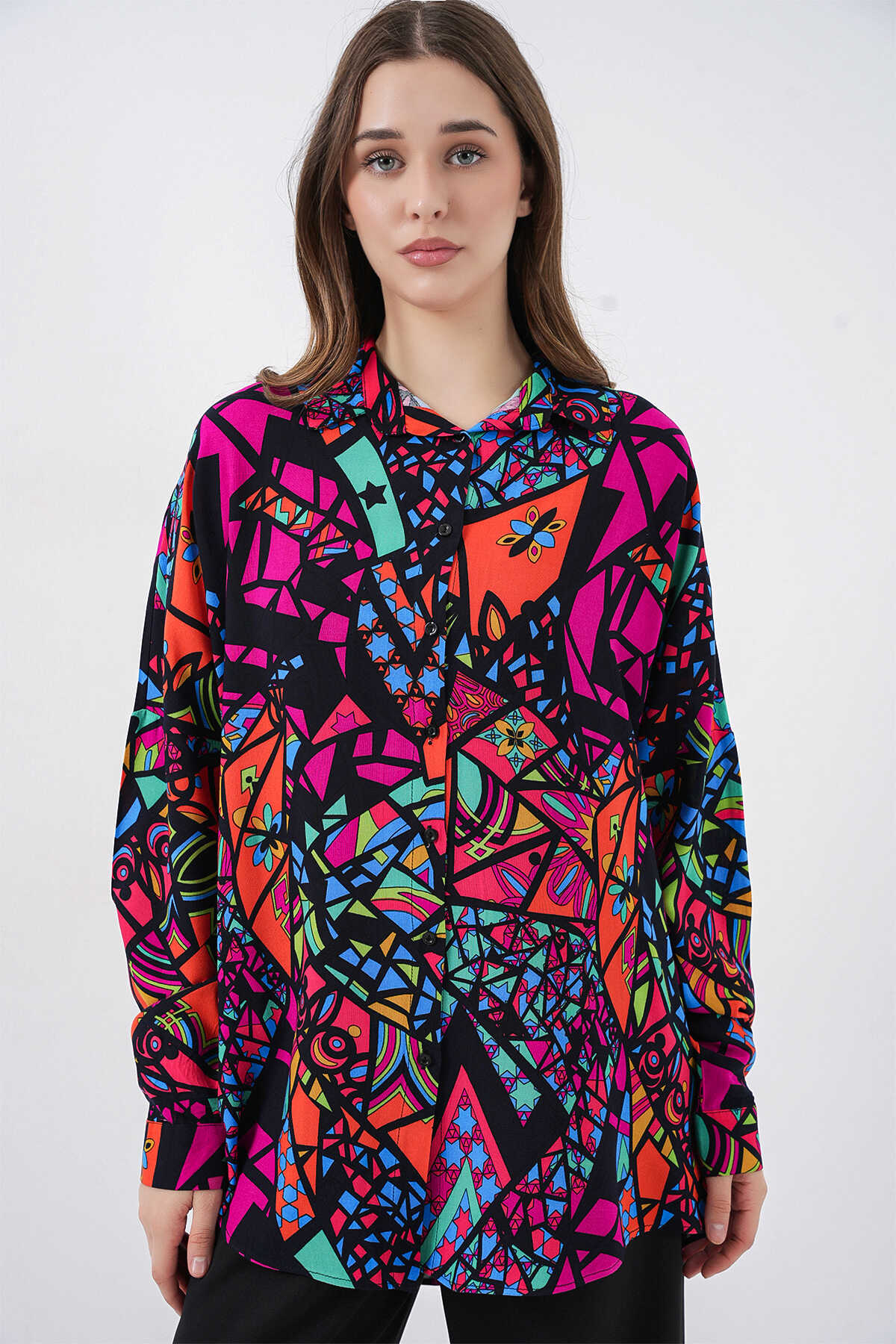 Kadin Grafik Desenli Gömlek 3721