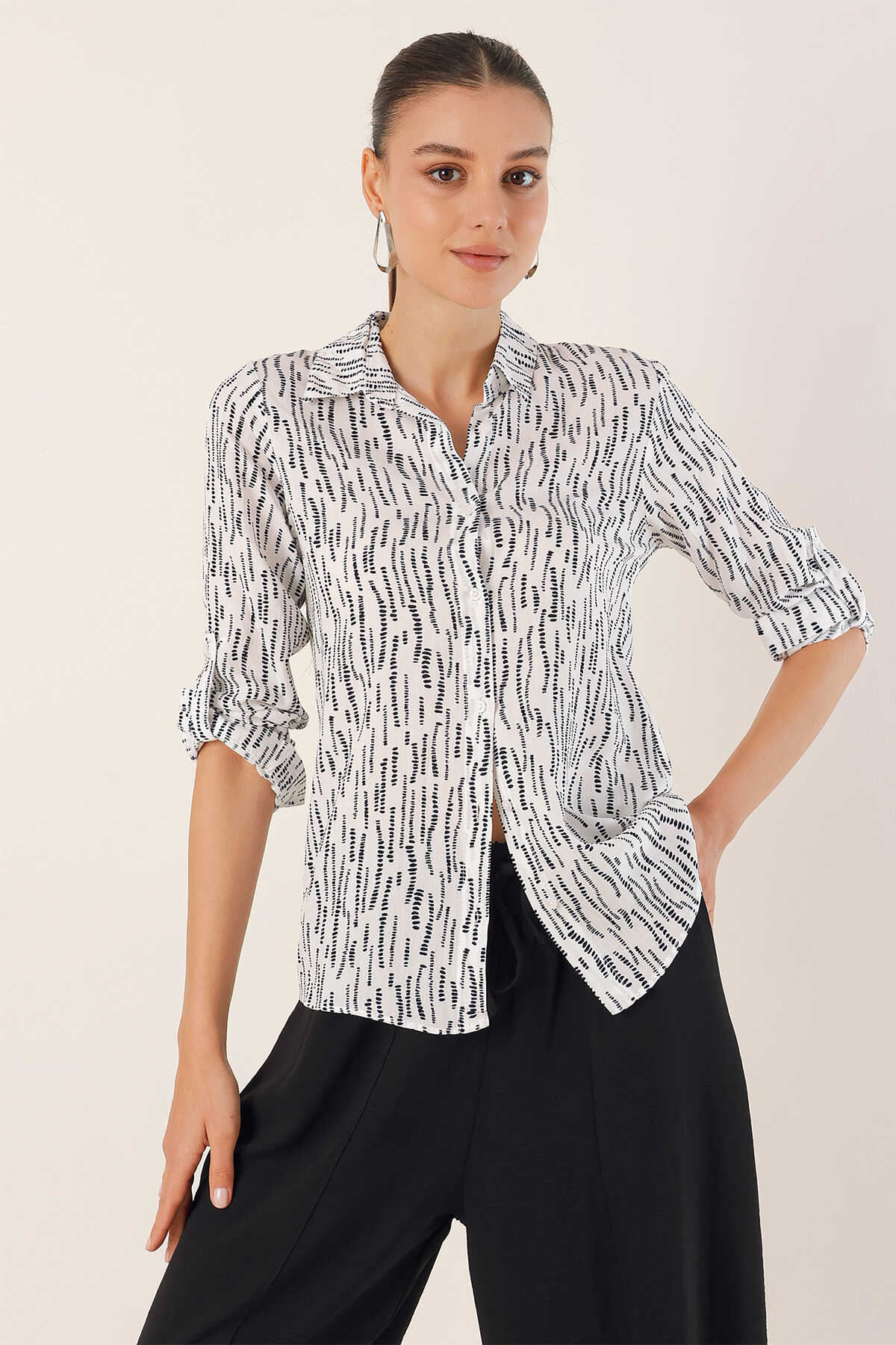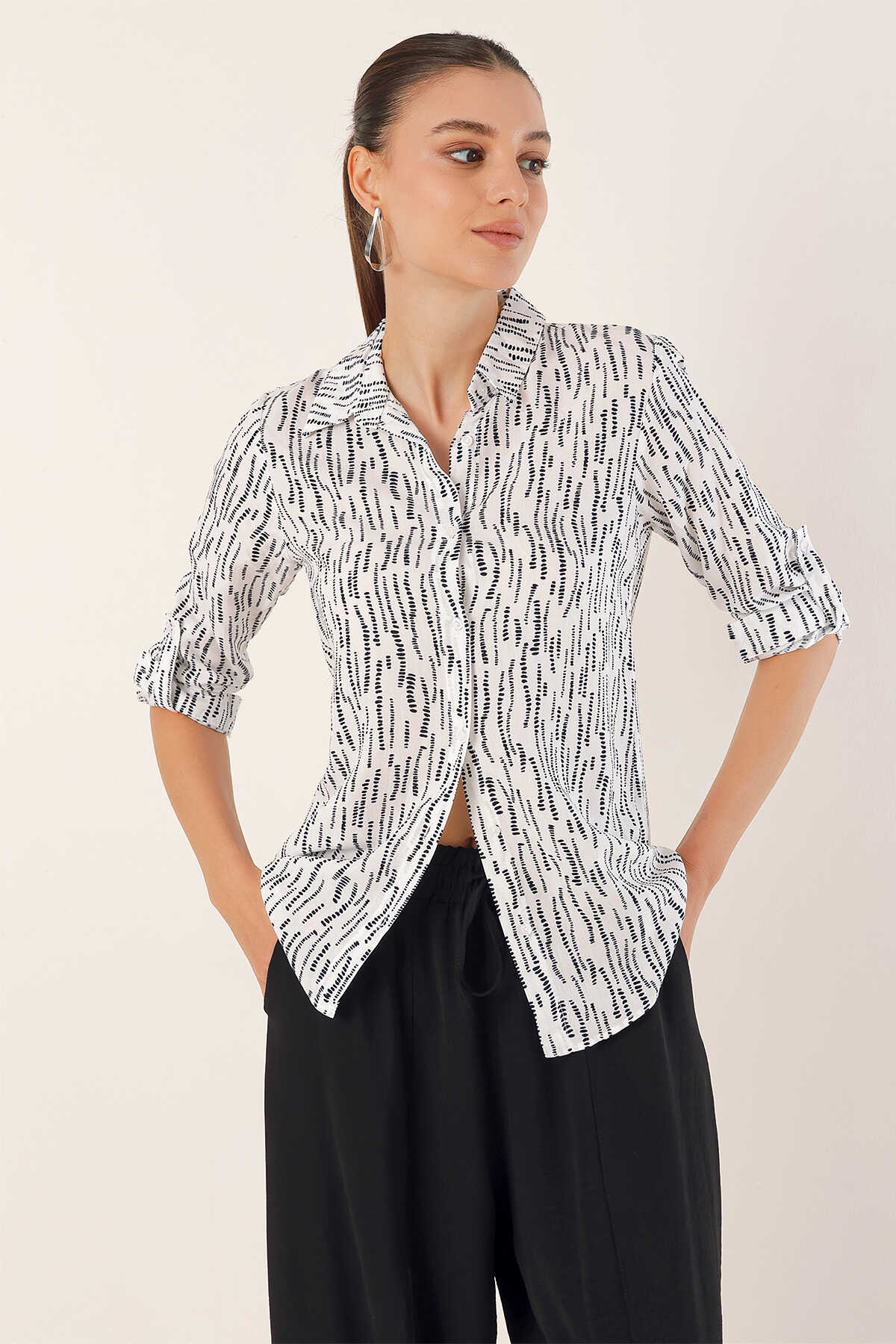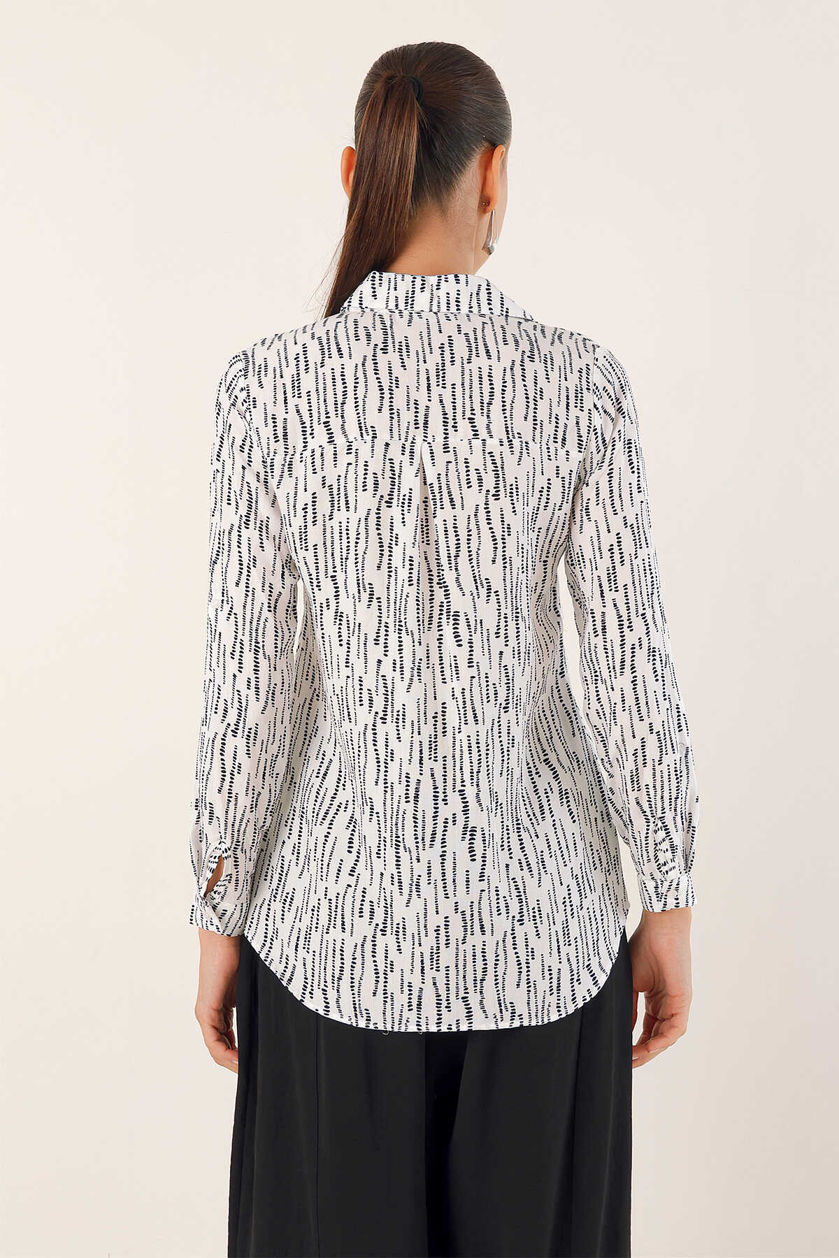 3721 Grafik Desenli Gömlek - H. Beyaz