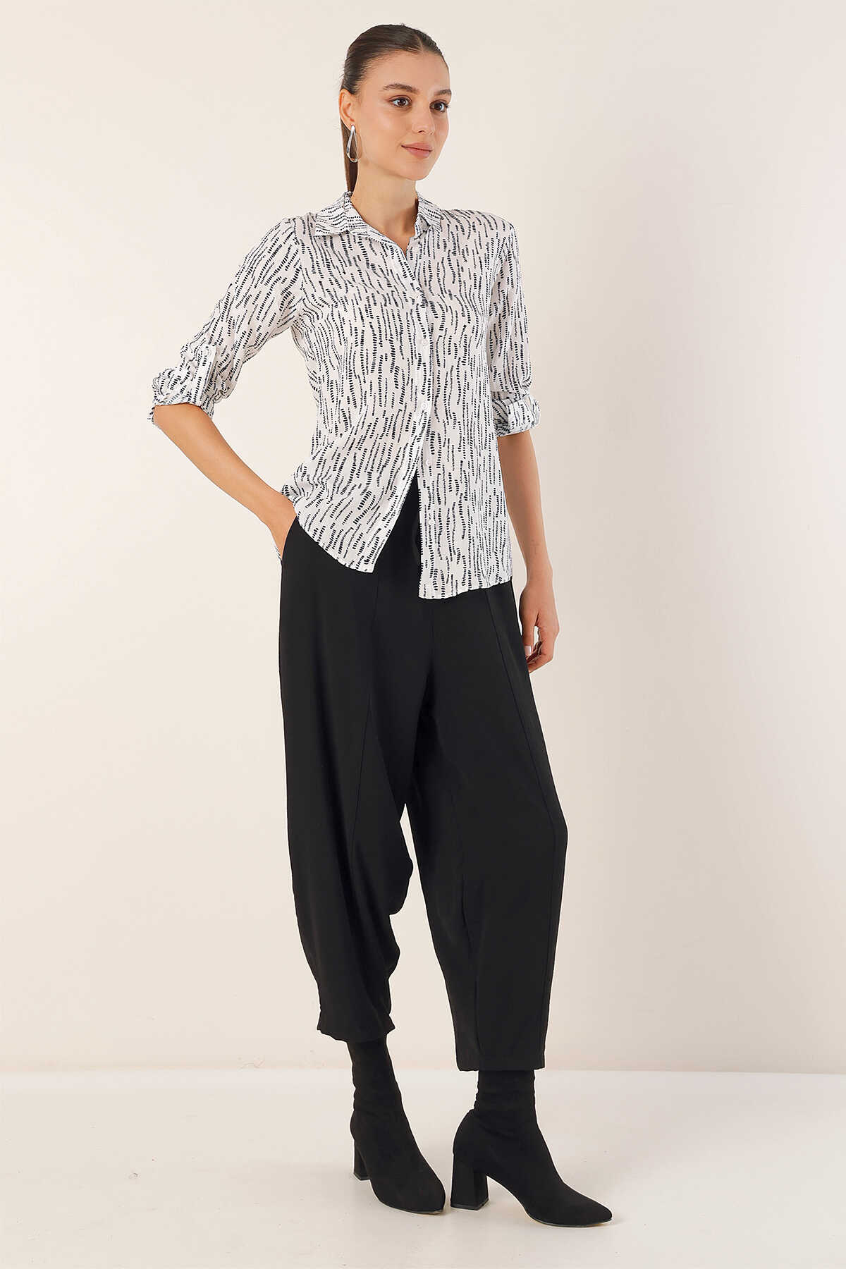 3721 Grafik Desenli Gömlek - H. Beyaz - Kombin