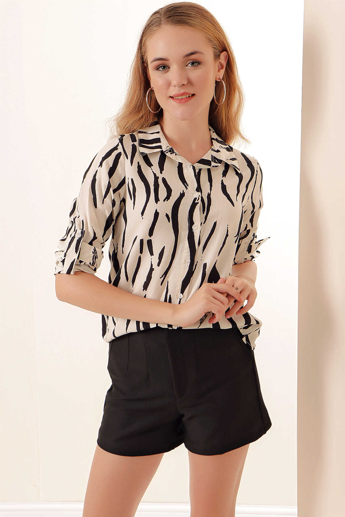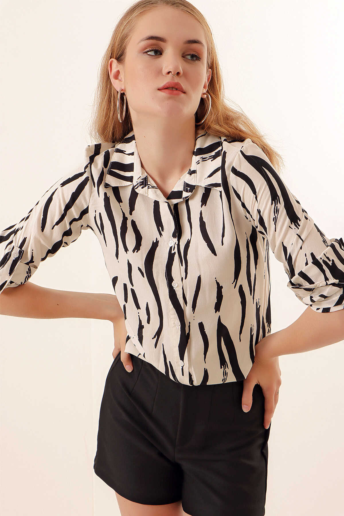 Kadin Grafik Desenli Gömlek 3721