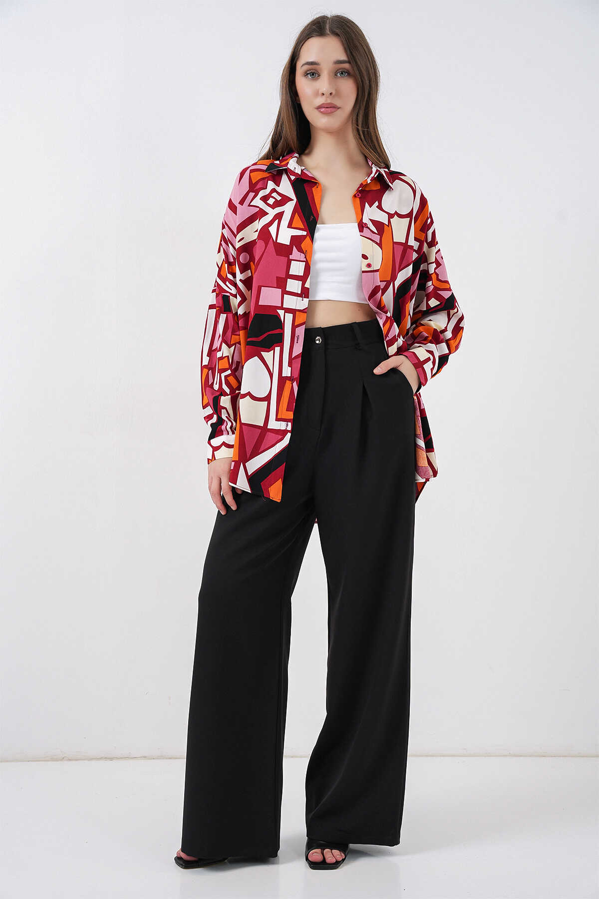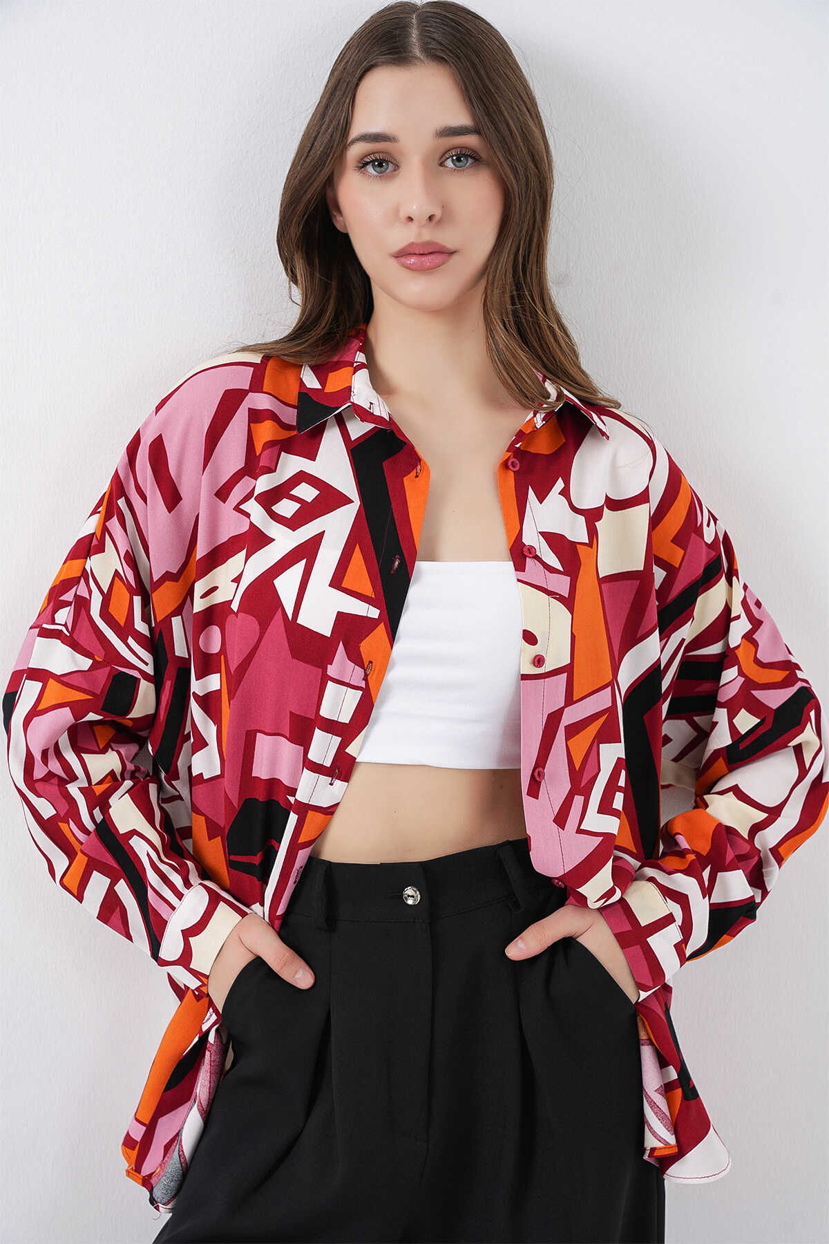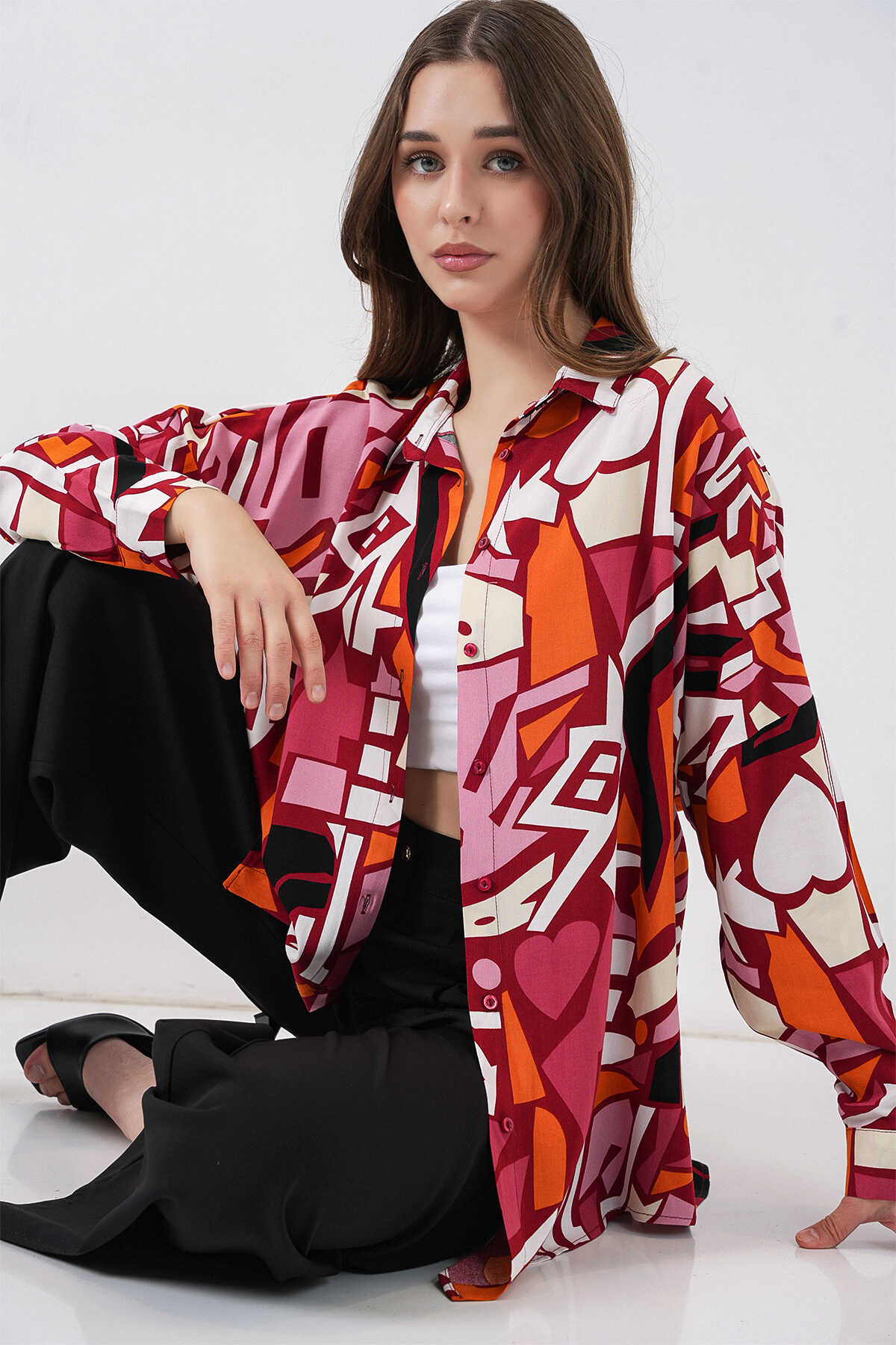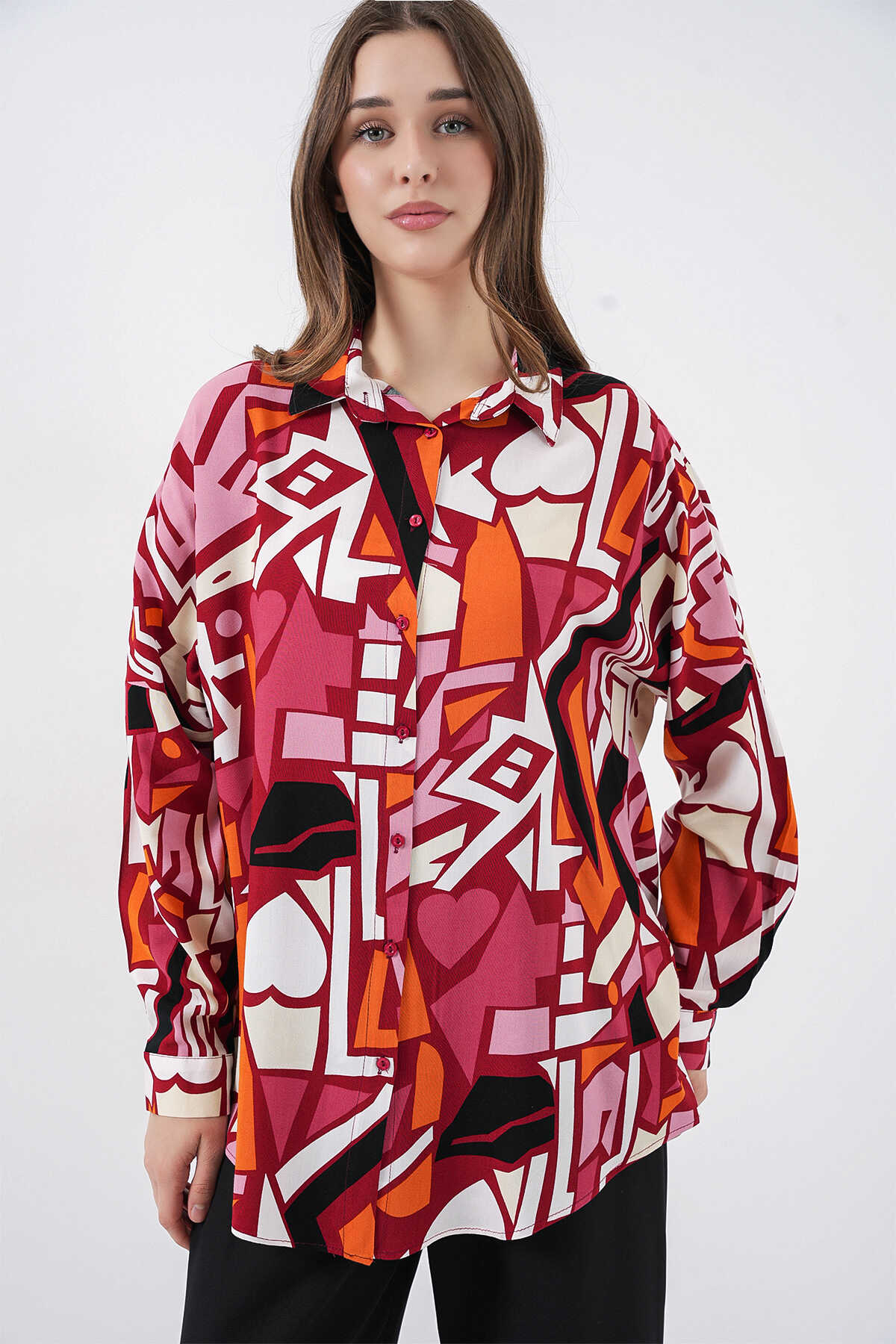 Kadin Grafik Desenli Gömlek 3721