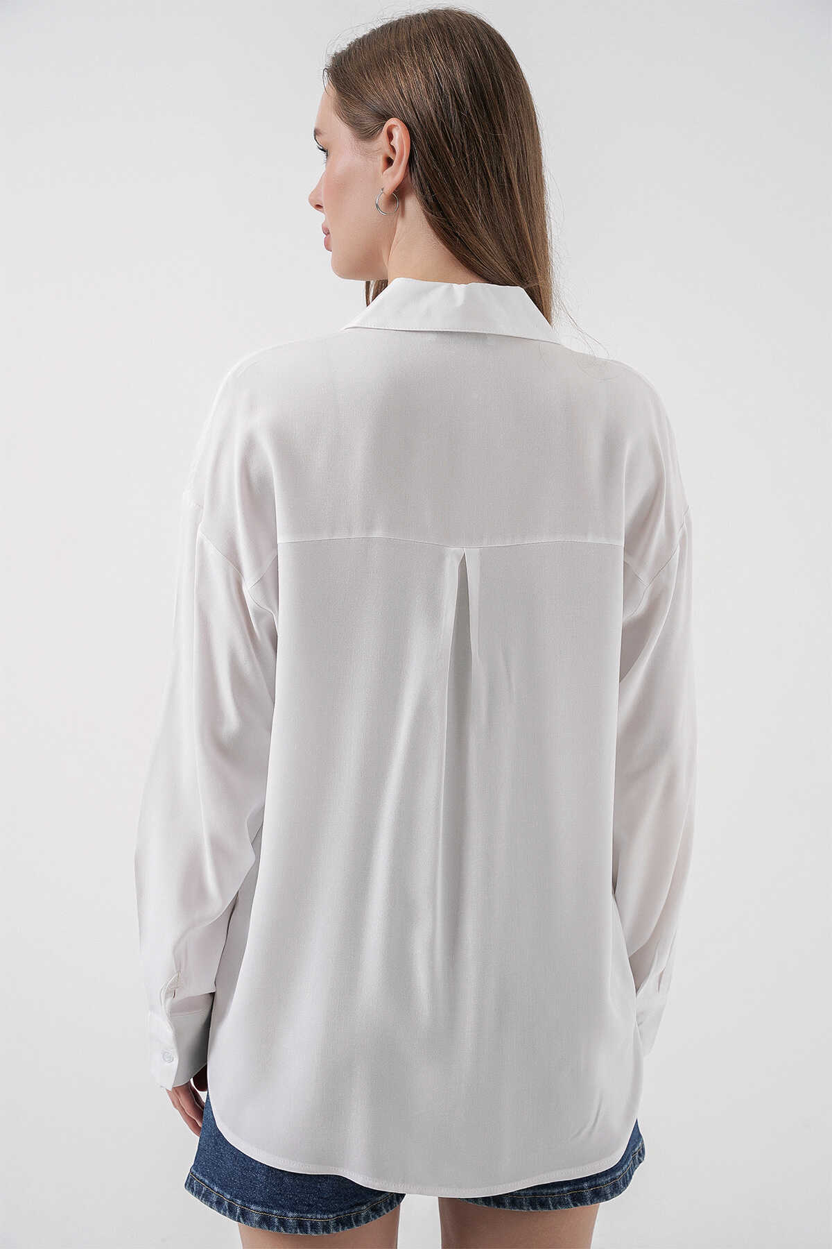 Kadın Oversize Viskon Gömlek 3785 - Beyaz - Kombin