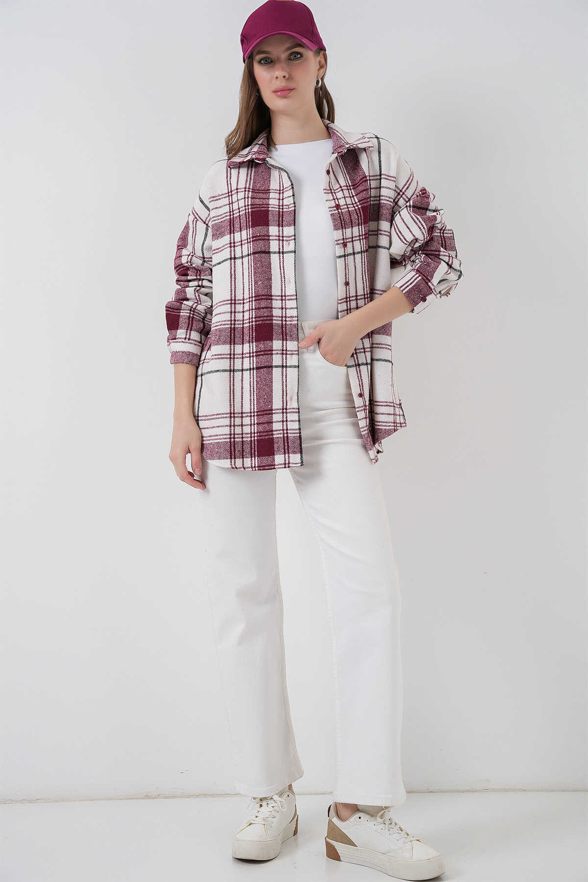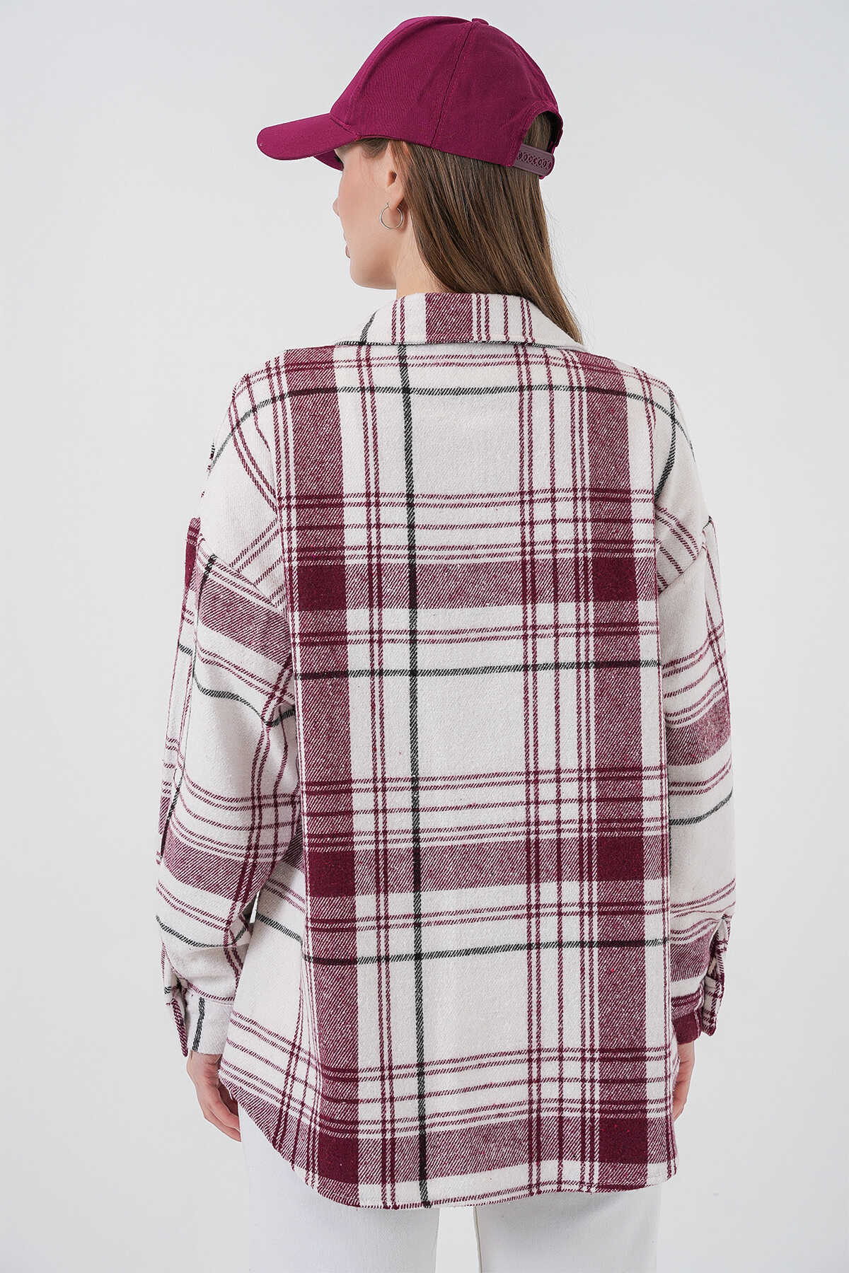 Kadin Ekose Desen Dügmeli Oversize Oduncu Gömlek