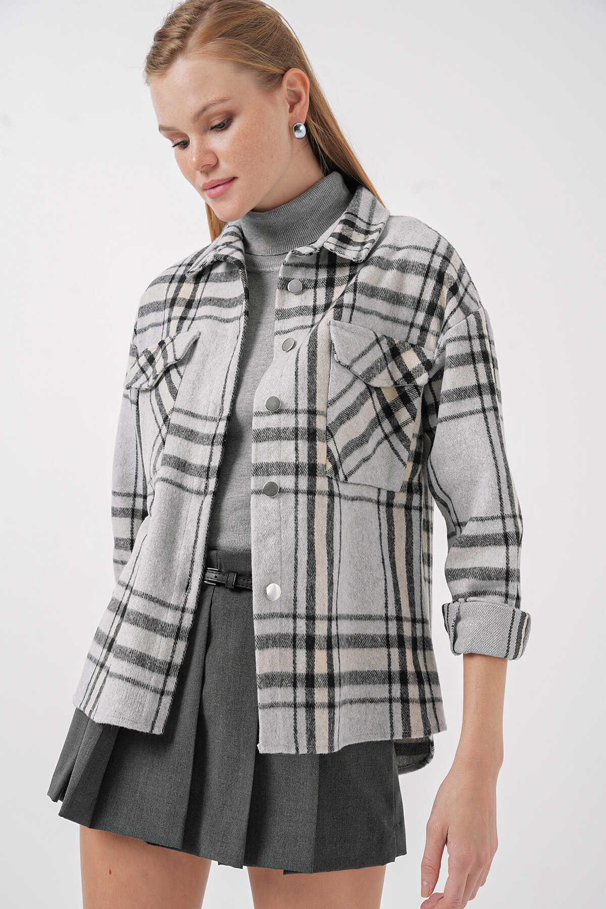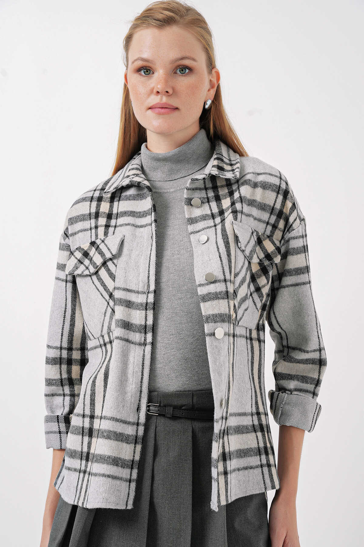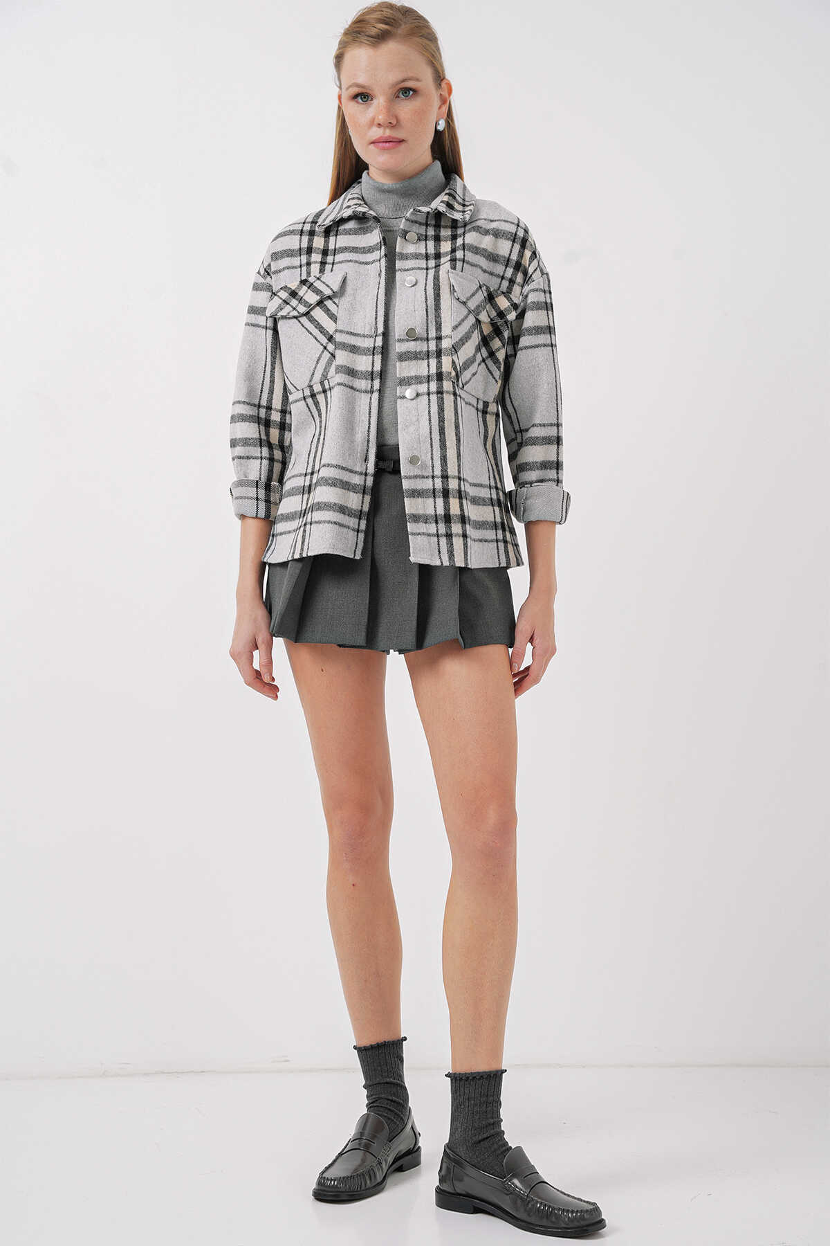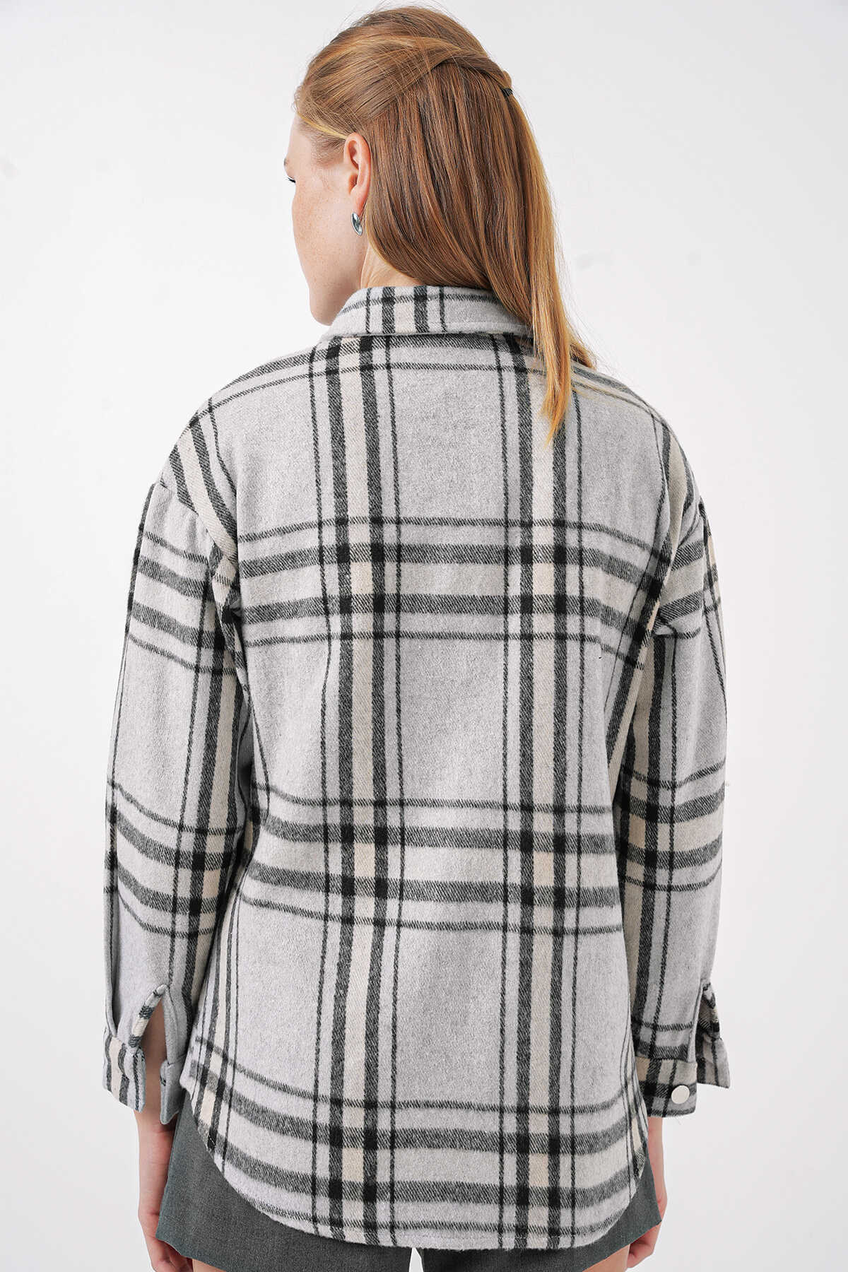 Kadin Ekose Desen Dügmeli Oversize Oduncu Gömlek