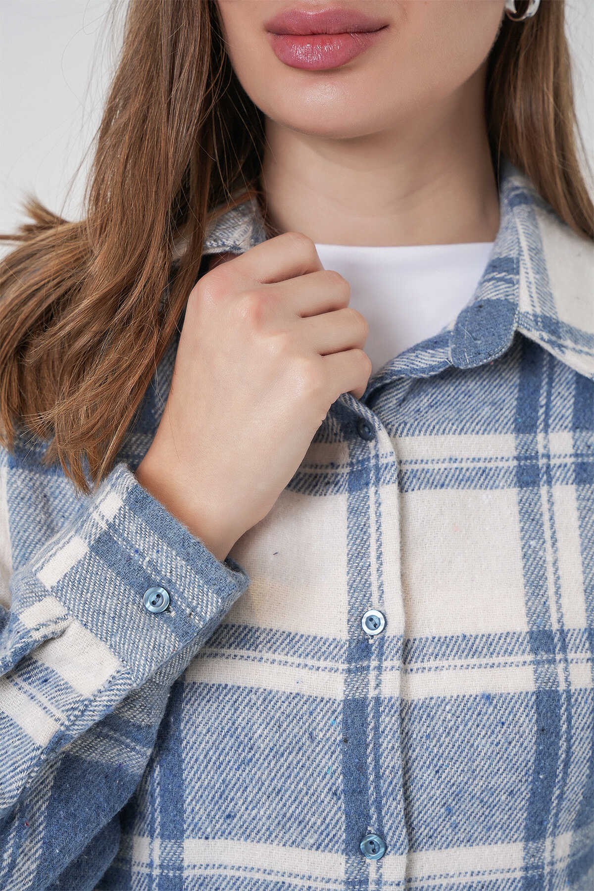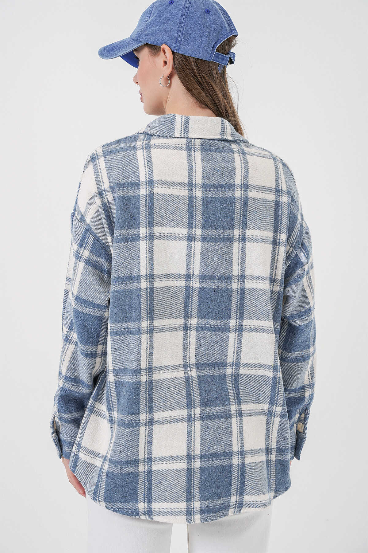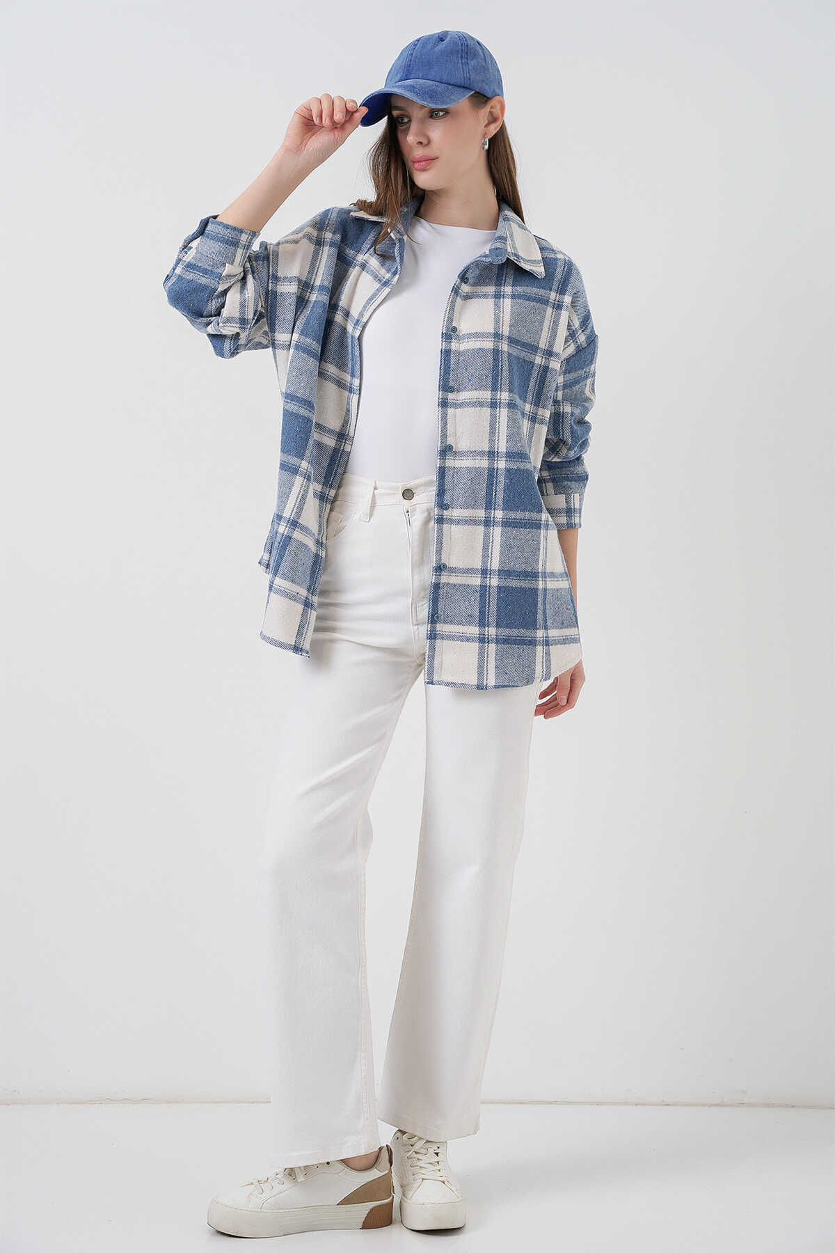 Kadin Ekose Desen Dügmeli Oversize Oduncu Gömlek