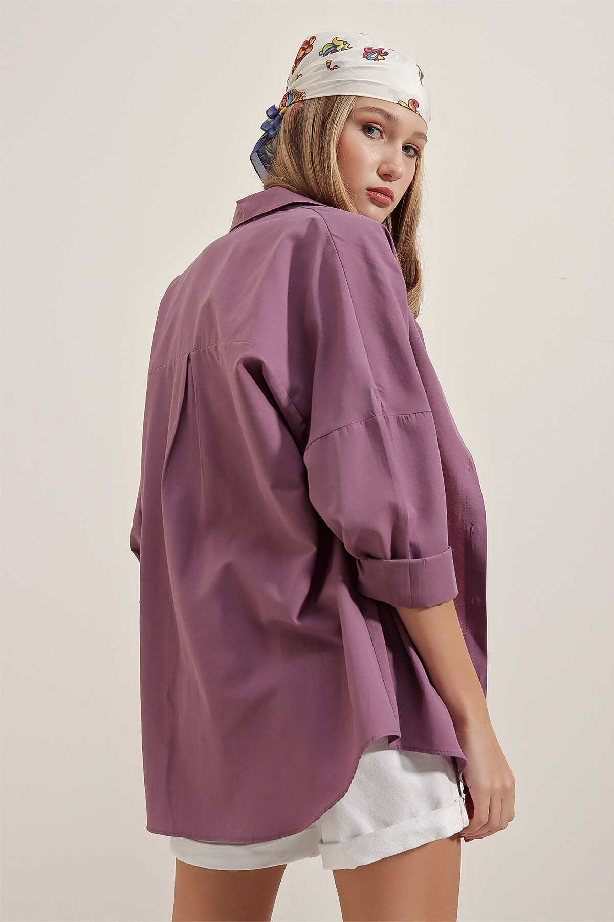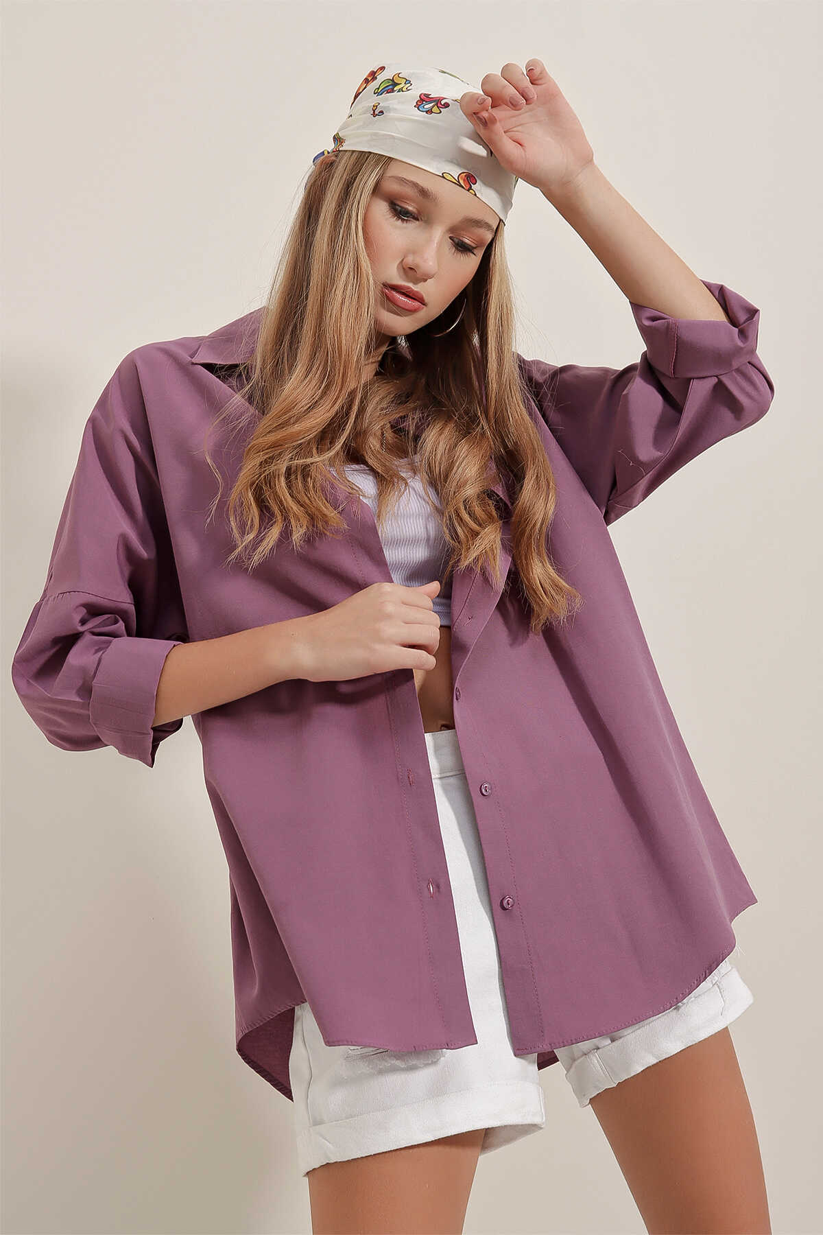 3900 Oversize Uzun Basic Gömlek - Koyu Lila