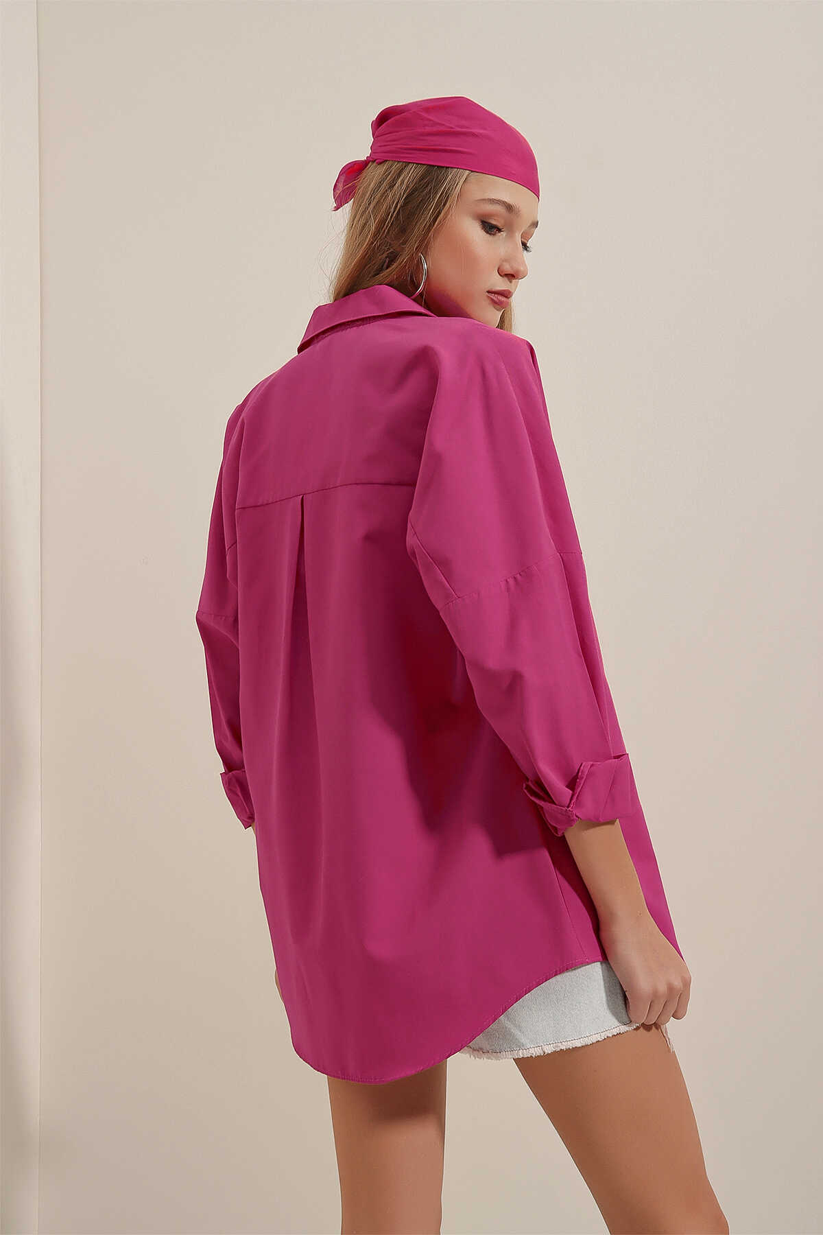 3900 Oversize Uzun Basic Gömlek - Koyu Pembe