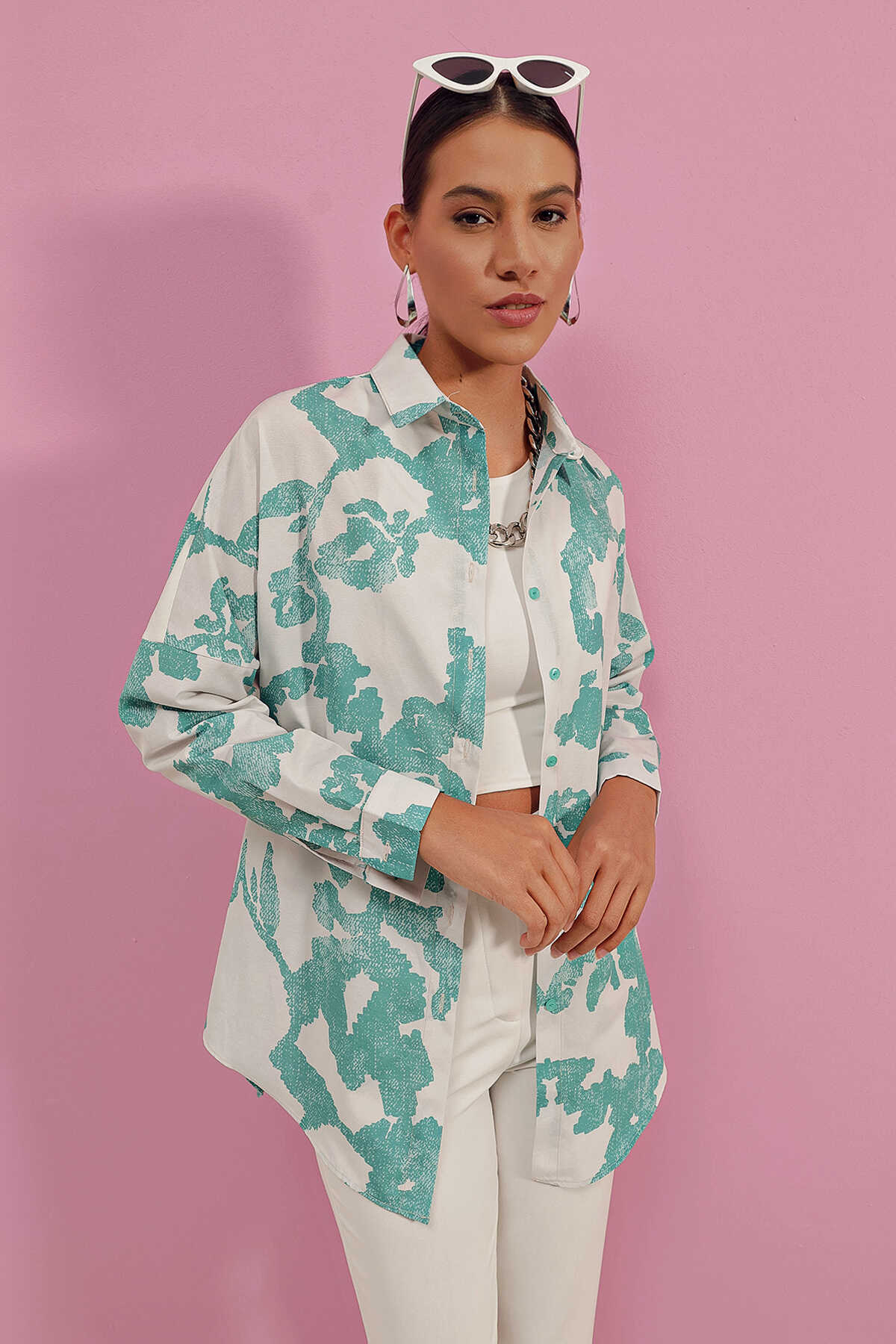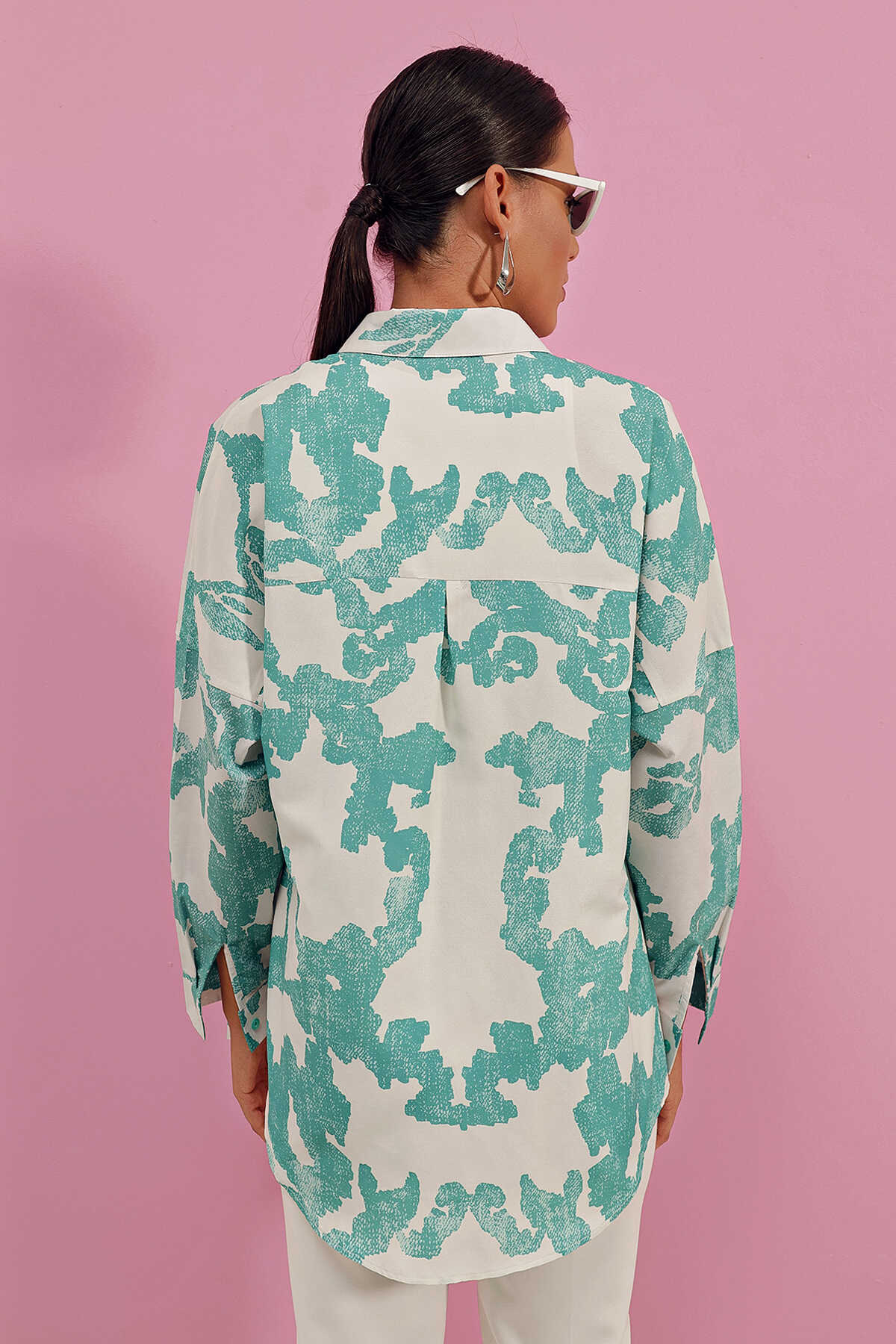3900 Oversize Uzun Basic Gömlek - D. Mint - Kombin