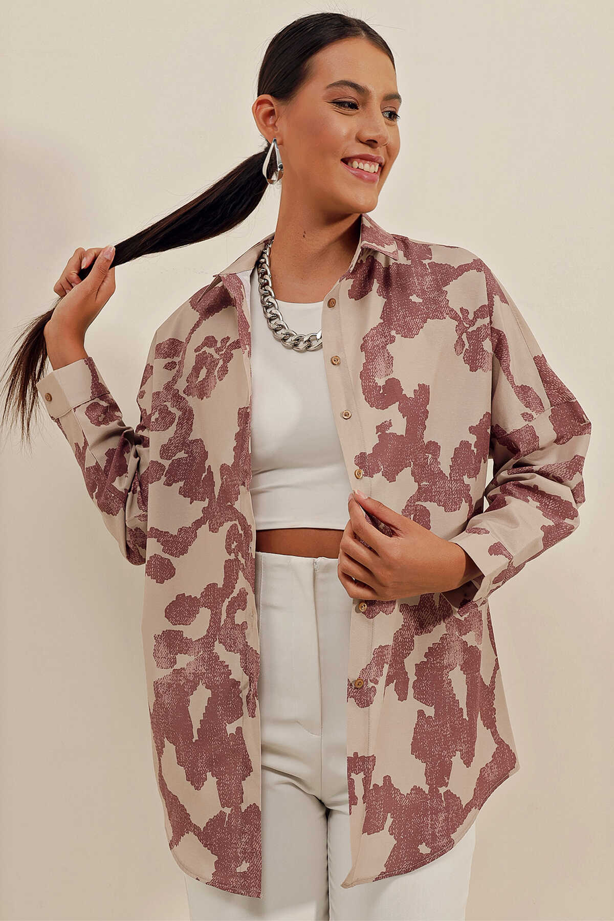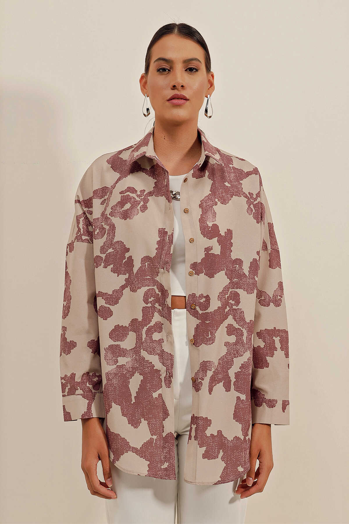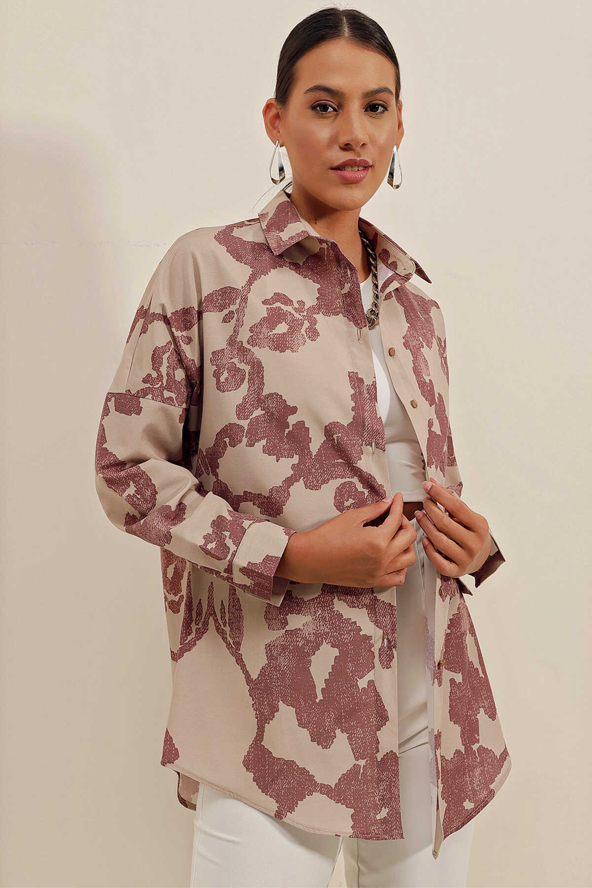 3900 Oversize Uzun Basic Gömlek - D.Gül Kurusu - Kombin