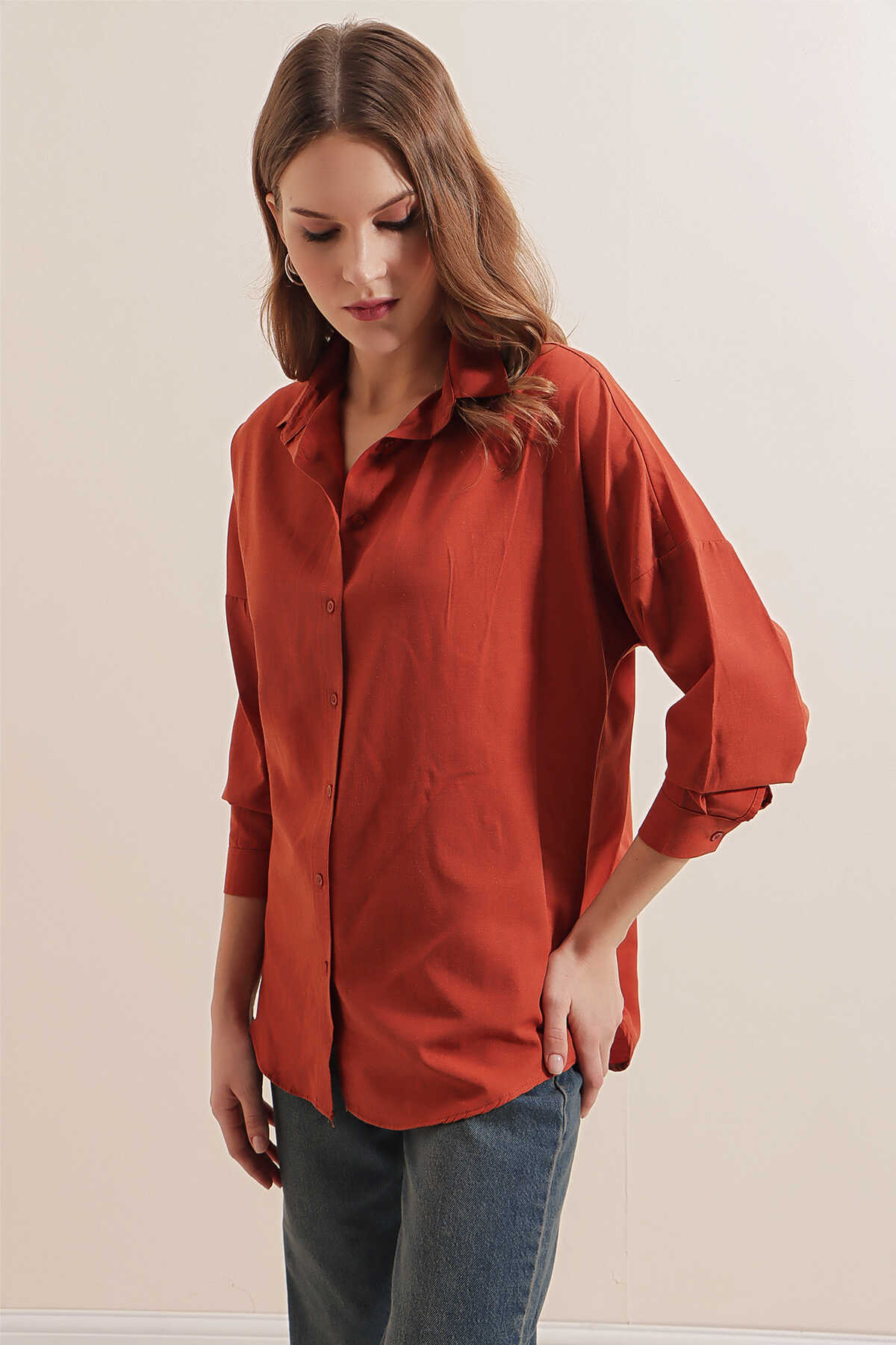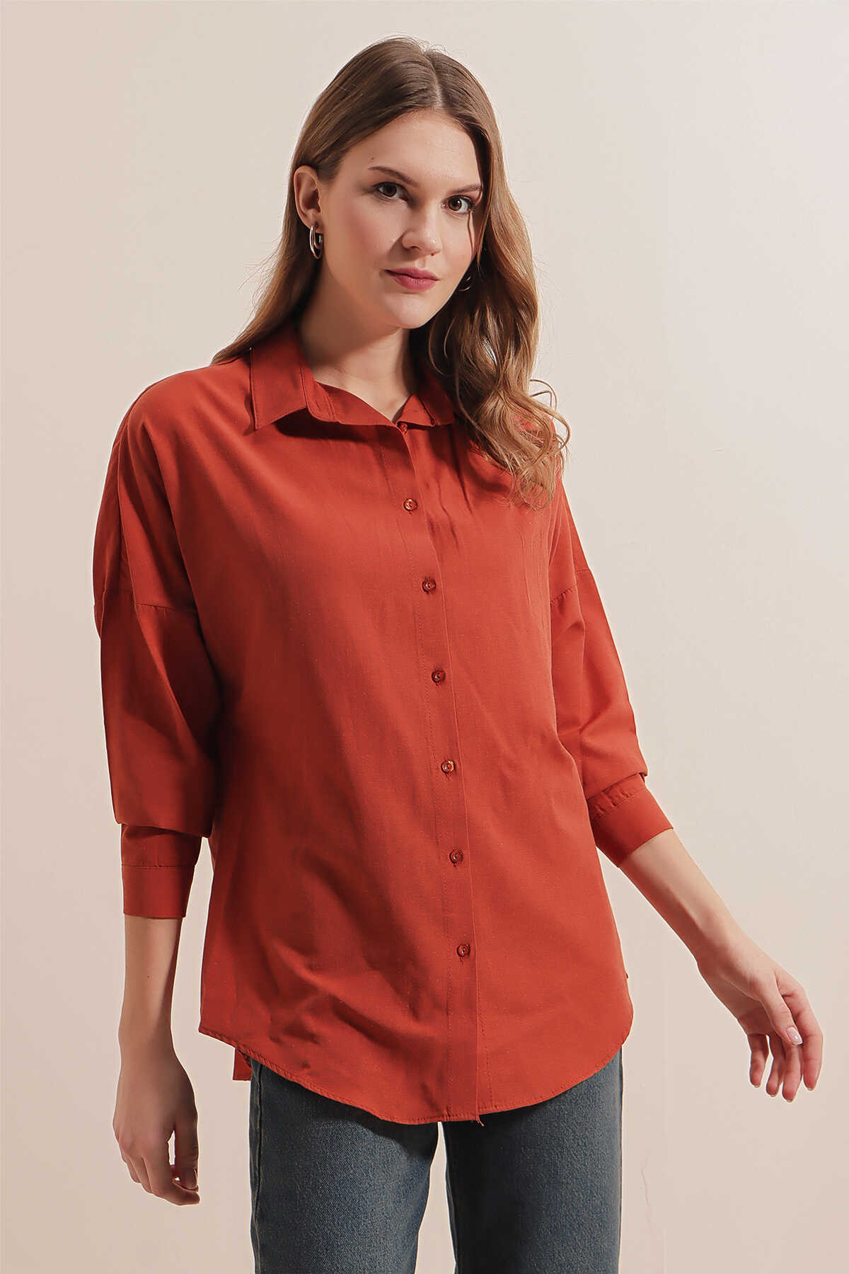 3900 Oversize Uzun Basic Gömlek - Kiremit