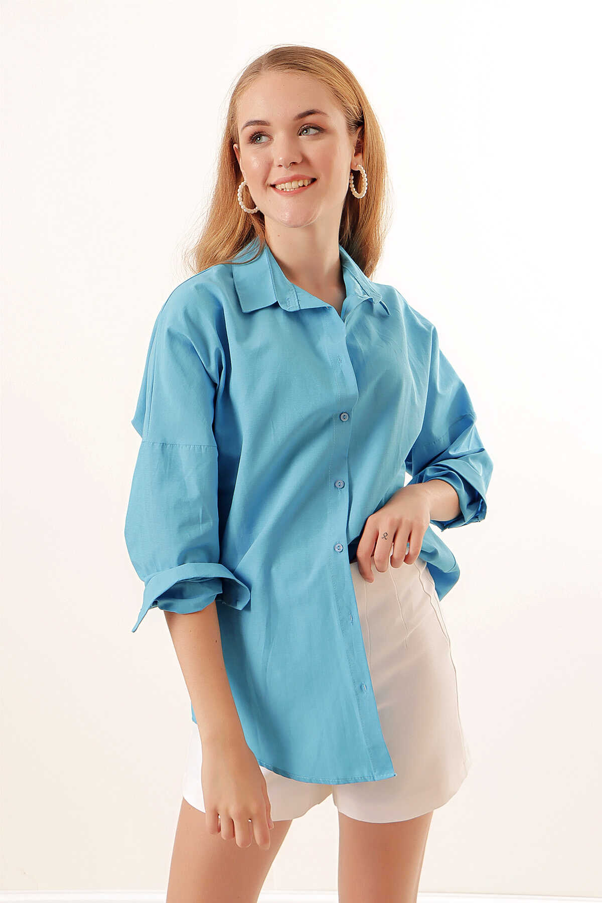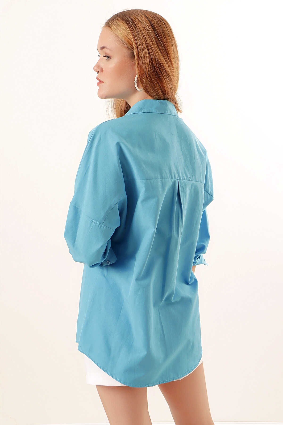 3900 Oversize Uzun Basic Gömlek - Koyu Mavi - Kombin