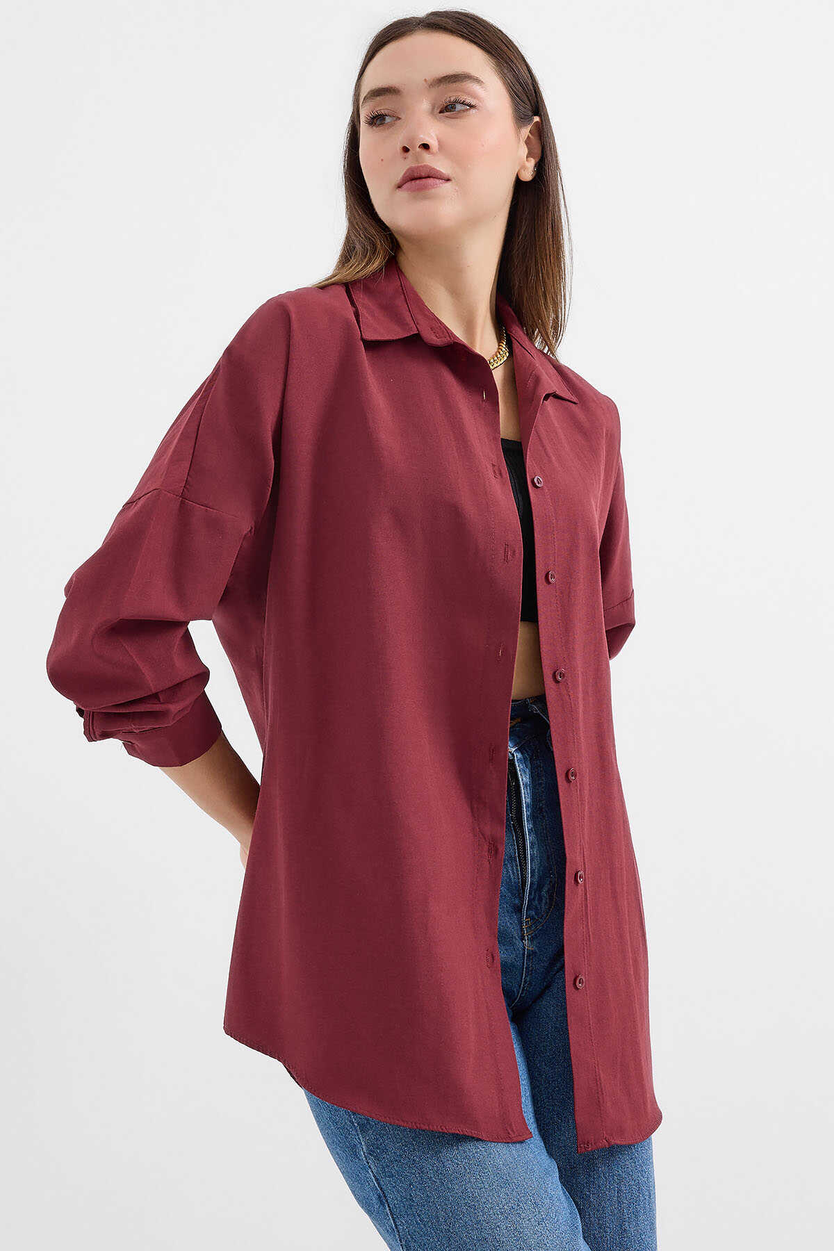 Oversize Uzun Basic Gömlek