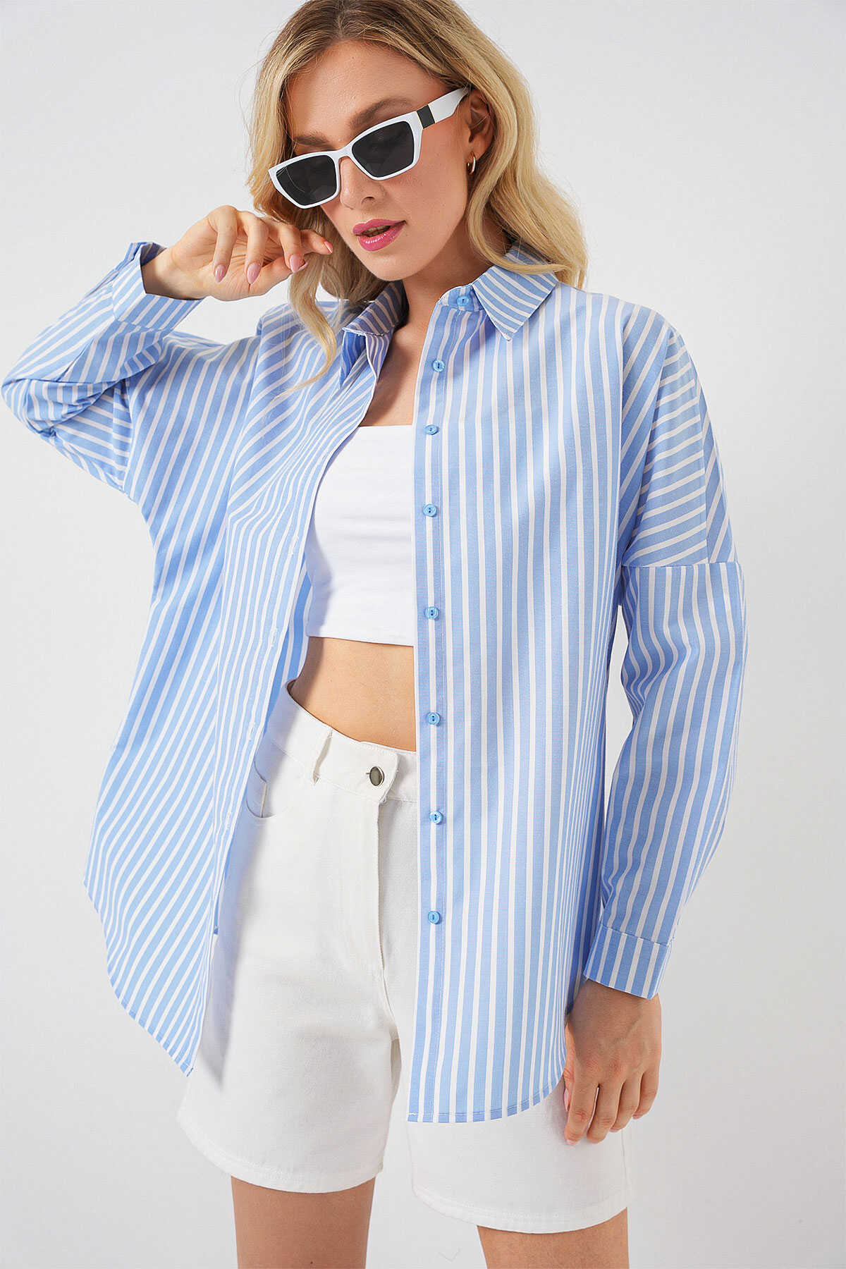 3900 Oversize Uzun Basic Gömlek - V. İndigo