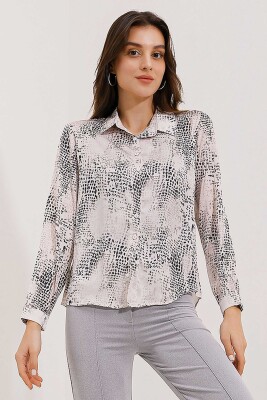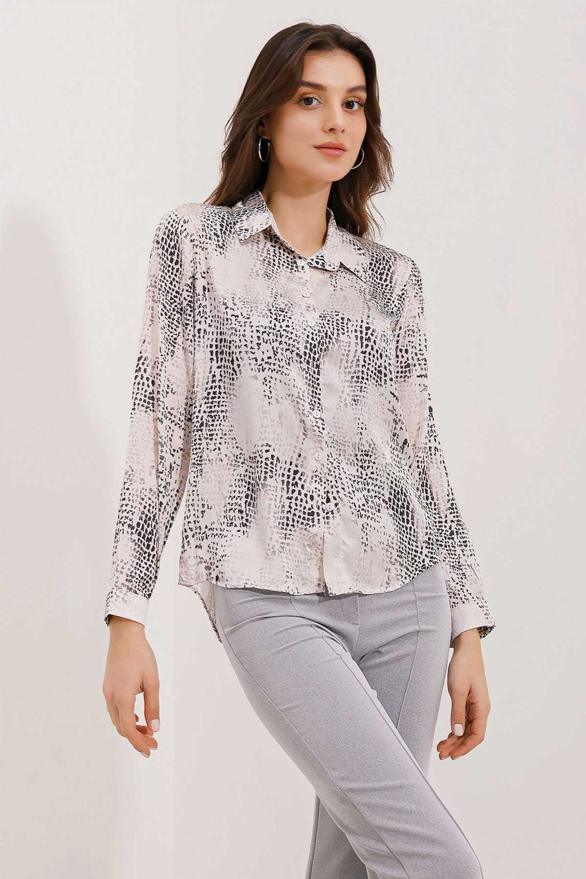 3964 Hafif Dökümlü Saten Gömlek - A.Gri - Kombin