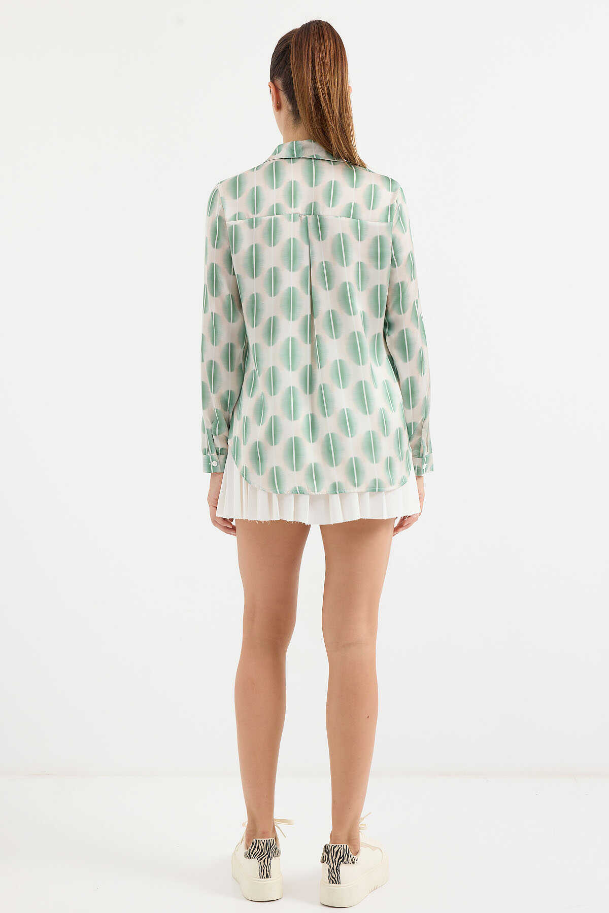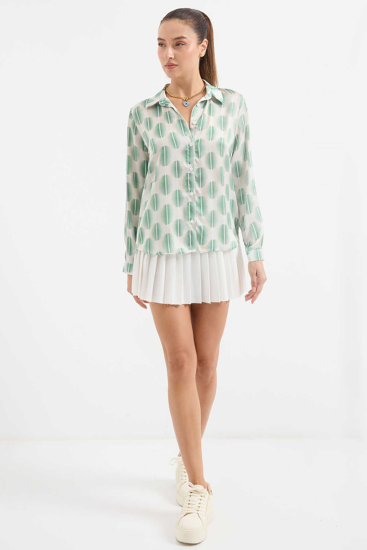 3964 Hafif Dökümlü Saten Gömlek - B. Haki