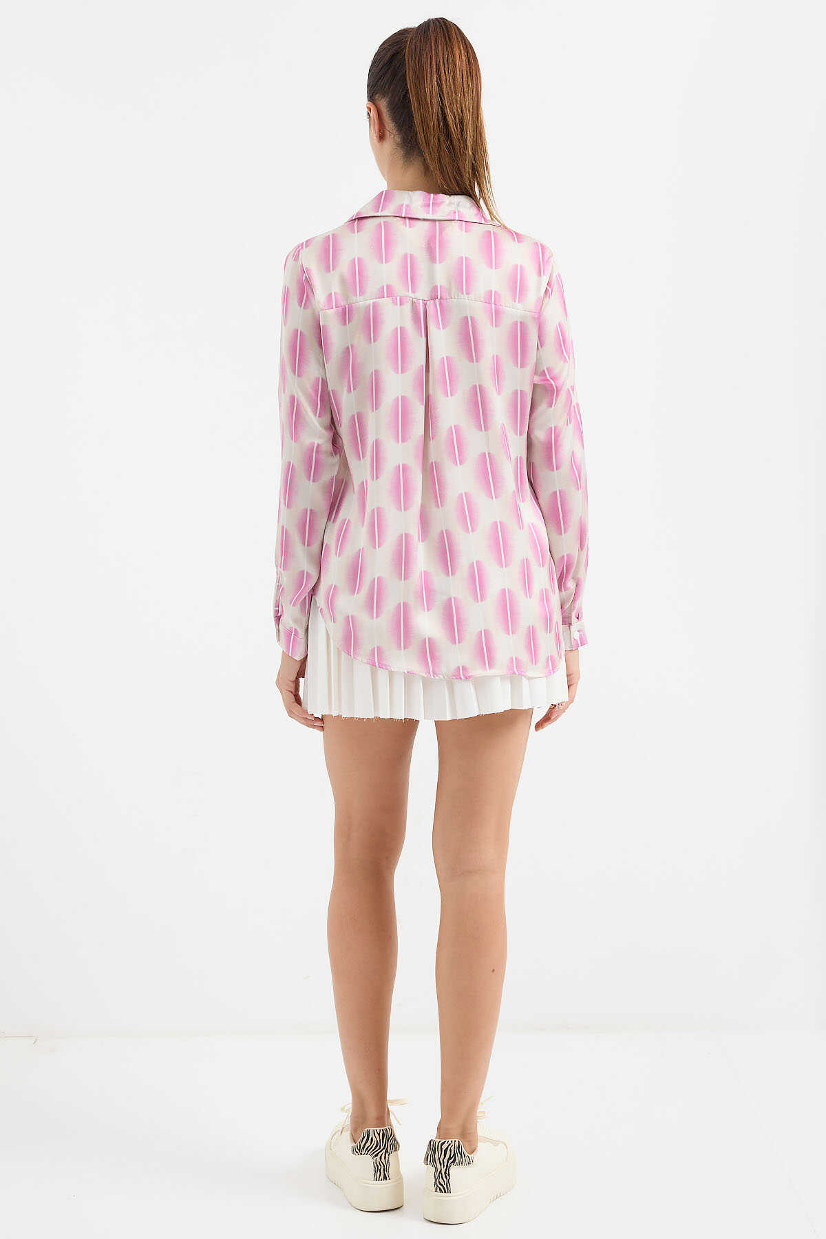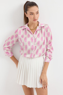 3964 Hafif Dökümlü Saten Gömlek - B.Pembe