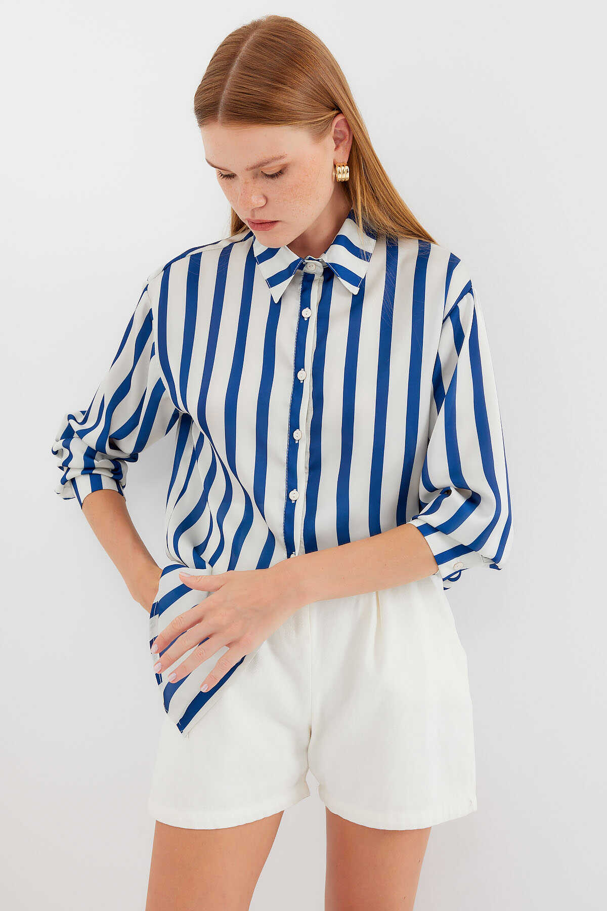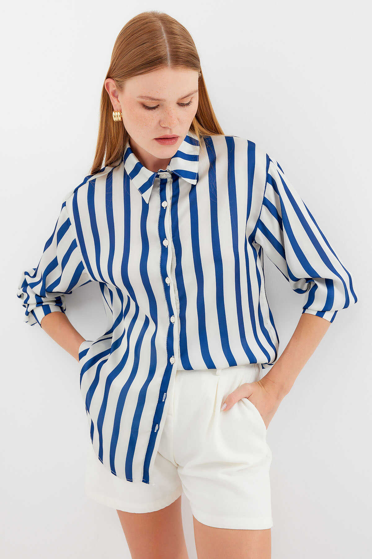 Hafif Dökümlü Saten Gömlek