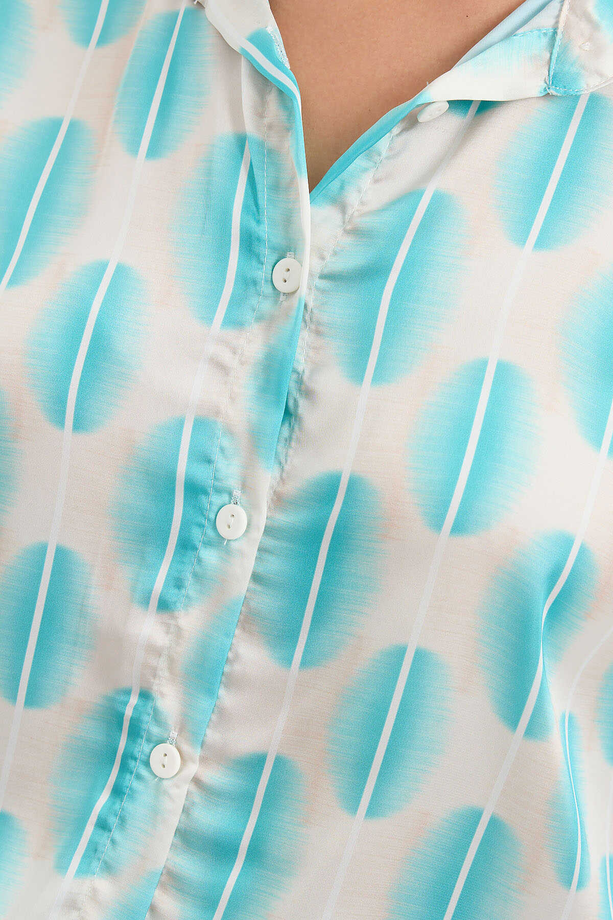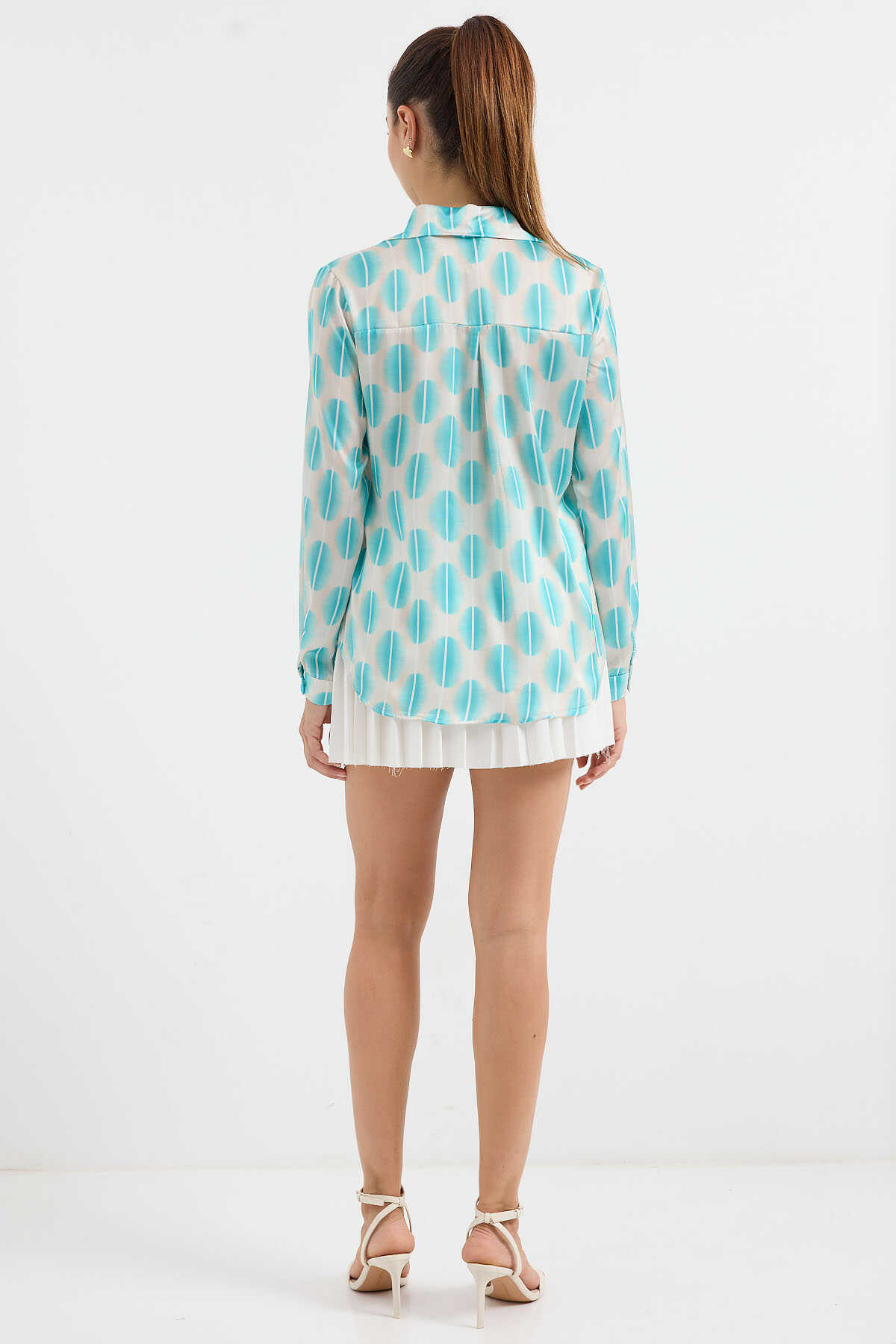 3964 Hafif Dökümlü Saten Gömlek - B.Turkuaz