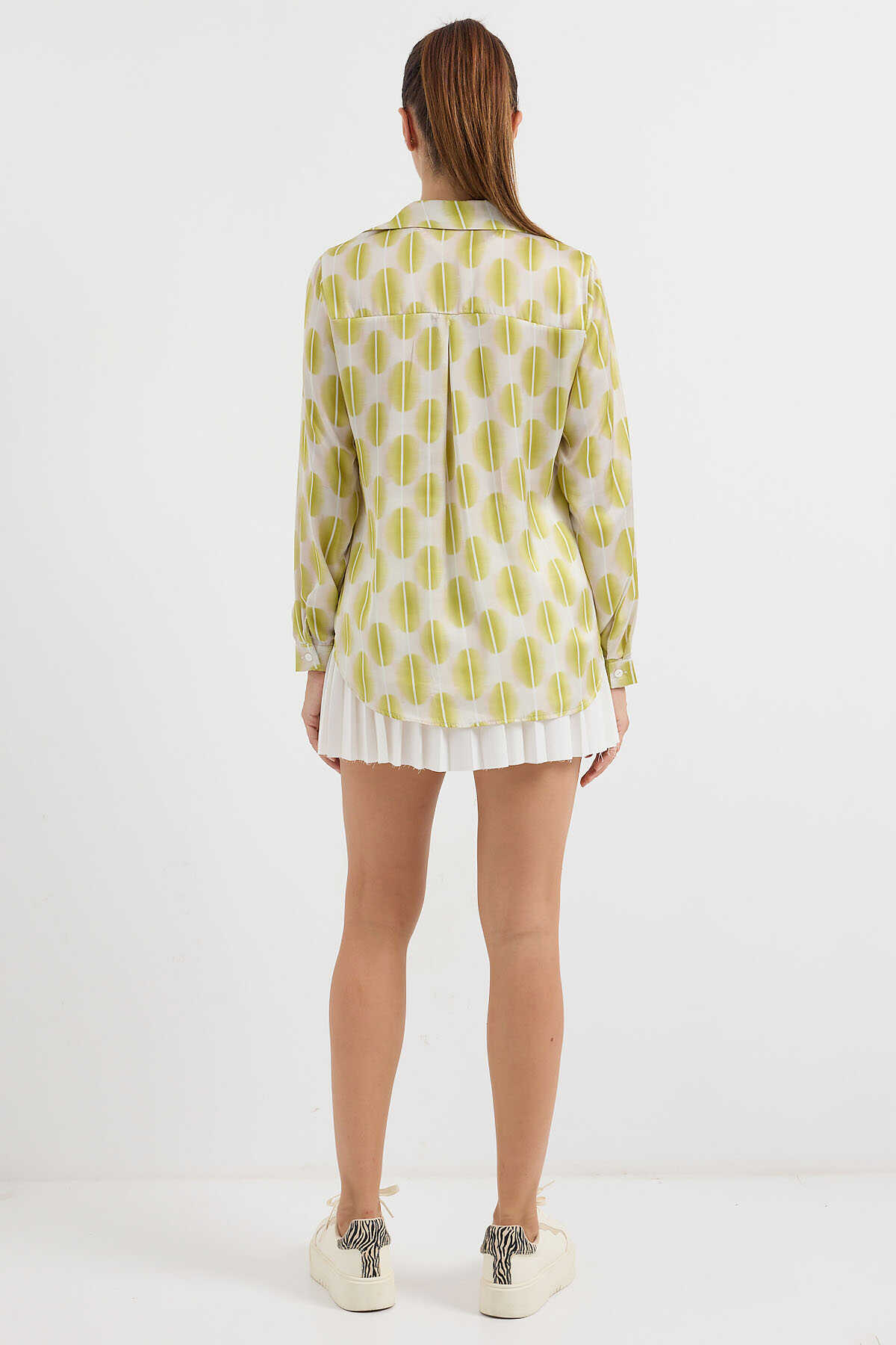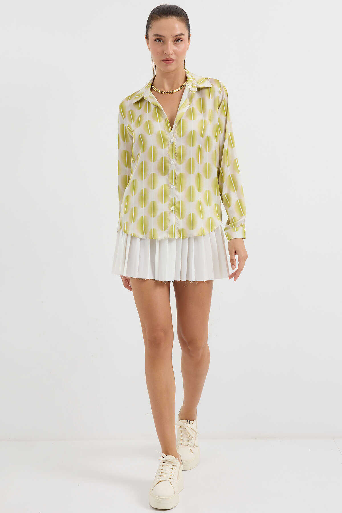 3964 Hafif Dökümlü Saten Gömlek - C.Sarı - Kombin