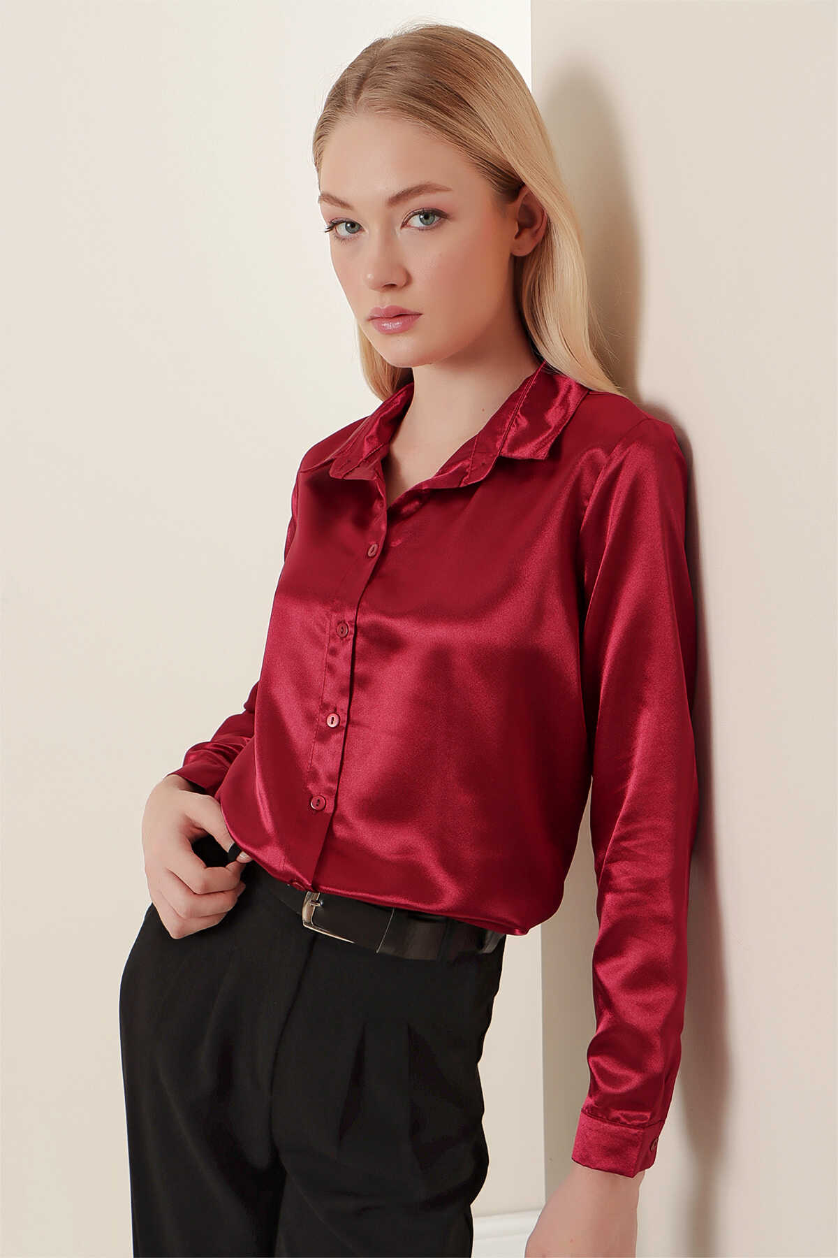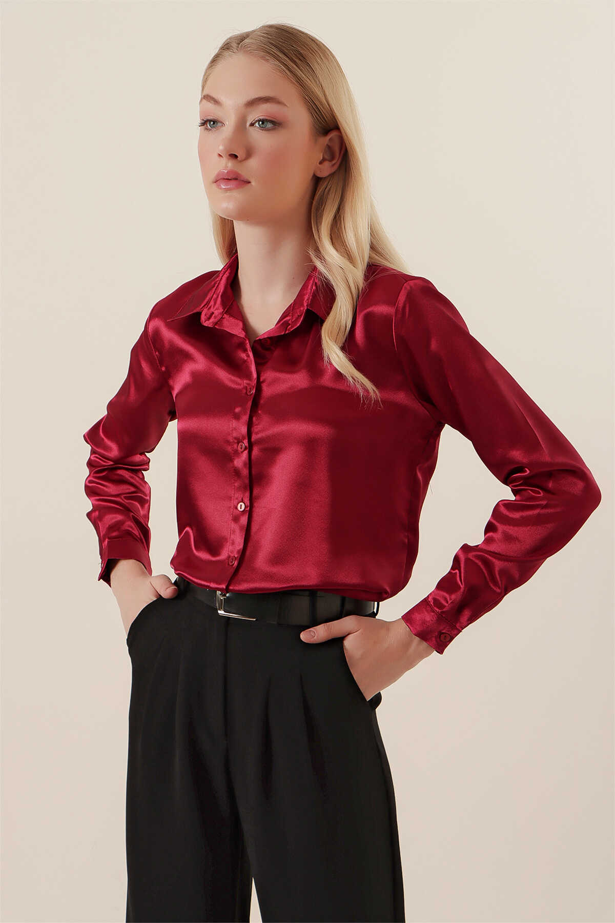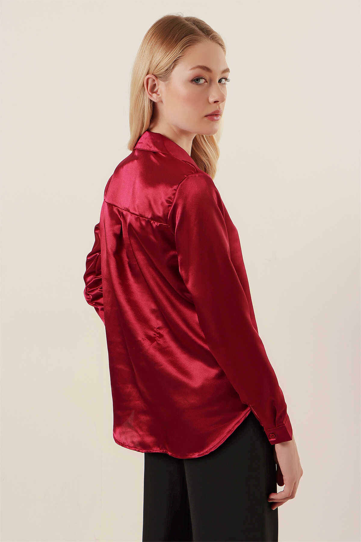Hafif Dökümlü Saten Gömlek