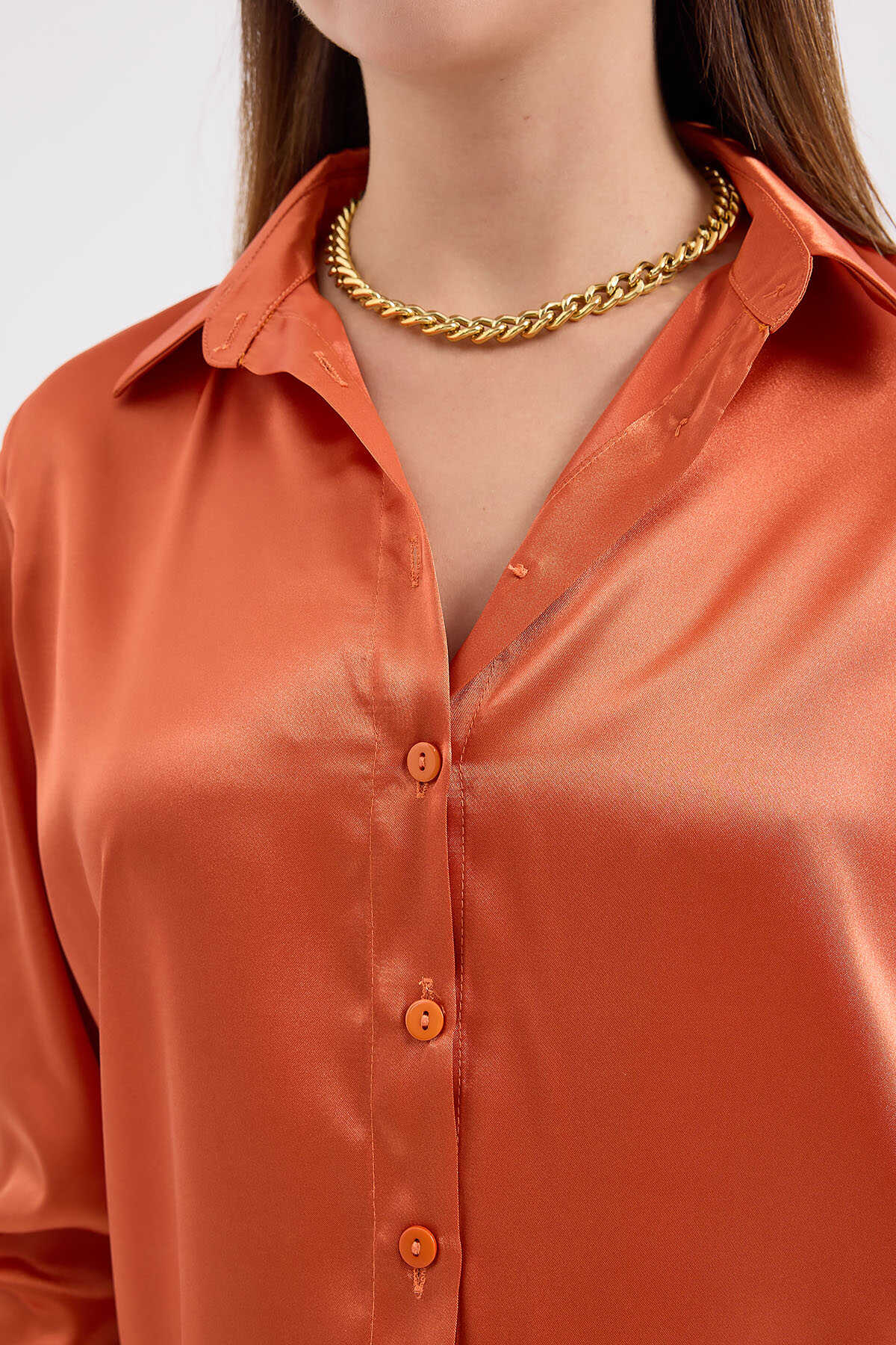 3964 Hafif Dökümlü Saten Gömlek - Turuncu