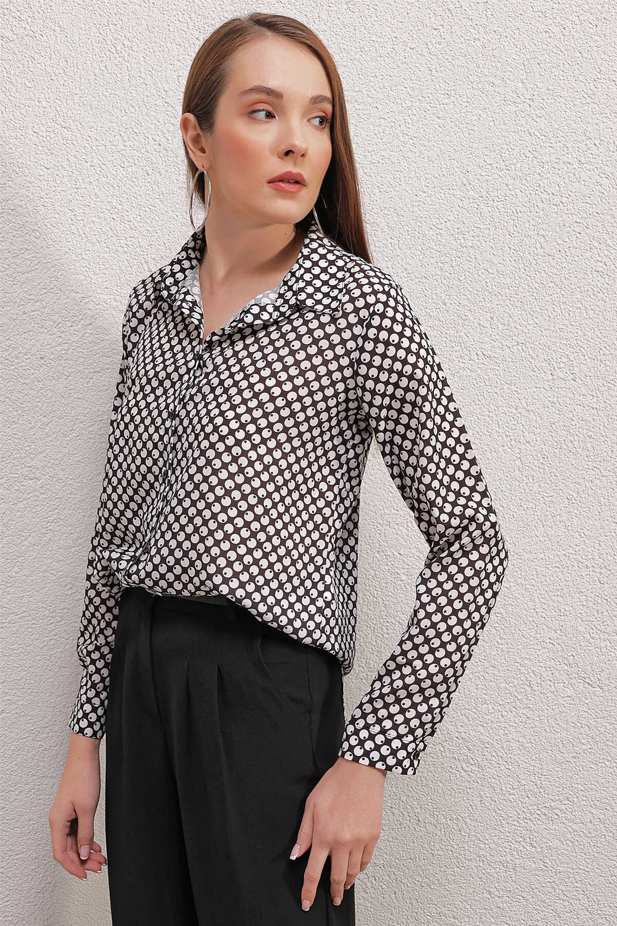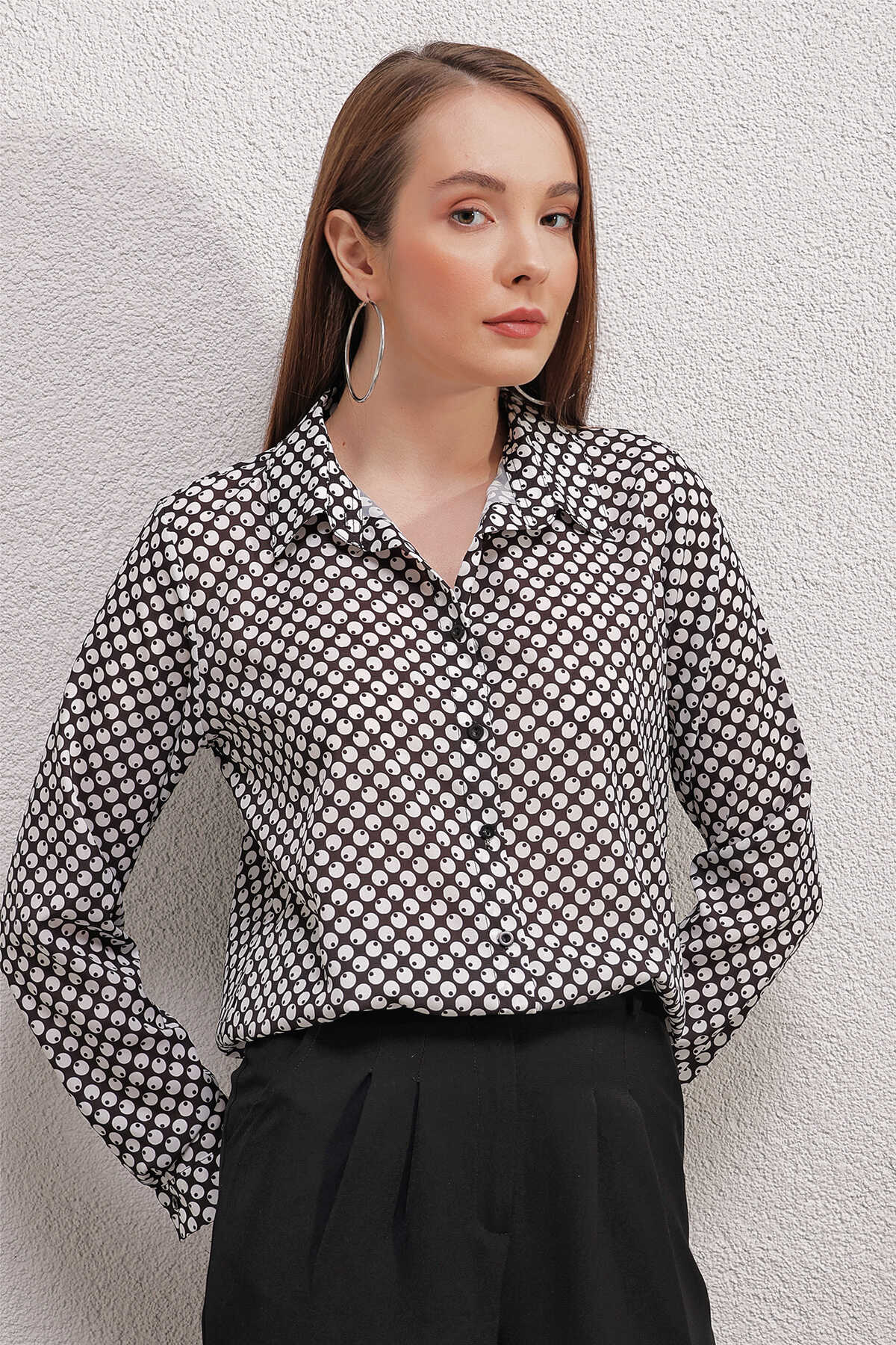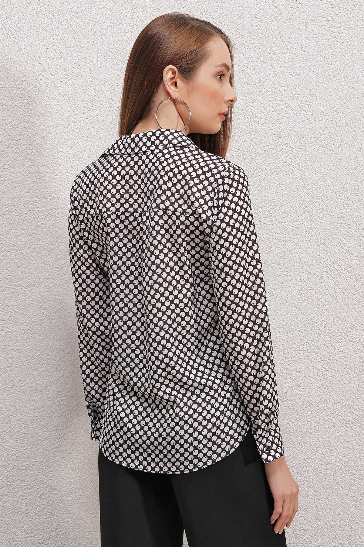 3964 Hafif Dökümlü Saten Gömlek - Y.Beyaz