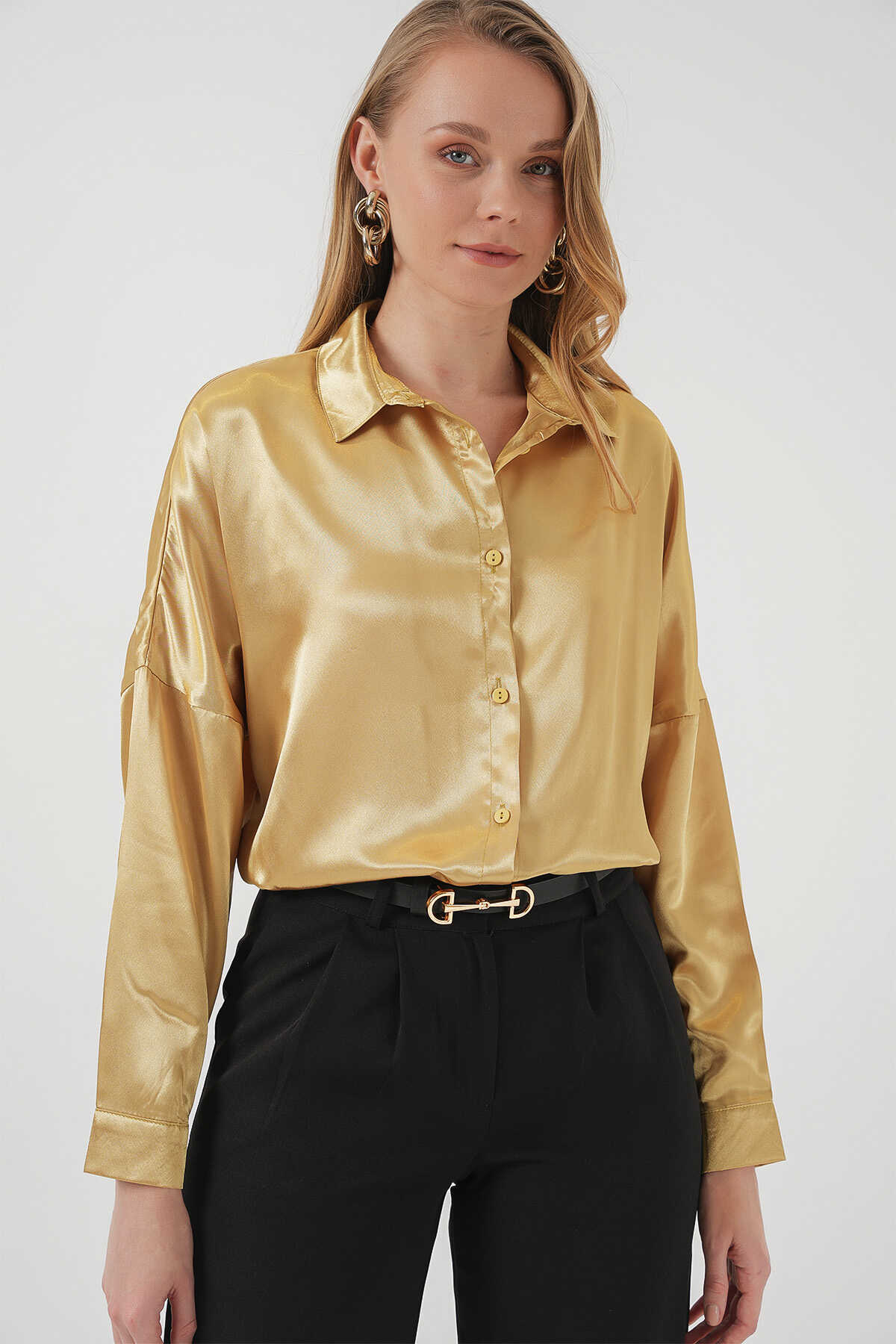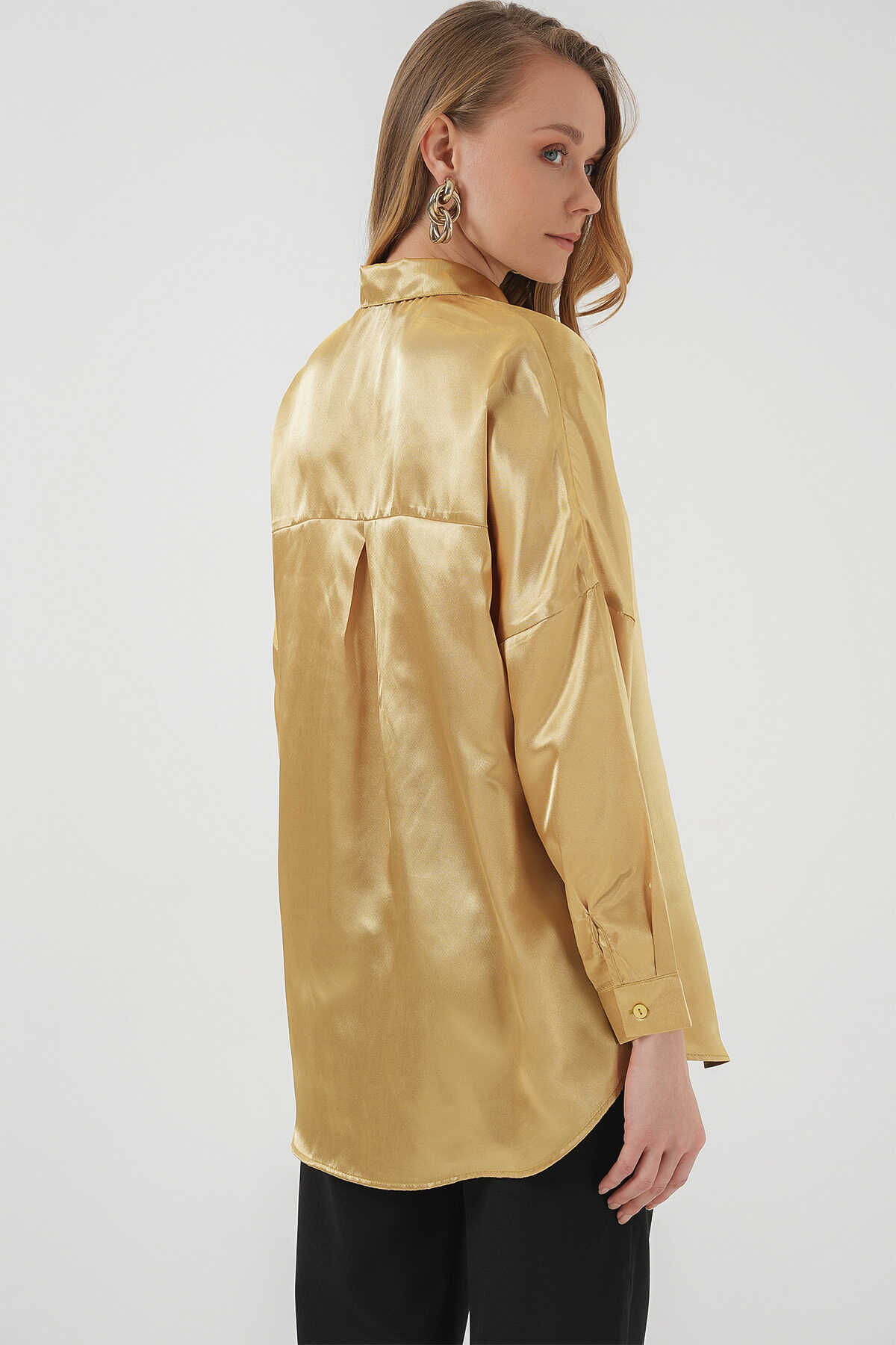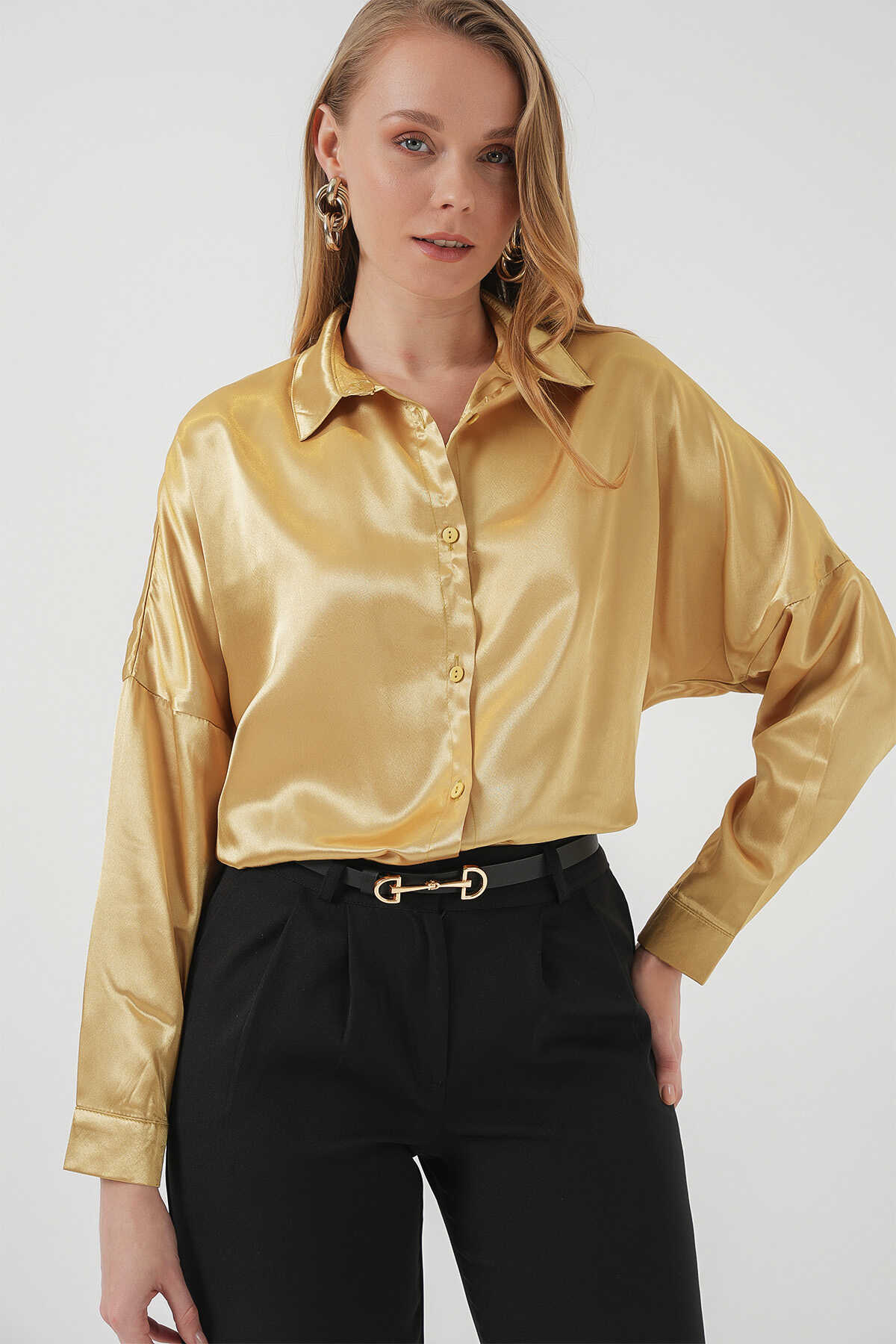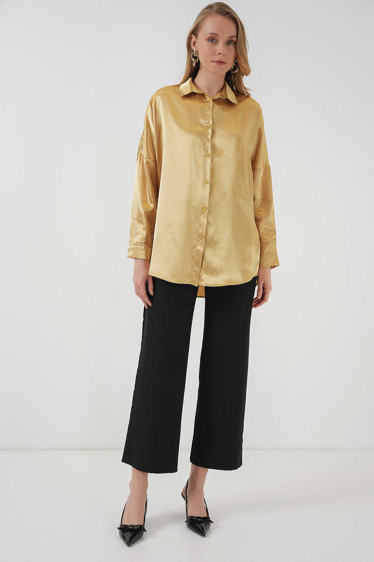 3985 Oversize Saten Gömlek - Altın Sarısı