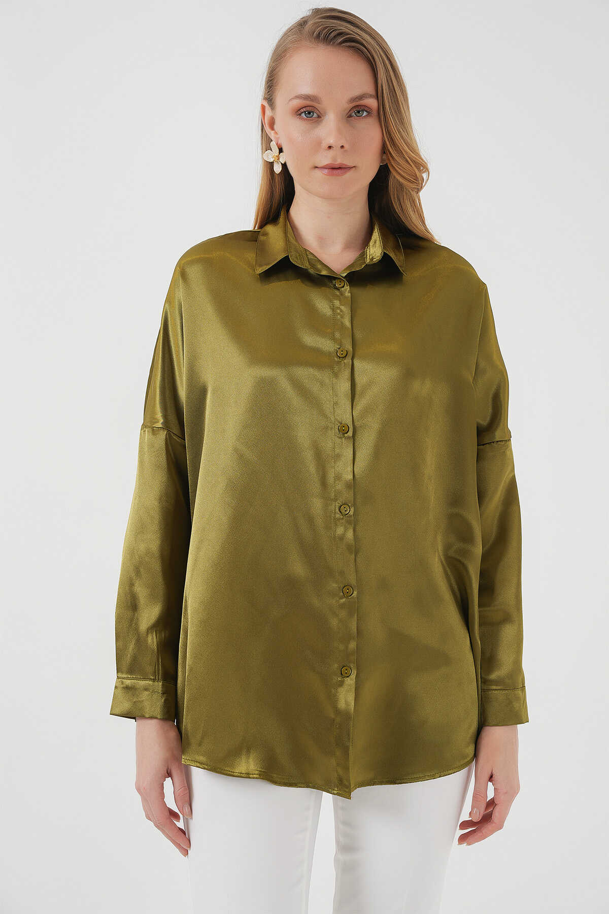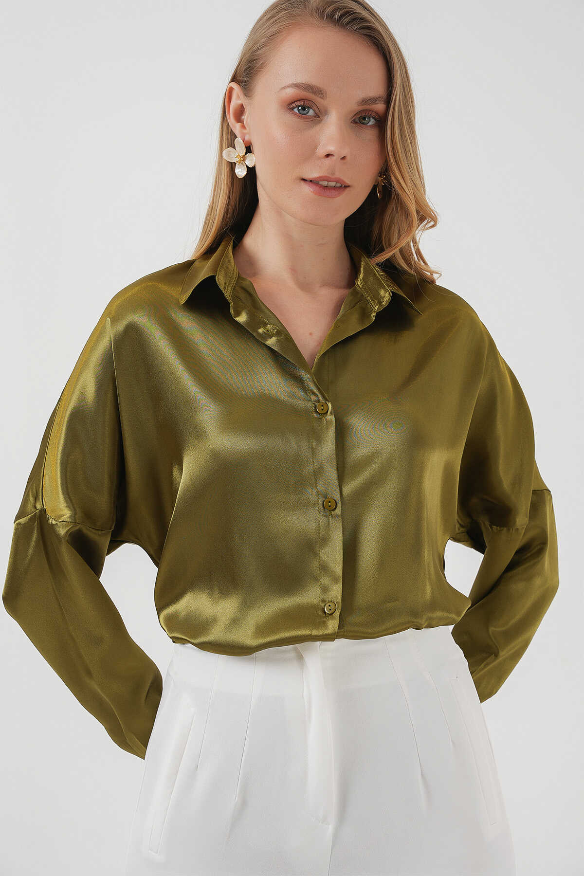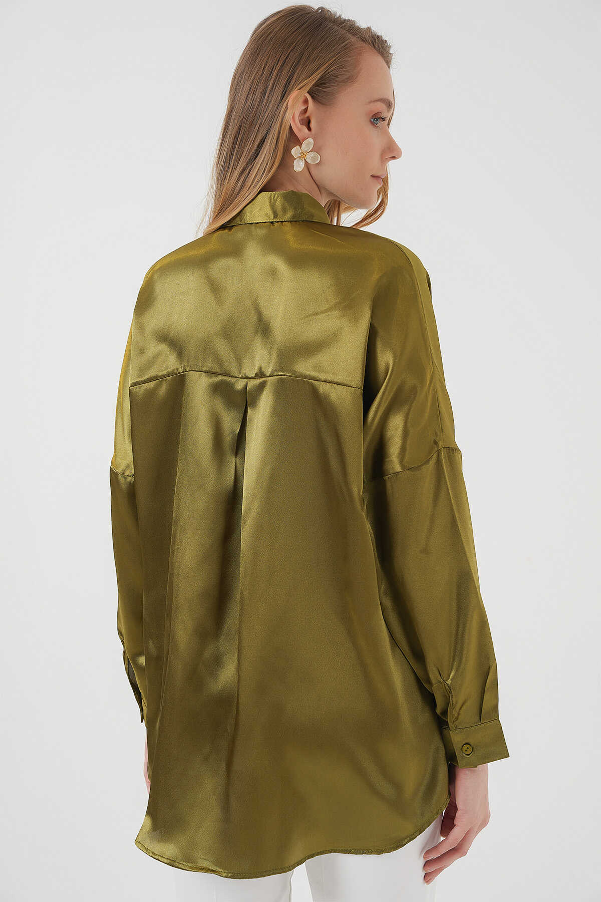 3985 Oversize Saten Gömlek - Y.Haki - Kombin
