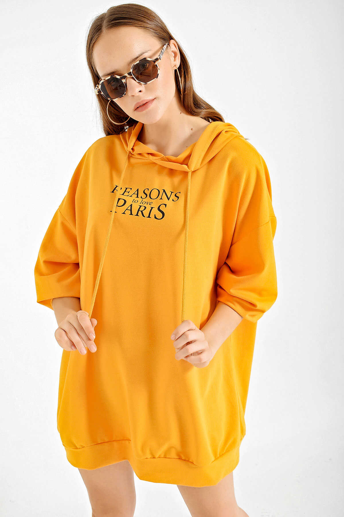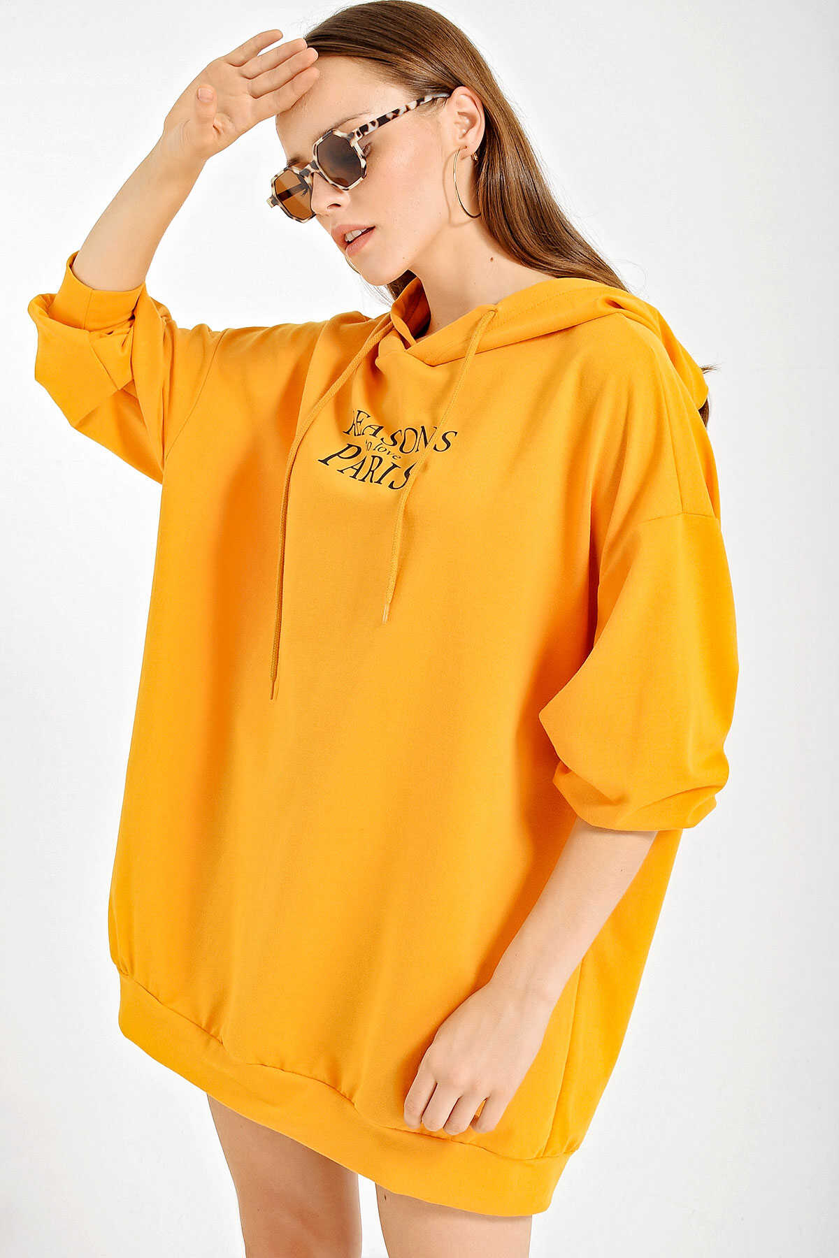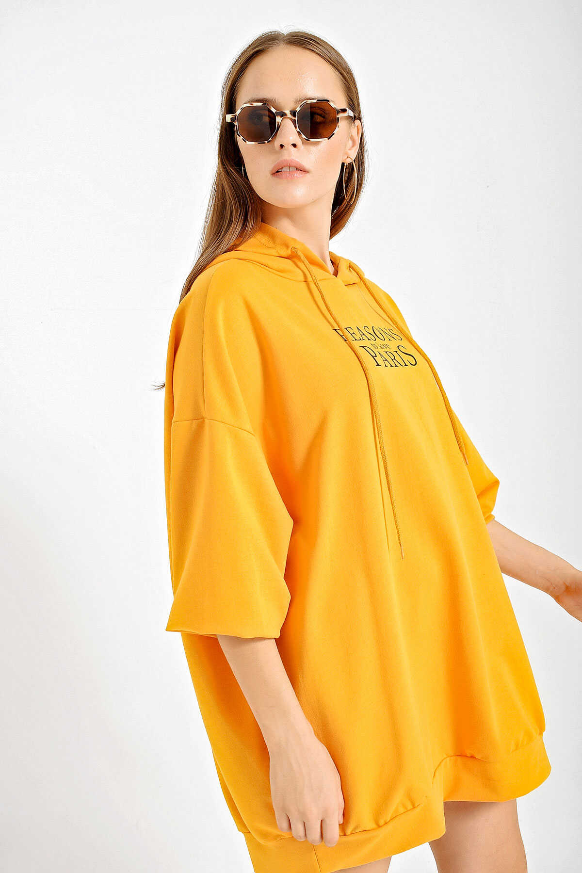 4125 Oversize Sweat Elbise - Safran - Kombin