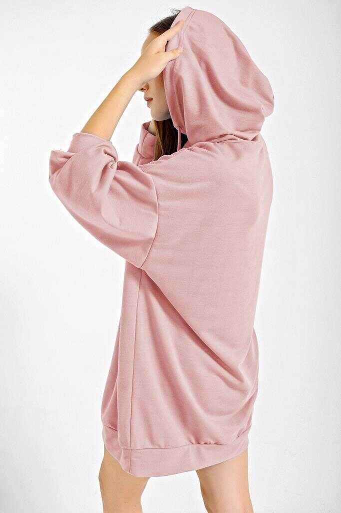 4125 Oversize Sweat Elbise - Pudra