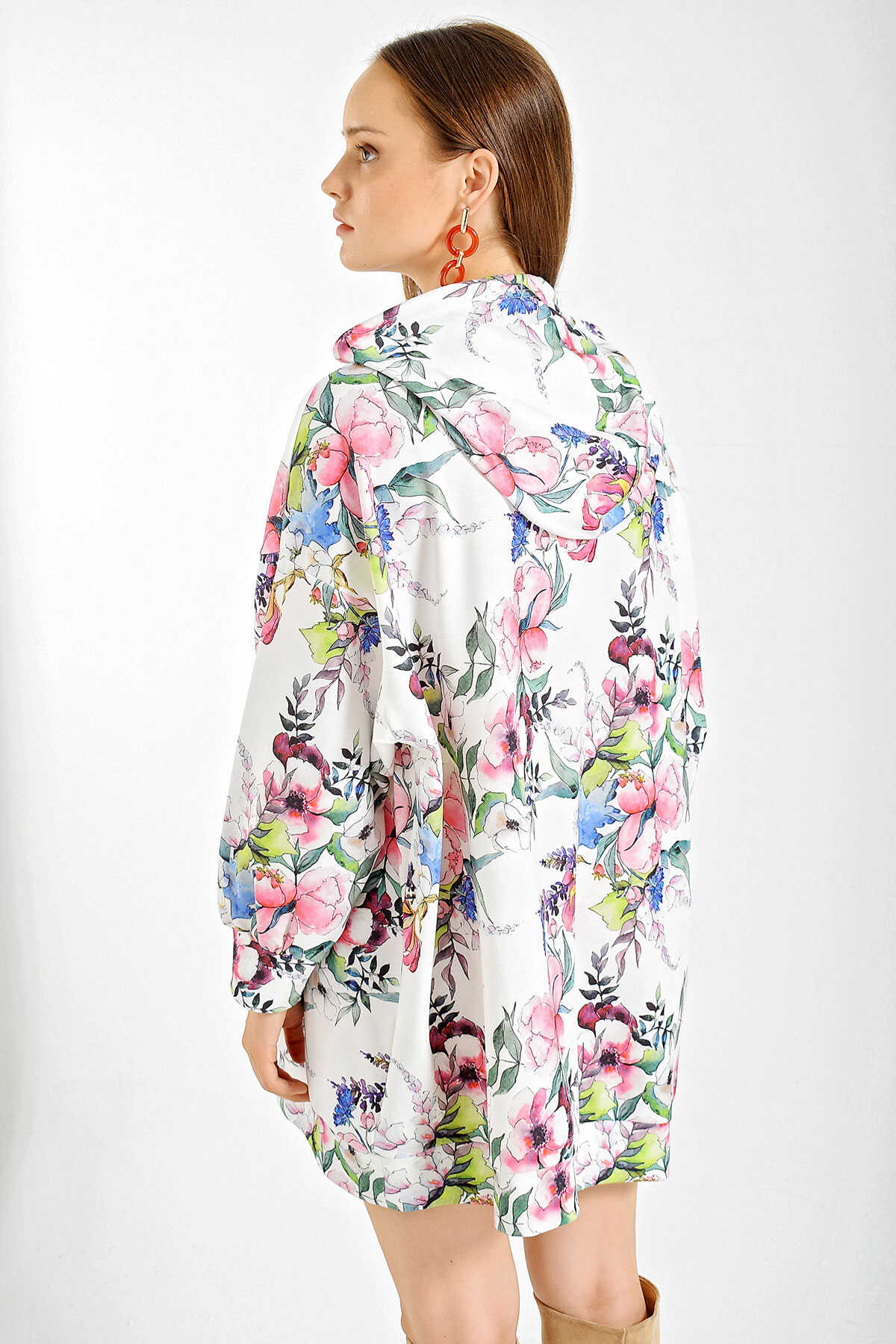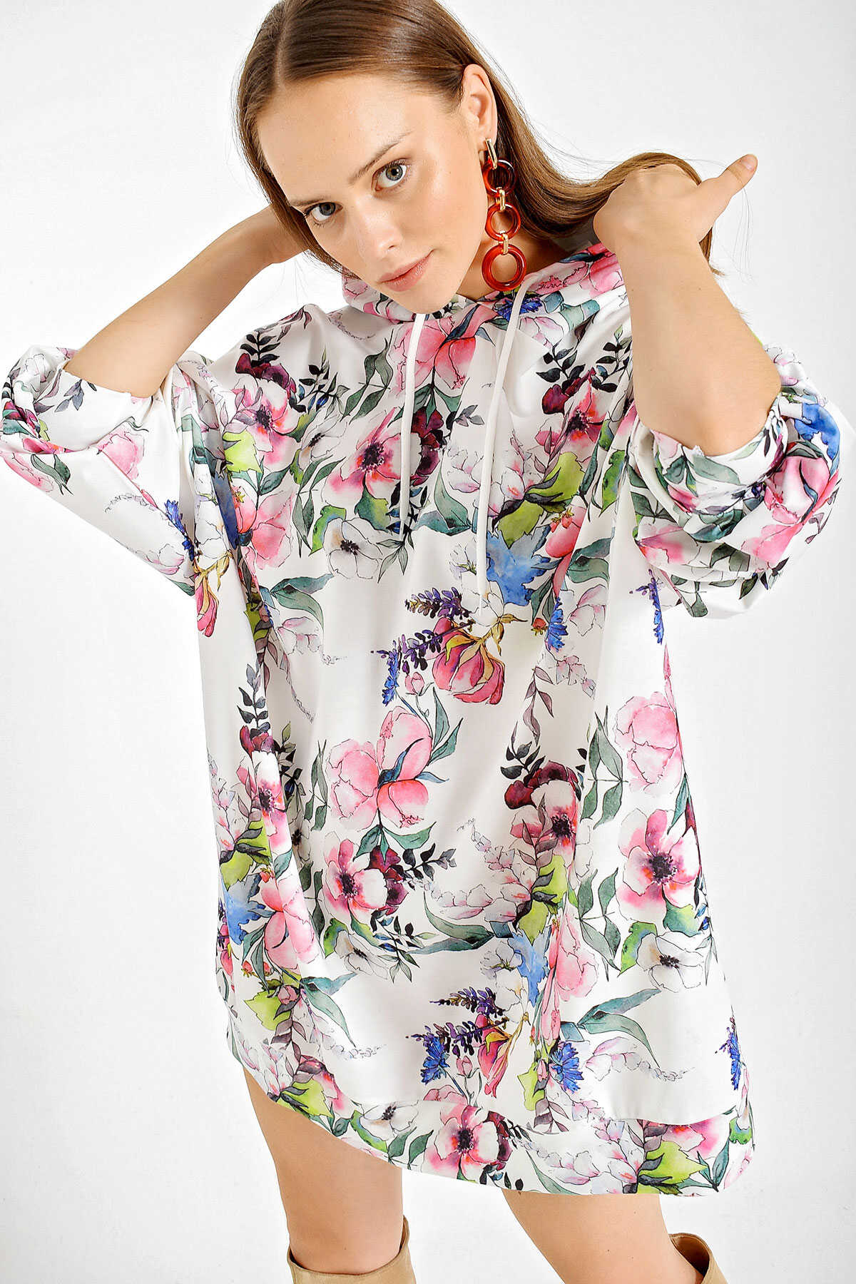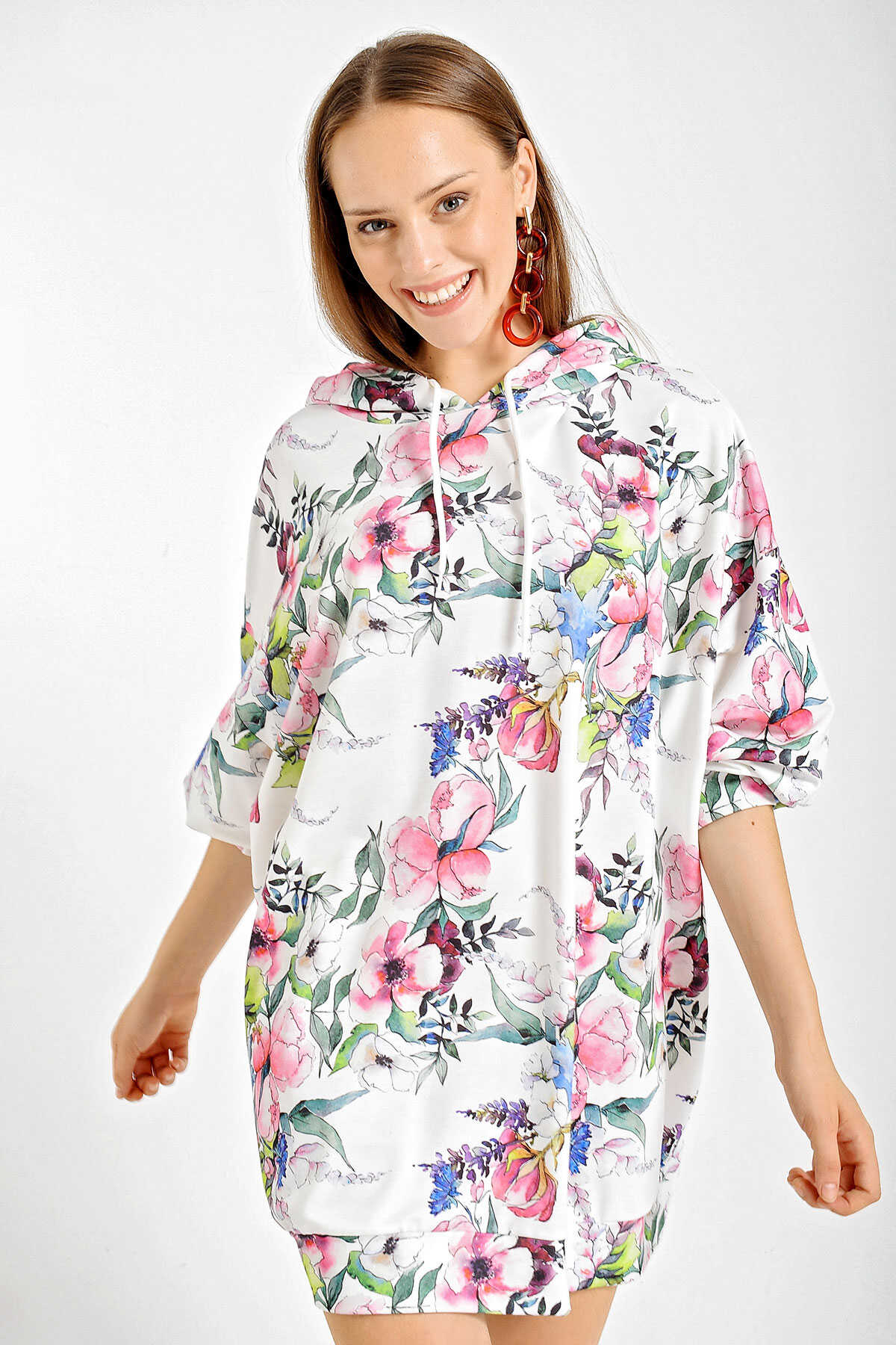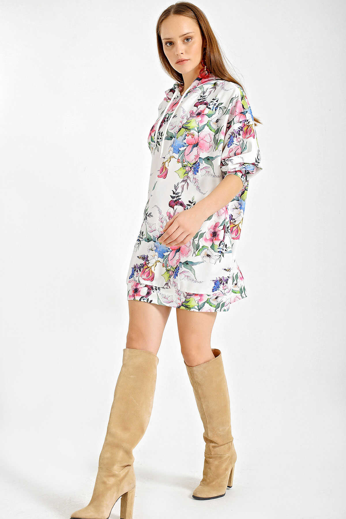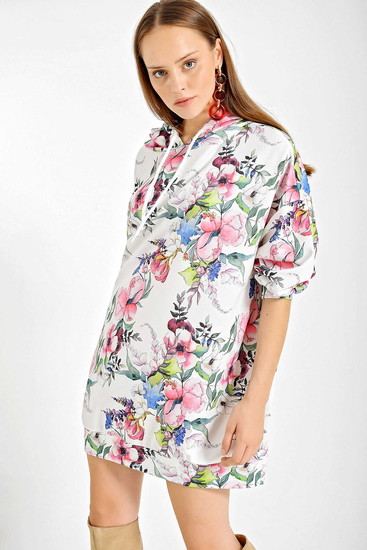 4125 Oversize Sweat Elbise - Beyaz - Kombin