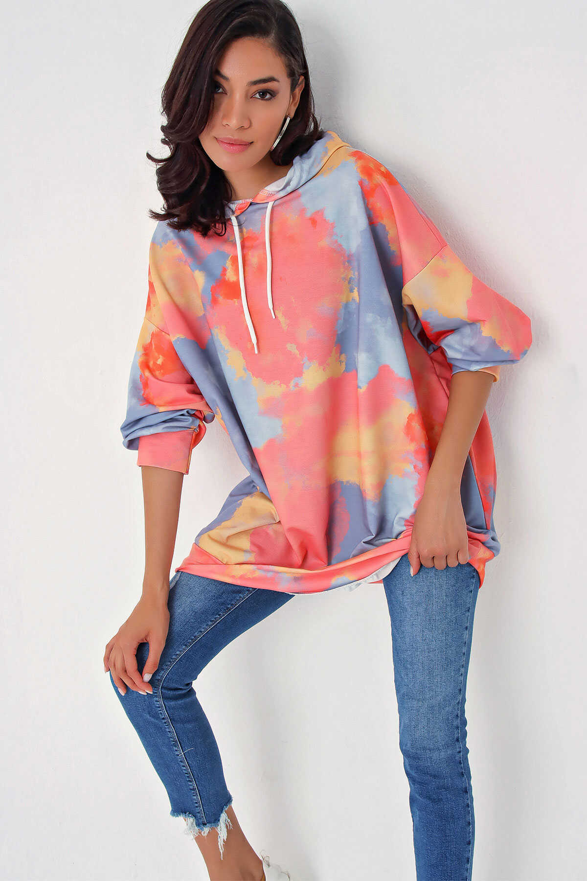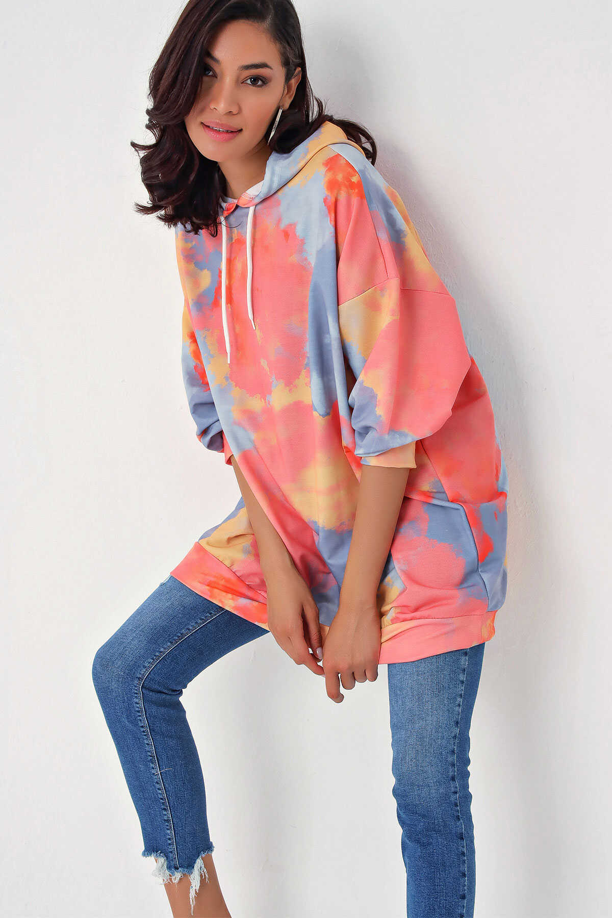 4125 Oversize Sweat Elbise - Gri - Kombin