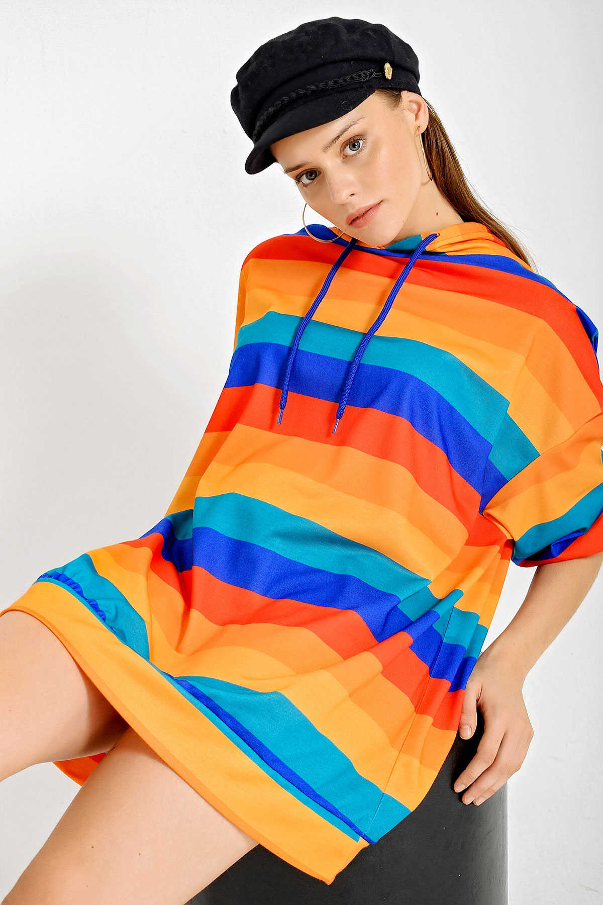 4125 Oversize Sweat Elbise - Hardal - Kombin