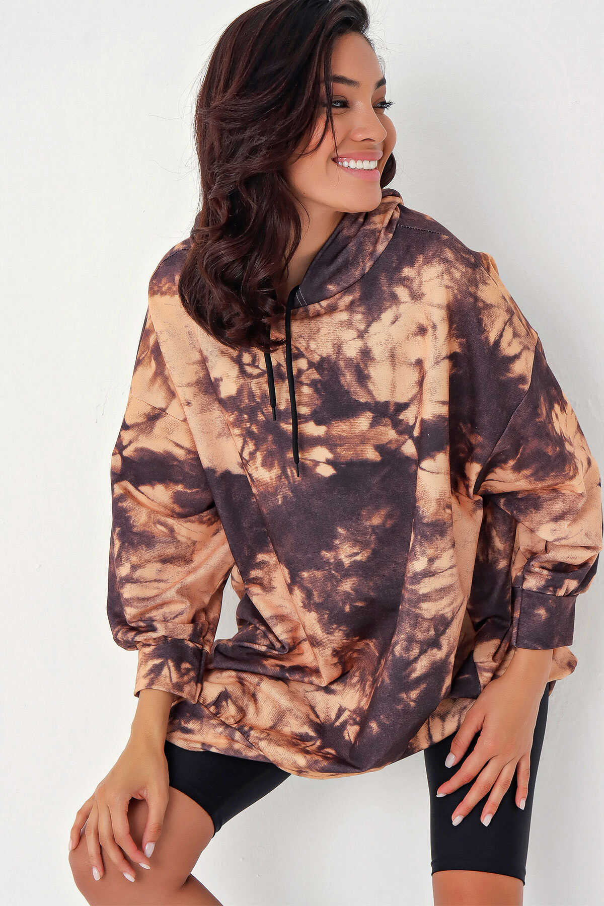 4125 Oversize Sweat Elbise - Sütlü Kahve