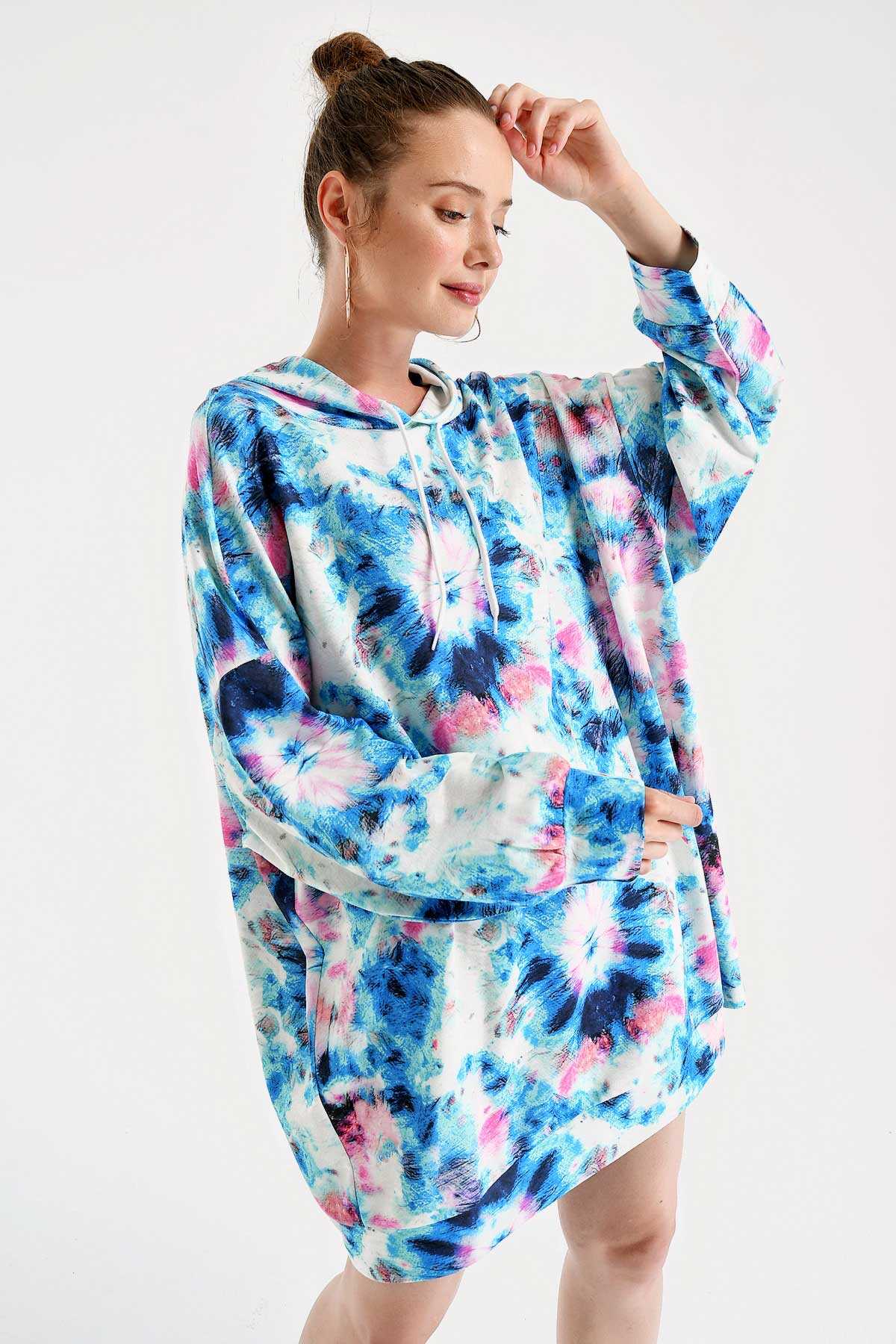 Bigdart 4125 Oversize Sweat Elbise - Mavi