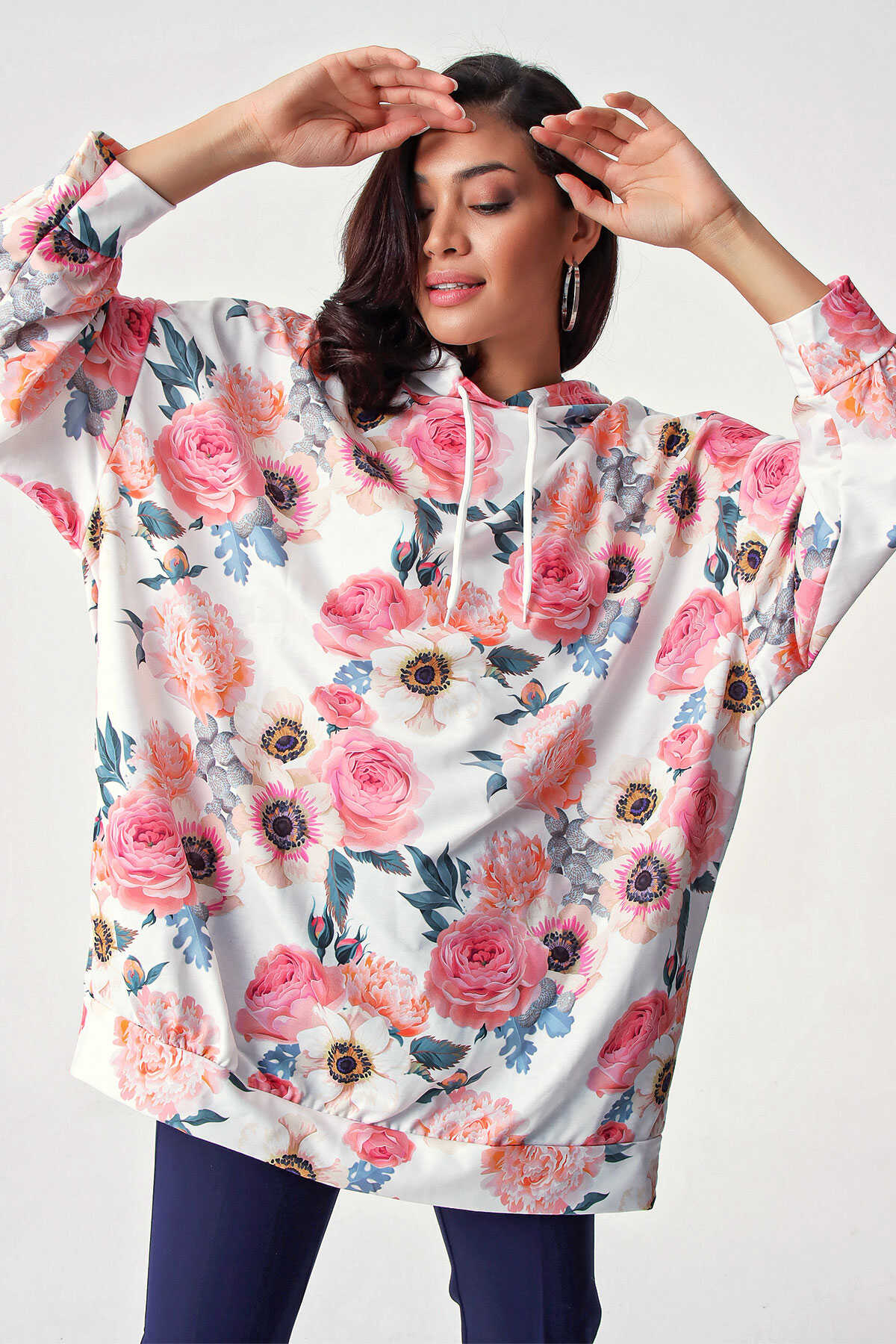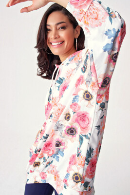 4125 Oversize Sweat Elbise - Pudra - Kombin