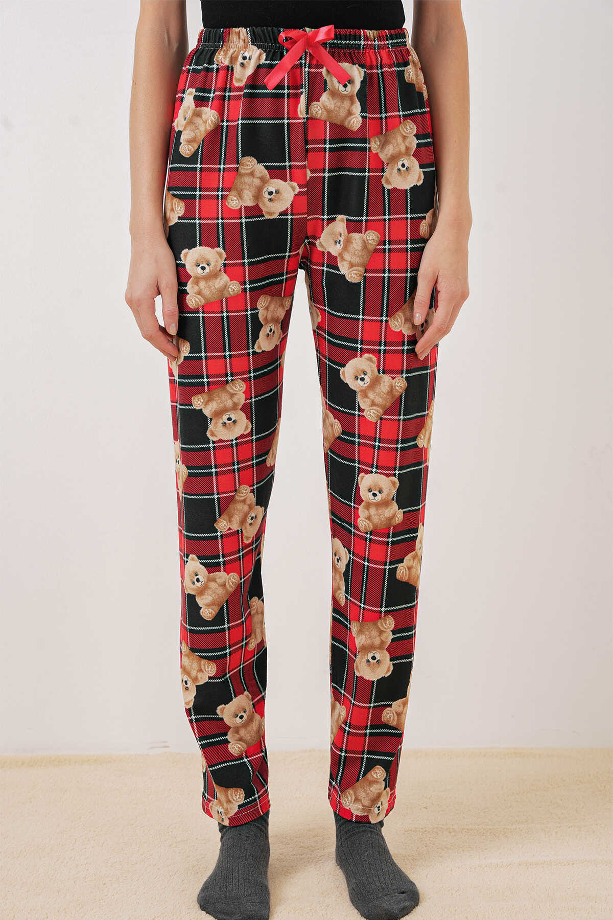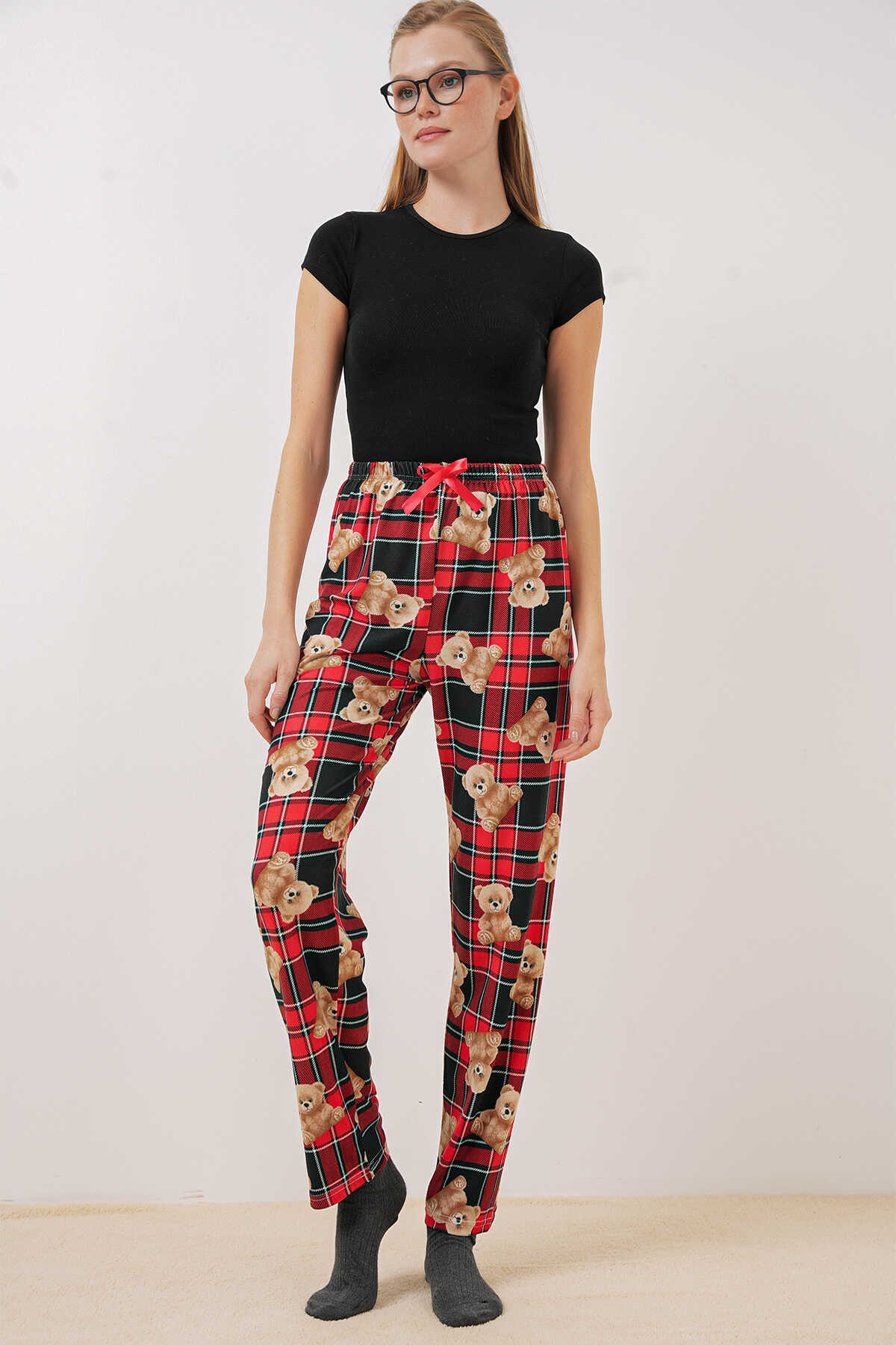 4323 Desenli Pijama Altı - B.Kırmızı - Kombin