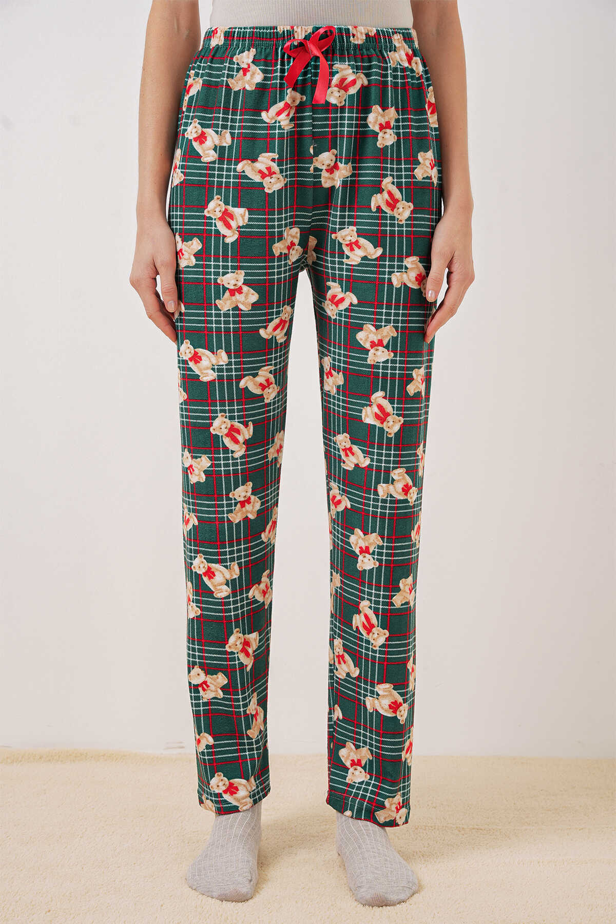 4323 Desenli Pijama Altı - Zümrüt Yeşili - Kombin
