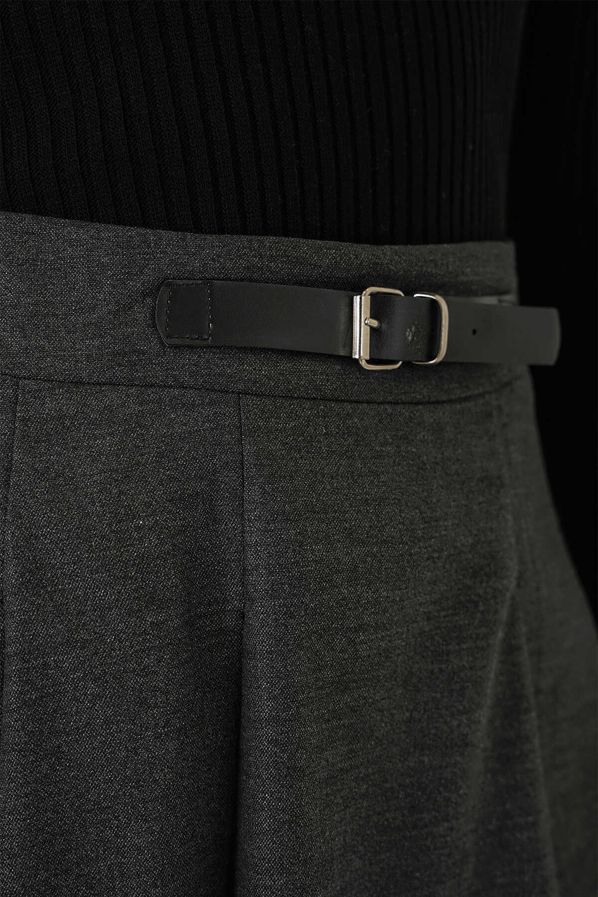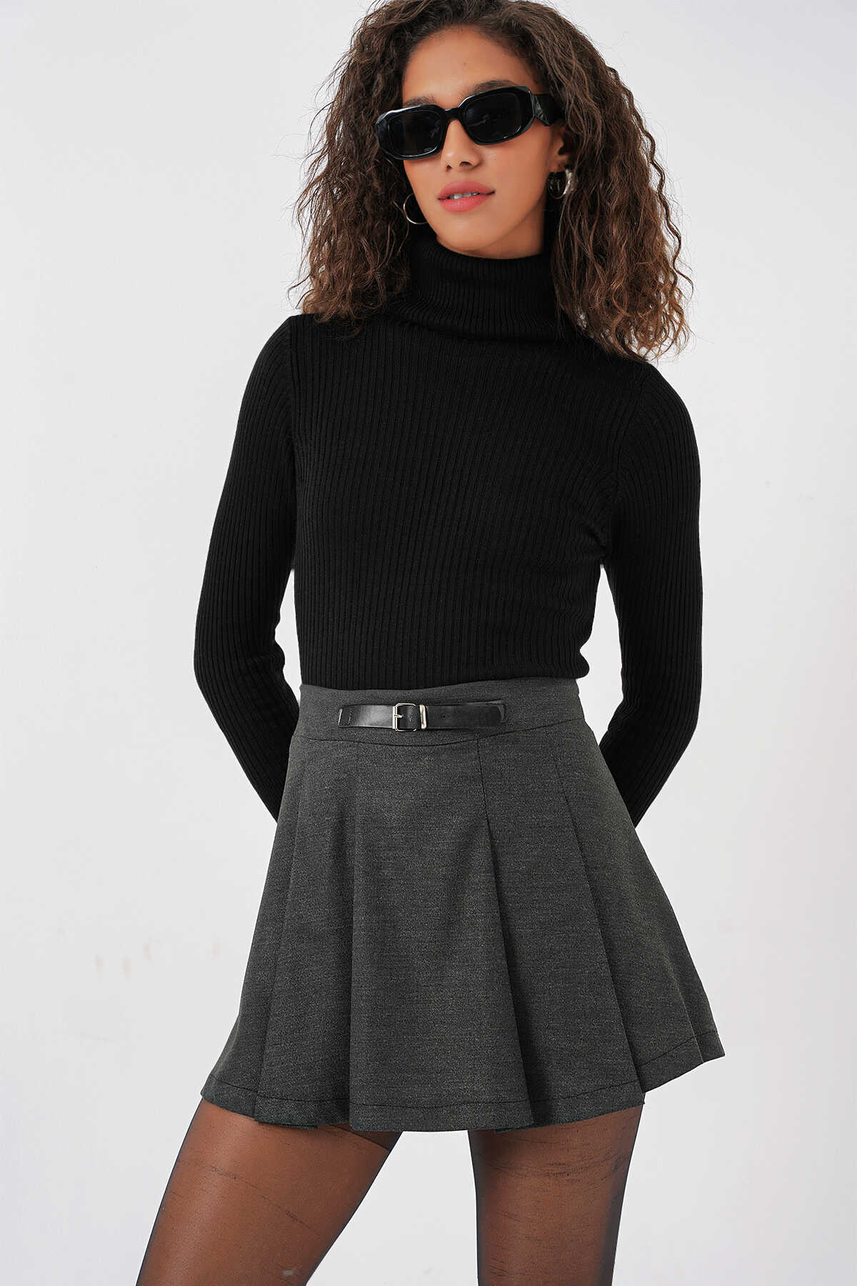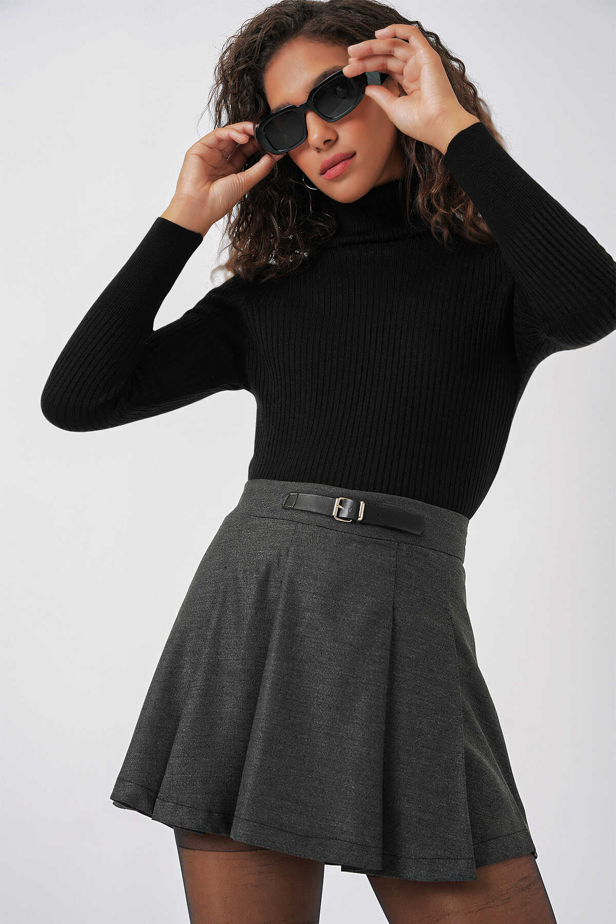 4335 Kadın Kemerli Mini Şort Etek - Antrasit - Kombin