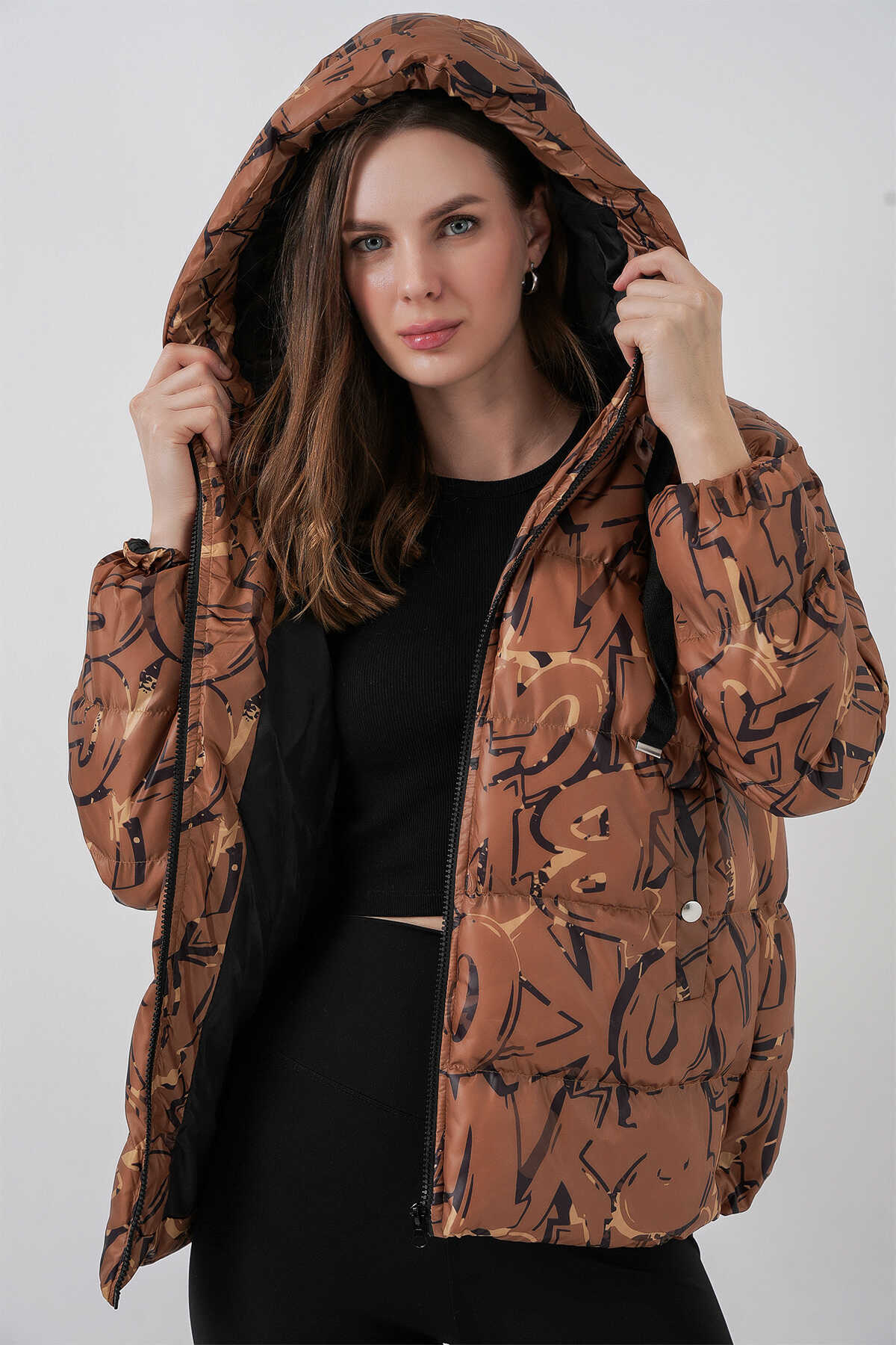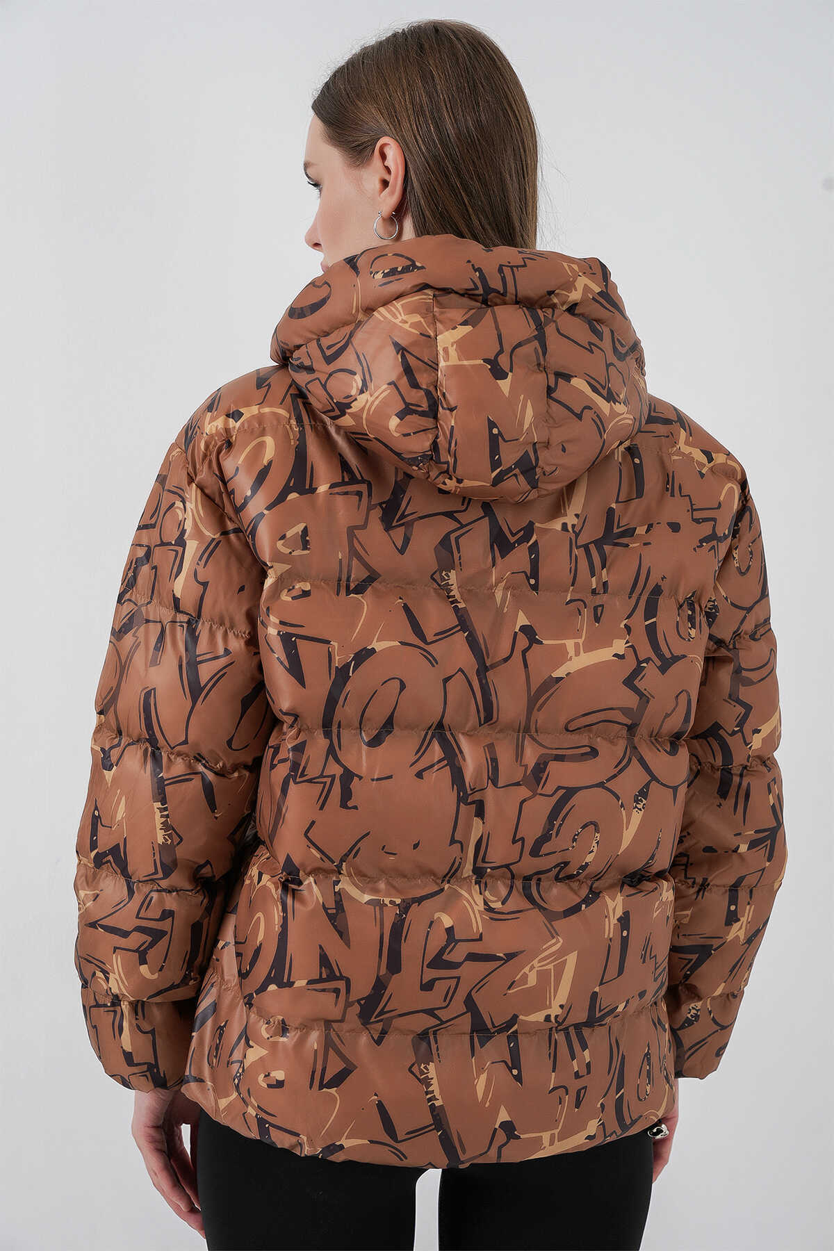 5125 Desenli Şişme Mont - Hardal - Kombin