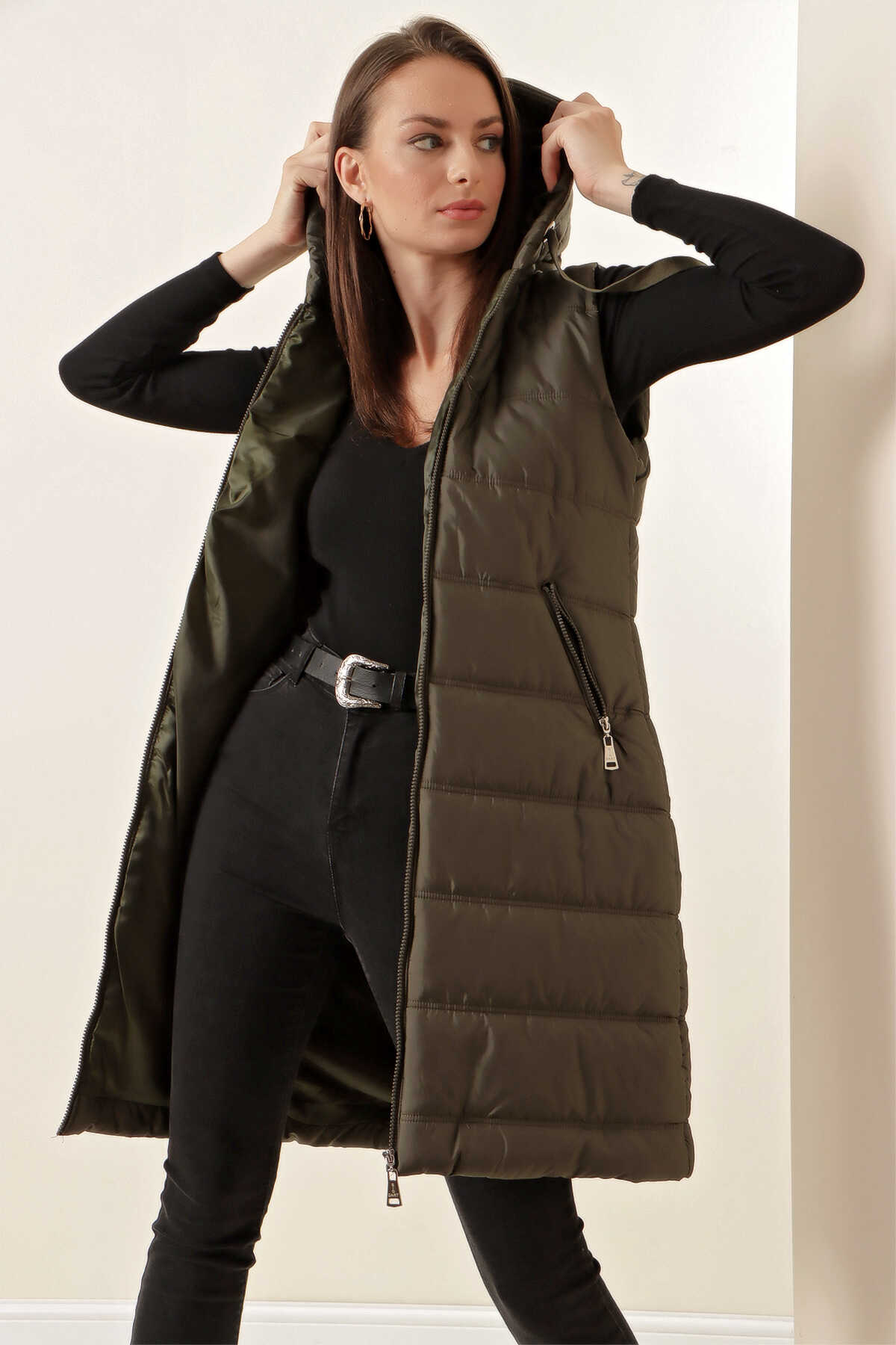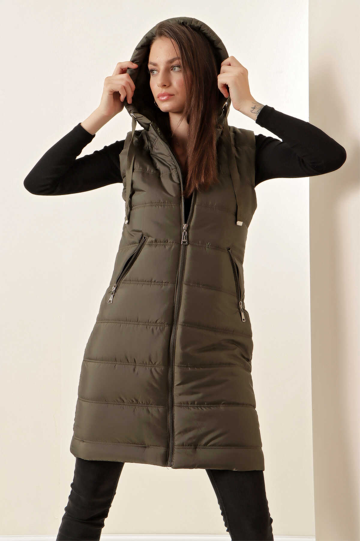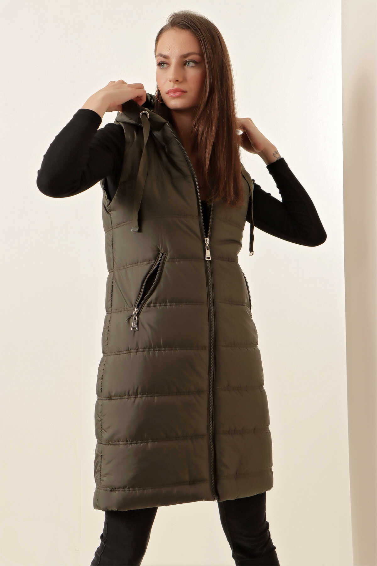 Kapsonlu Uzun Sisme Yelek