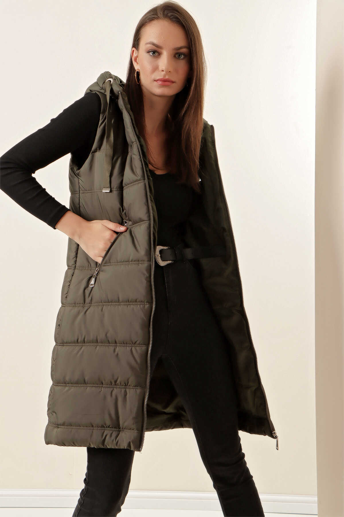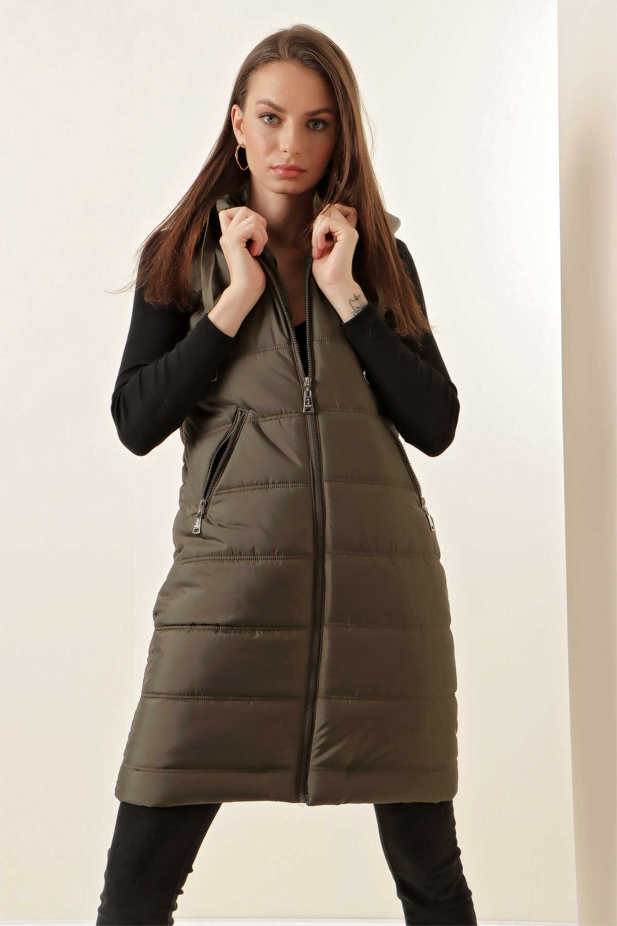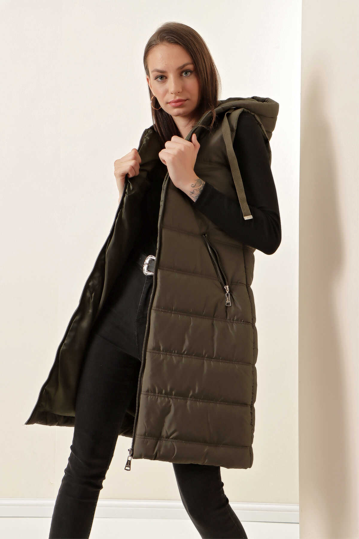 Kapsonlu Uzun Sisme Yelek