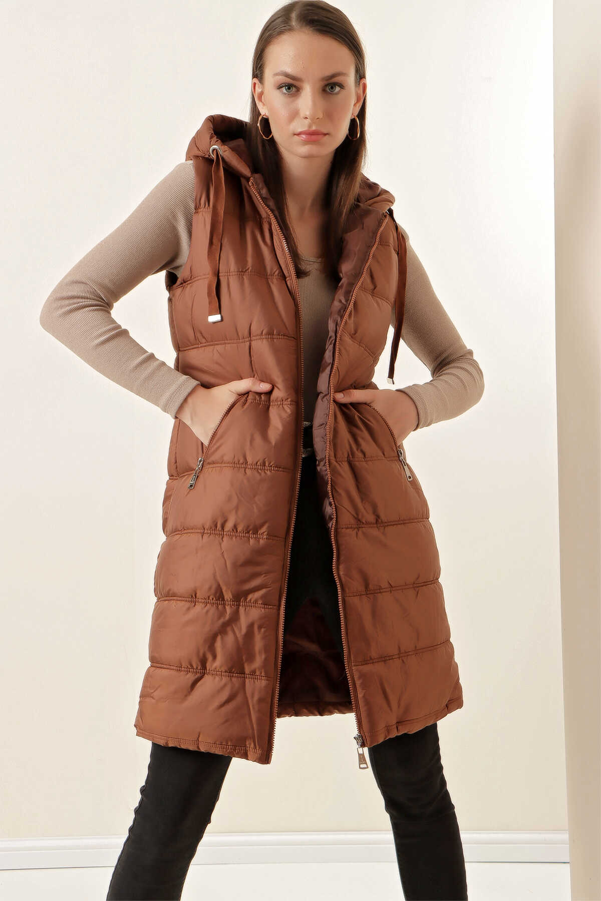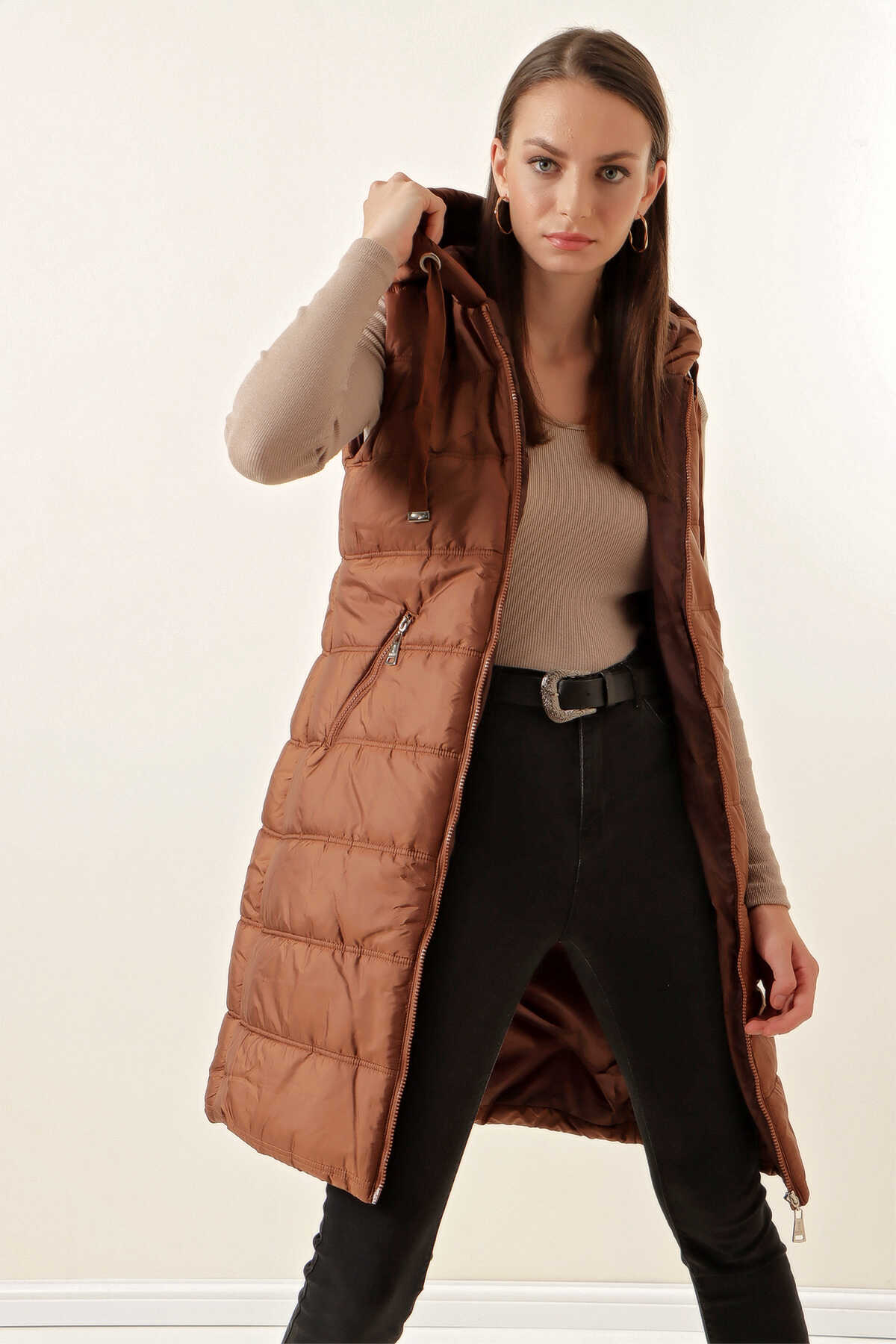 Kapsonlu Uzun Sisme Yelek