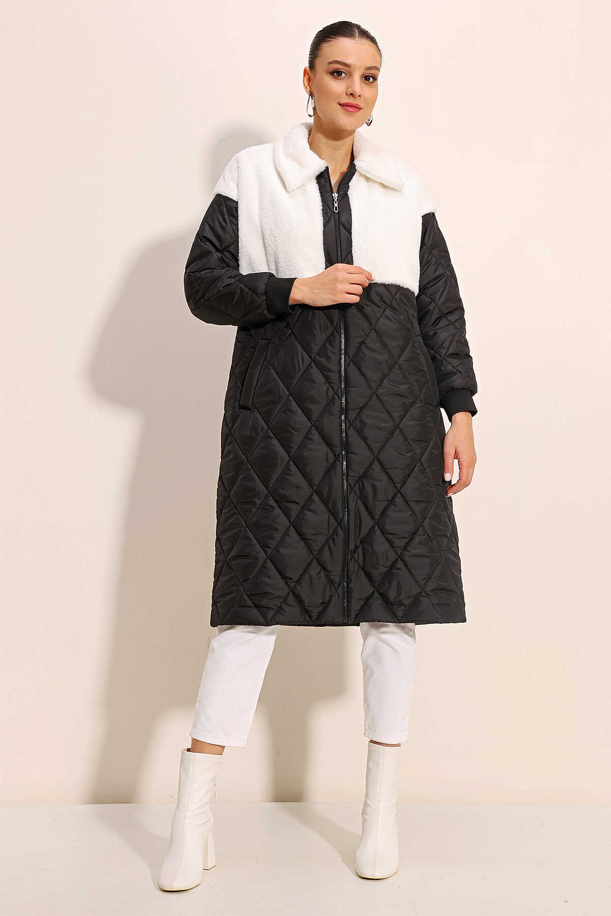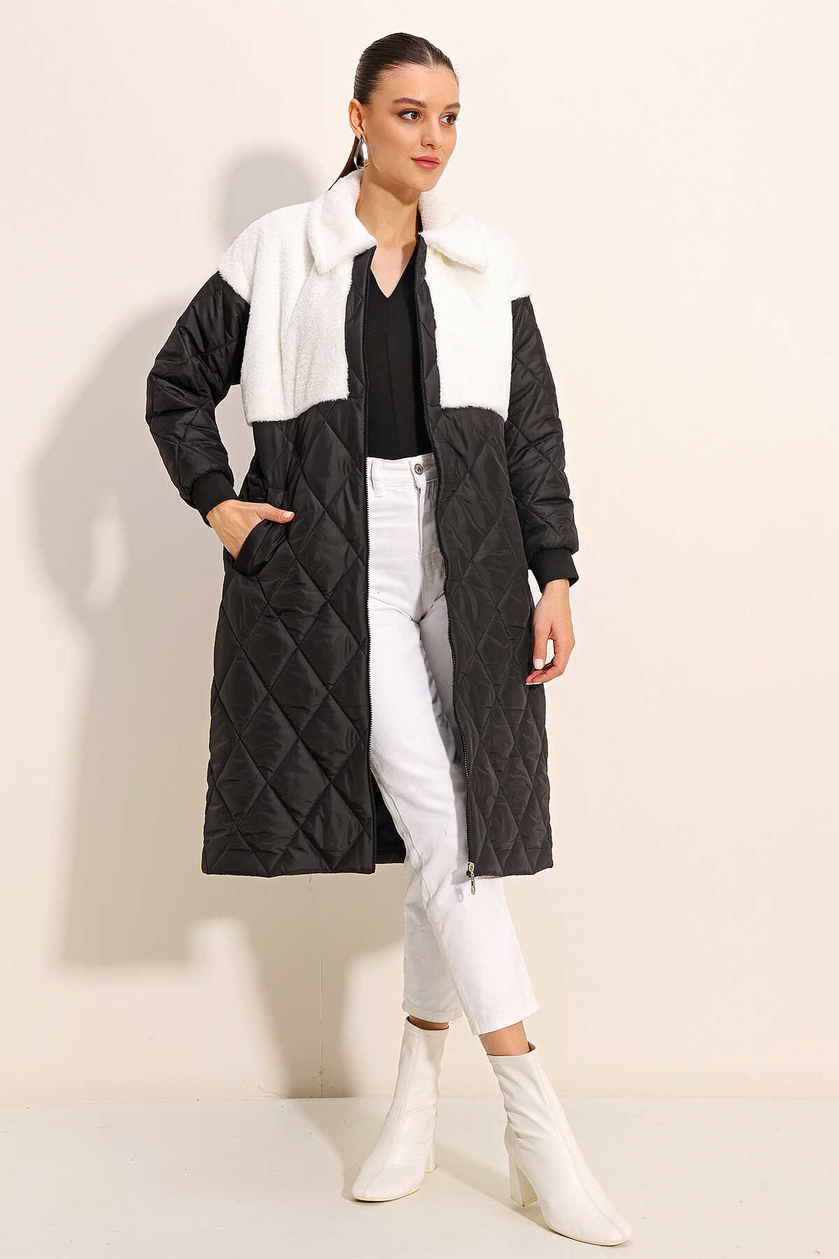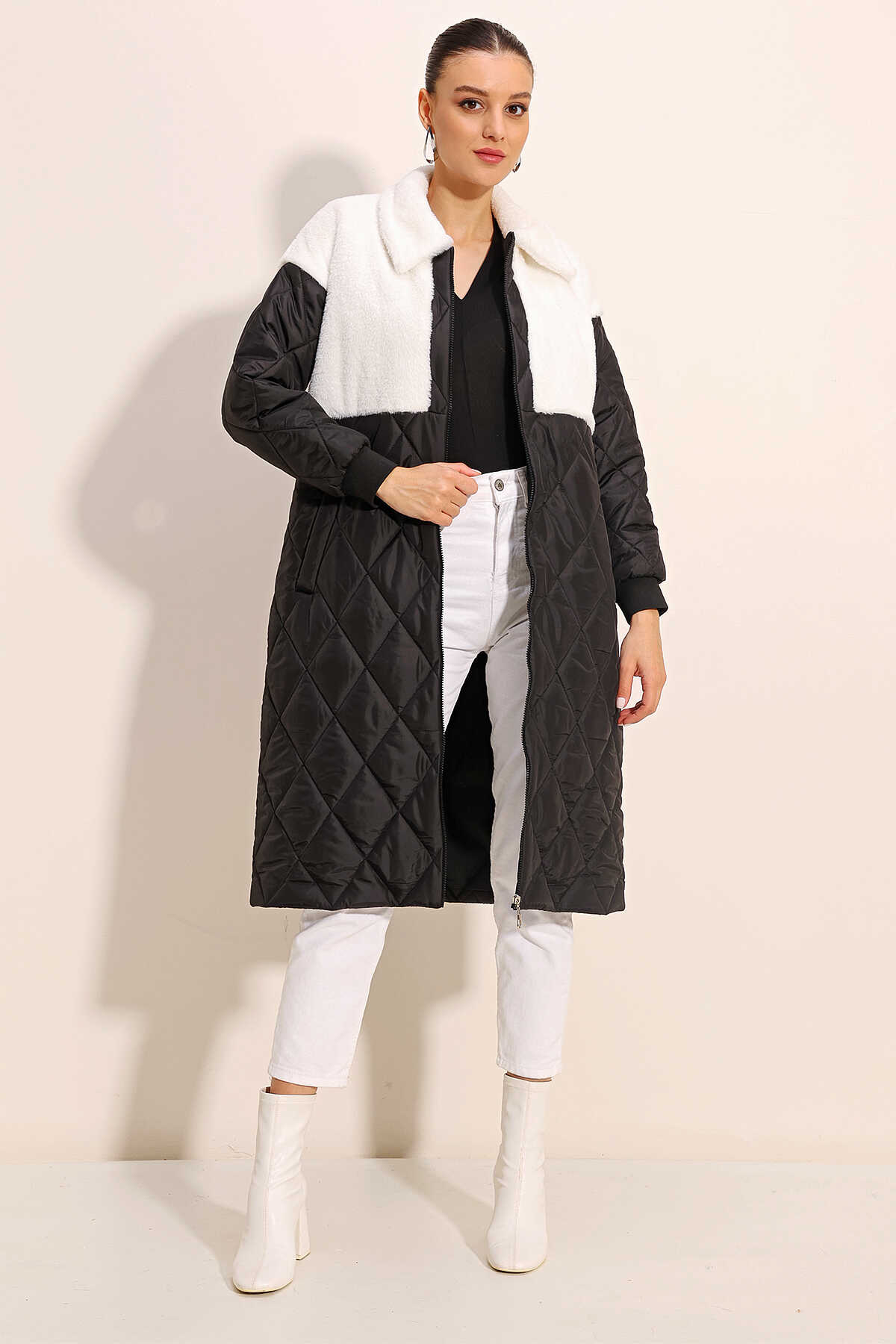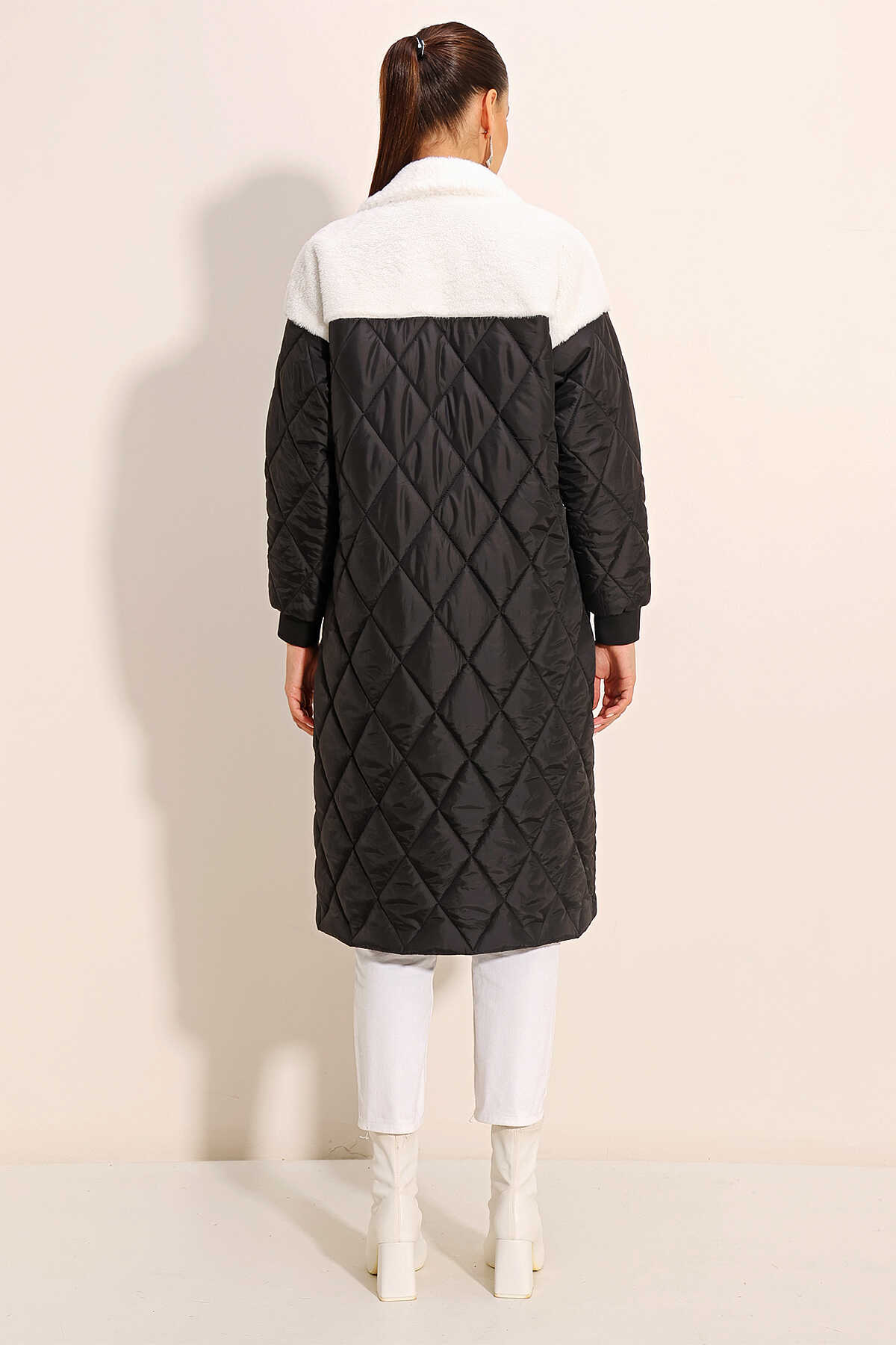 Pelus Detayli Uzun Oversize Sisme Mont